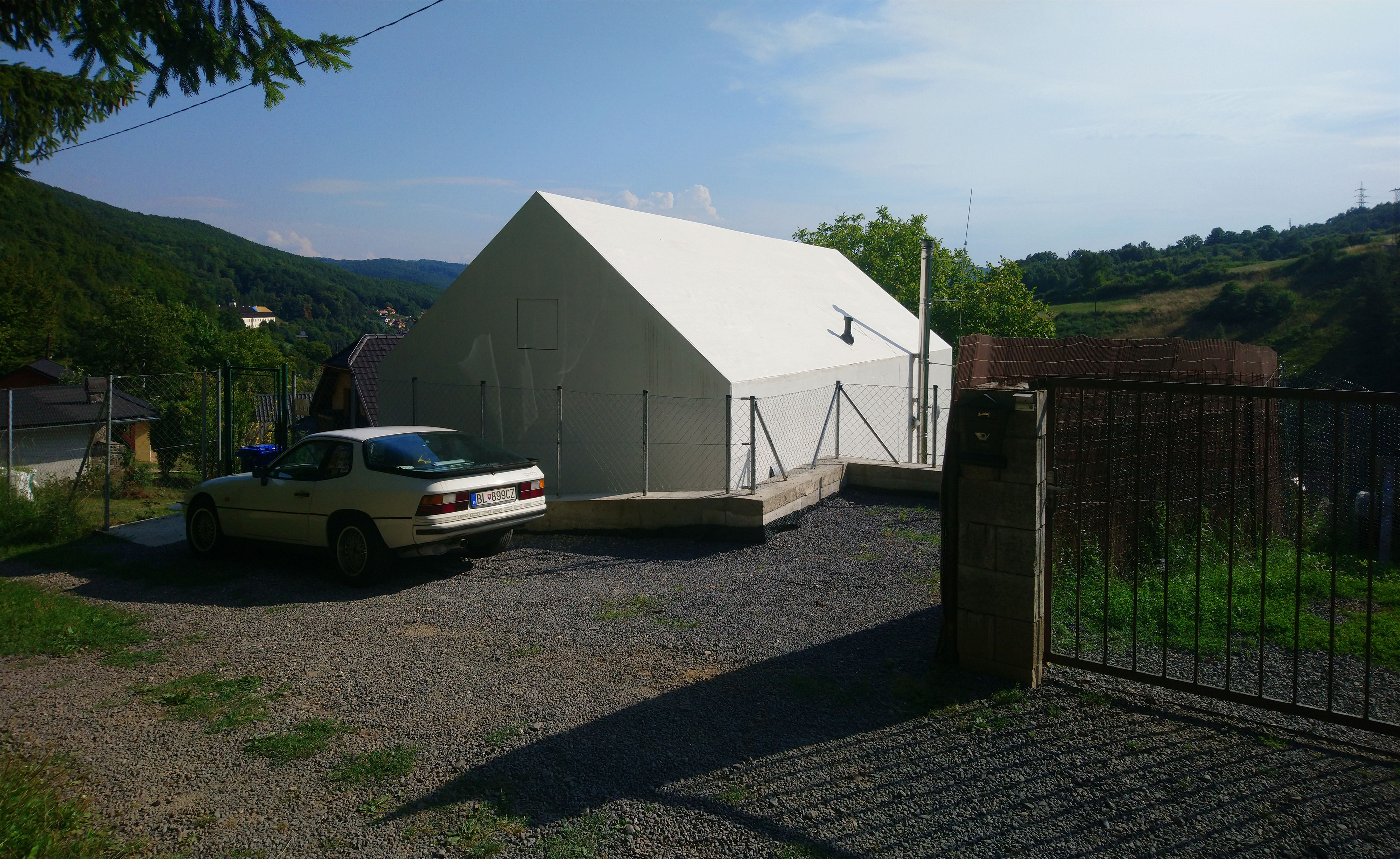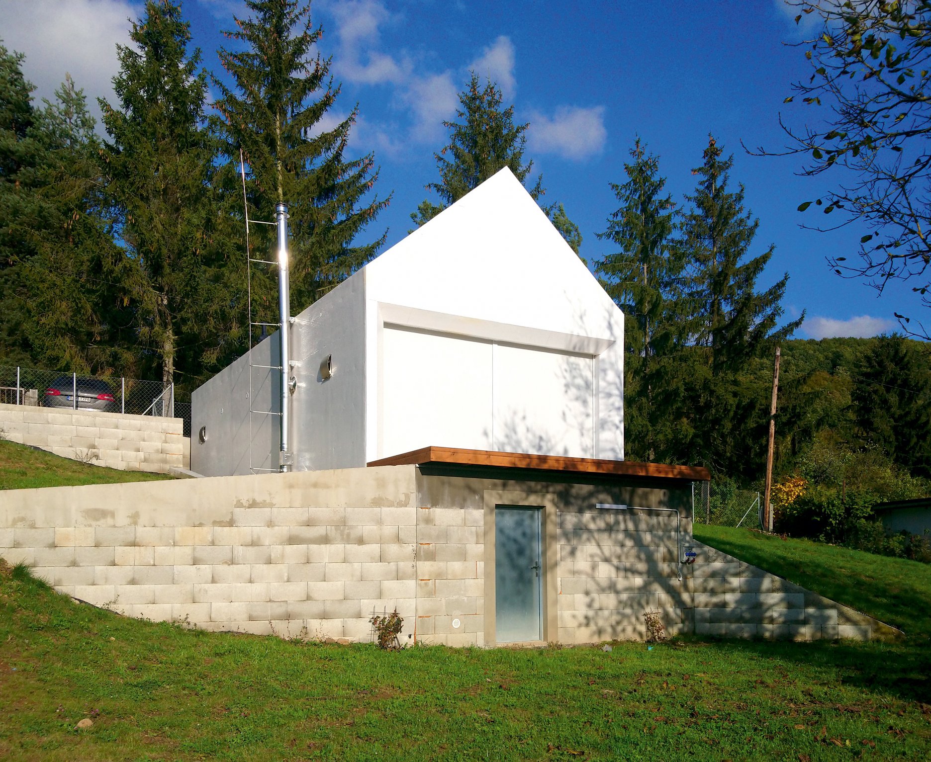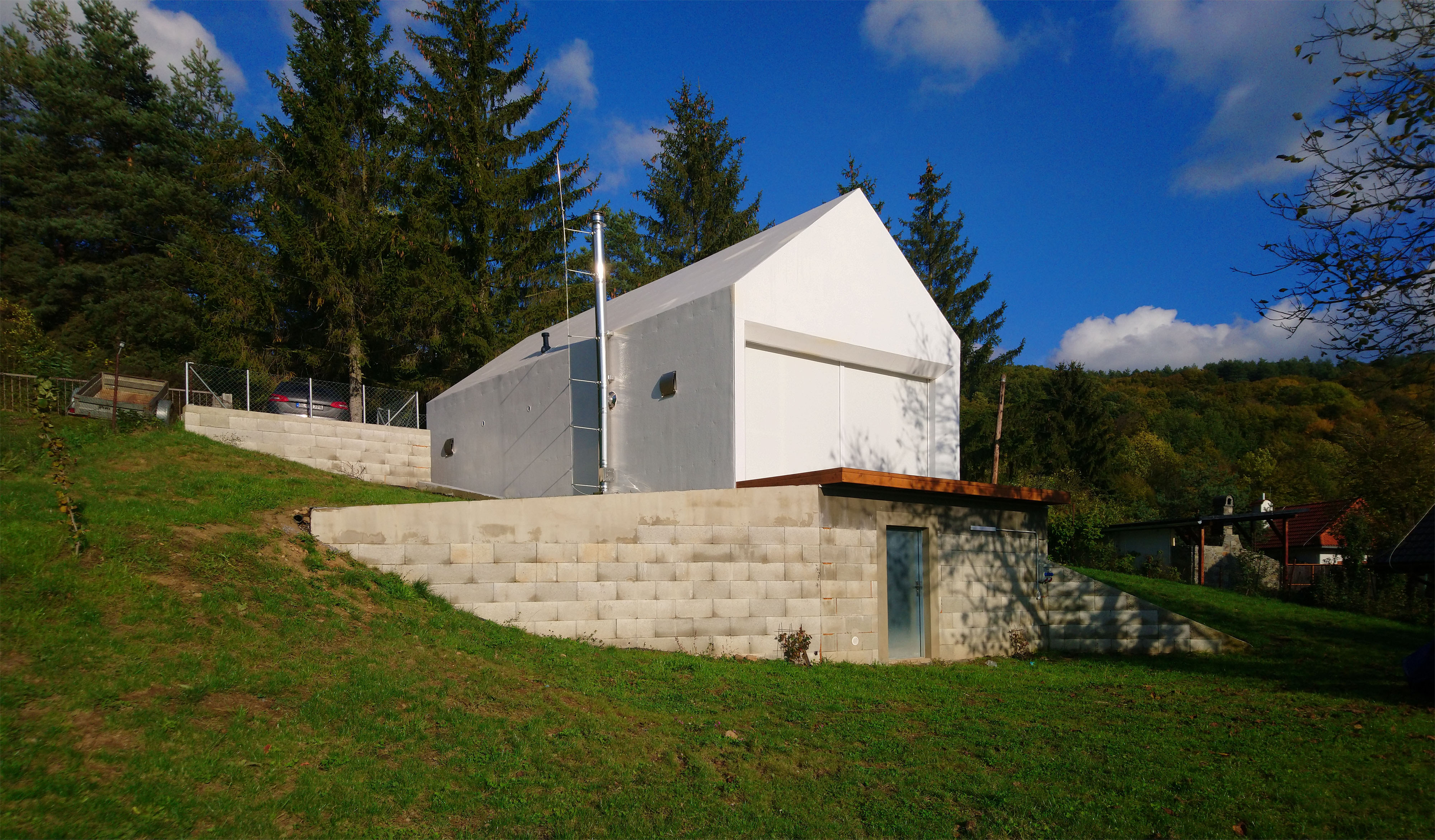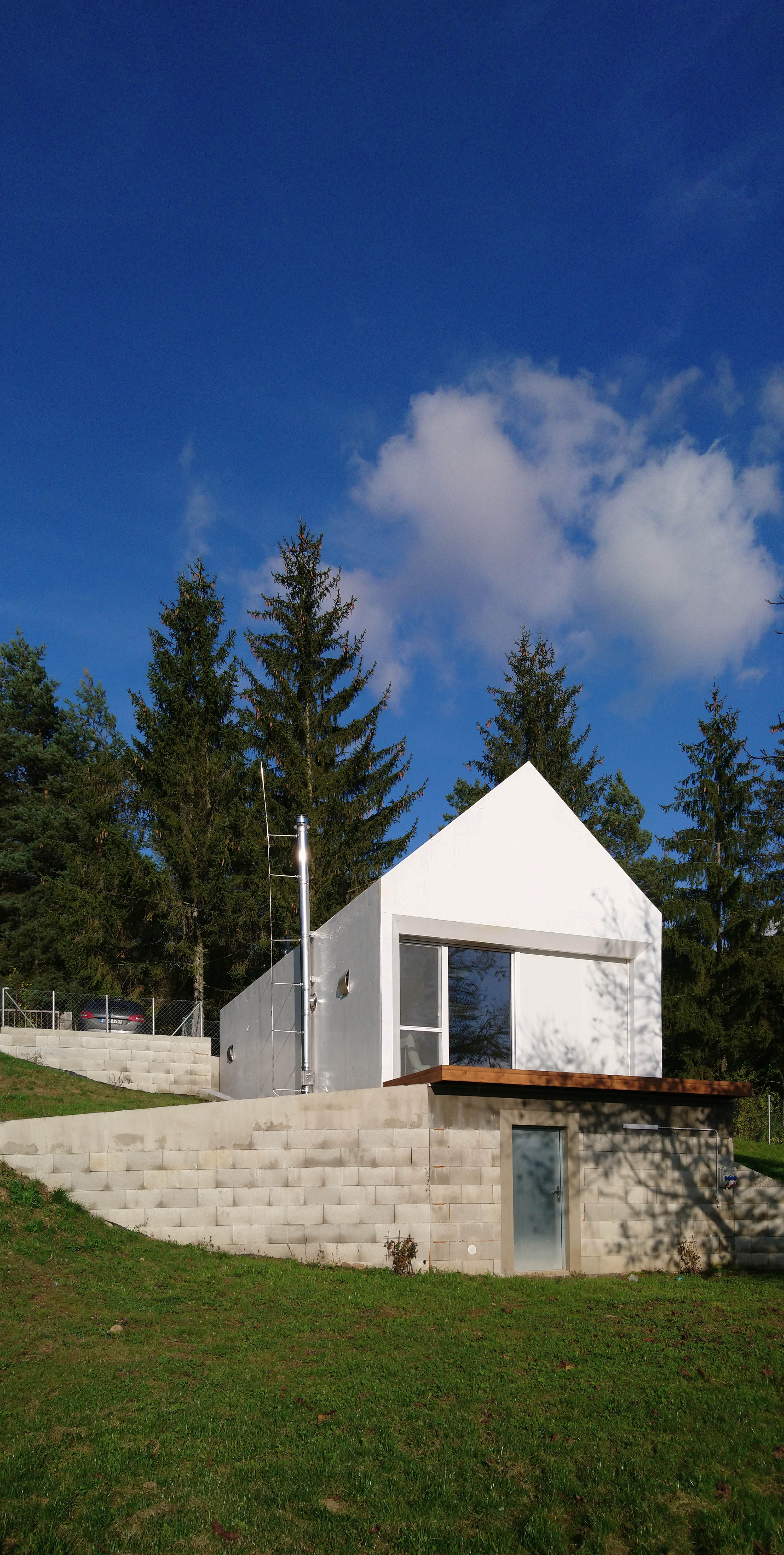 Chatka leží na južne orientovanom svahovitom pozemku v obci Svätý Anton, neďaleko Banskej Štiavnice. Architekt a investor v jednej osobe - Branislav Kružel sa snažil stavbu “abstrahovať do elementárnych tvarov, pričom objekt tvorí jediný celok, zakončený sedlovou strechou”. Architektonický zámer podčiarkuje finálna pohľadová vrstva zo strany exteriéru. Biely polyuretánový nástrek zjednocuje povrchy vrchnej stavby.
