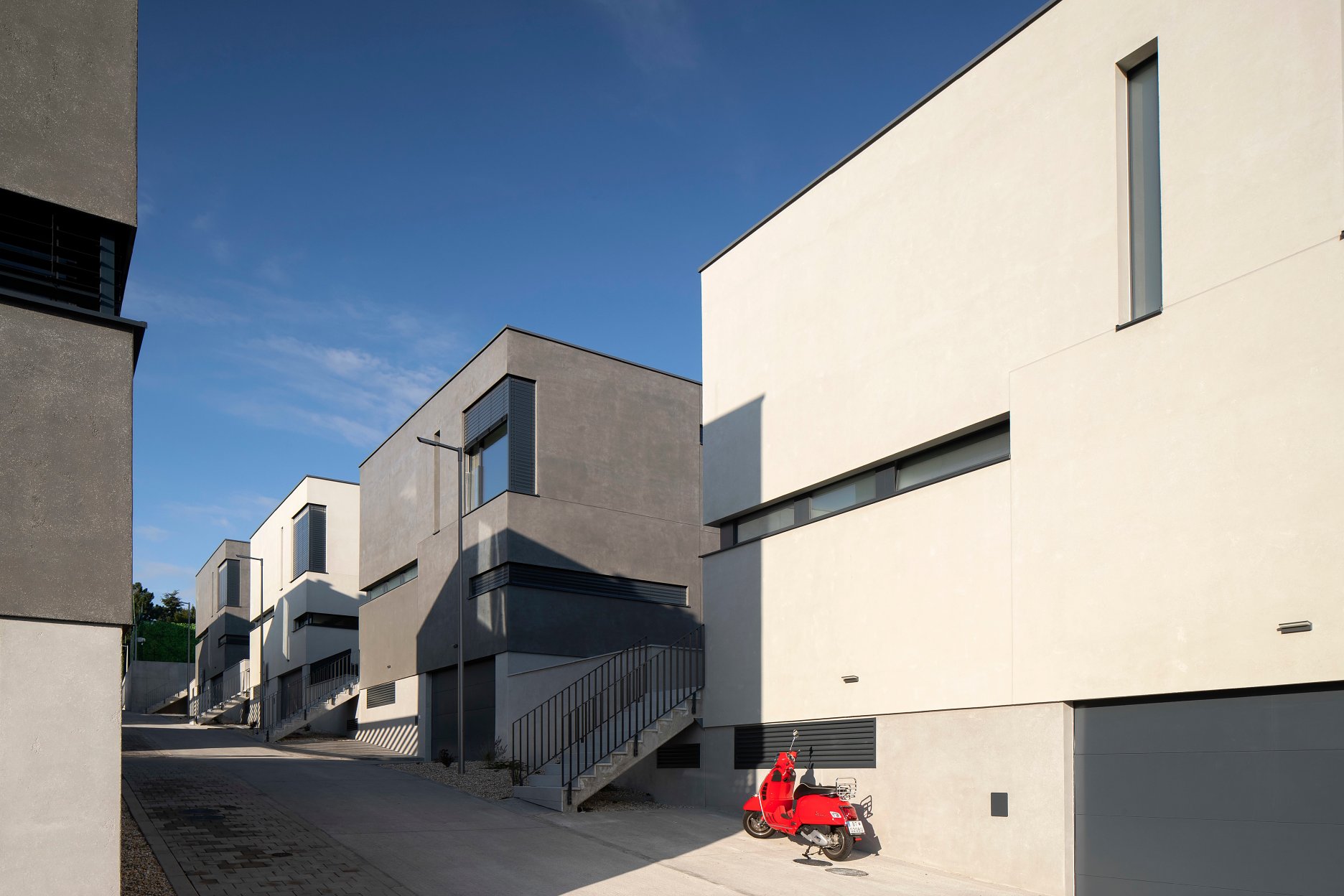Projekt ateliéru ALEXY & ALEXY architekti na Bratislavskej kolibe vznikol na základe vyzvanej súťaže, ktorej cieľom bola realizácia piatich dvojdomov na úzkom a dlhom svahovitom pozemku. Objekty s dvomi bytovými jednotkami voľne nadväzujú na okolitú zástavbu starších rodinných domov.
