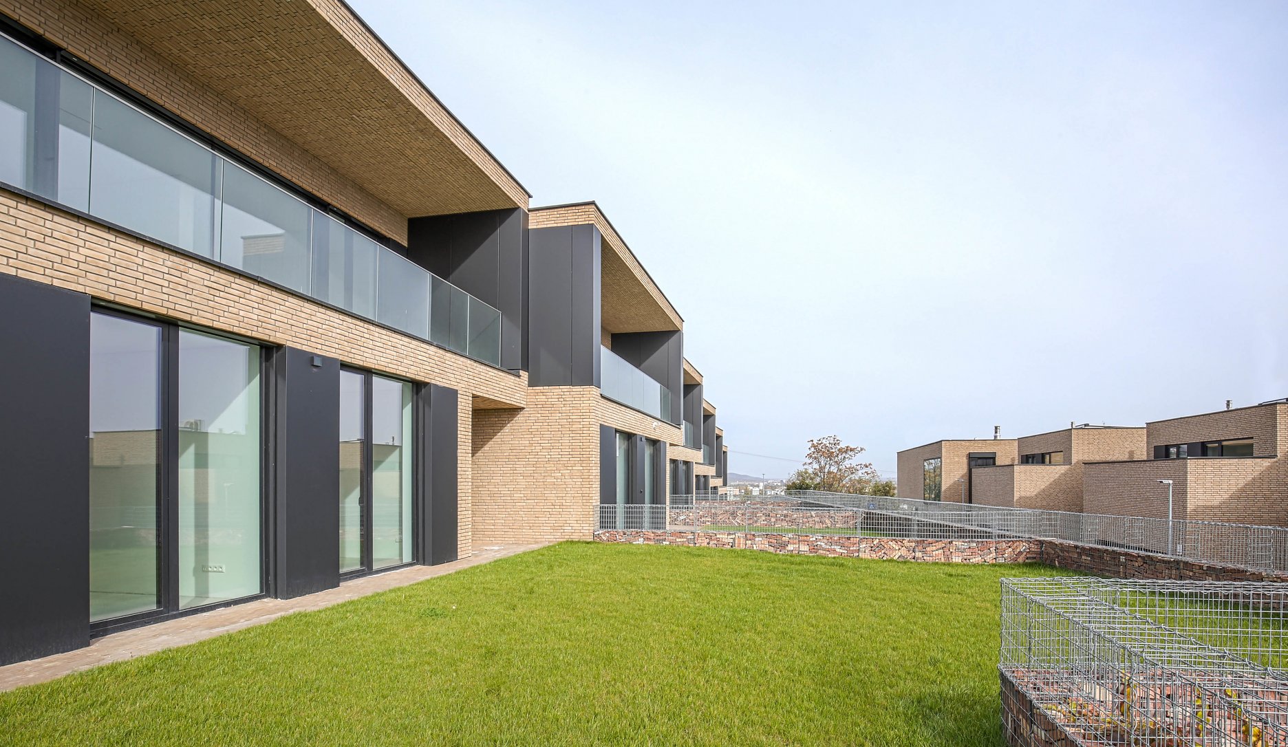 Rodinné domy sú usporiadané v dvoch radoch. Objekty v hornom rade majú dennú časť na vyššom poschodí, čo zabezpečuje nerušené výhľady z obytnej zóny. K nej prilieha priestranná lodžia, ktorá nahrádza terasu na pozemku.