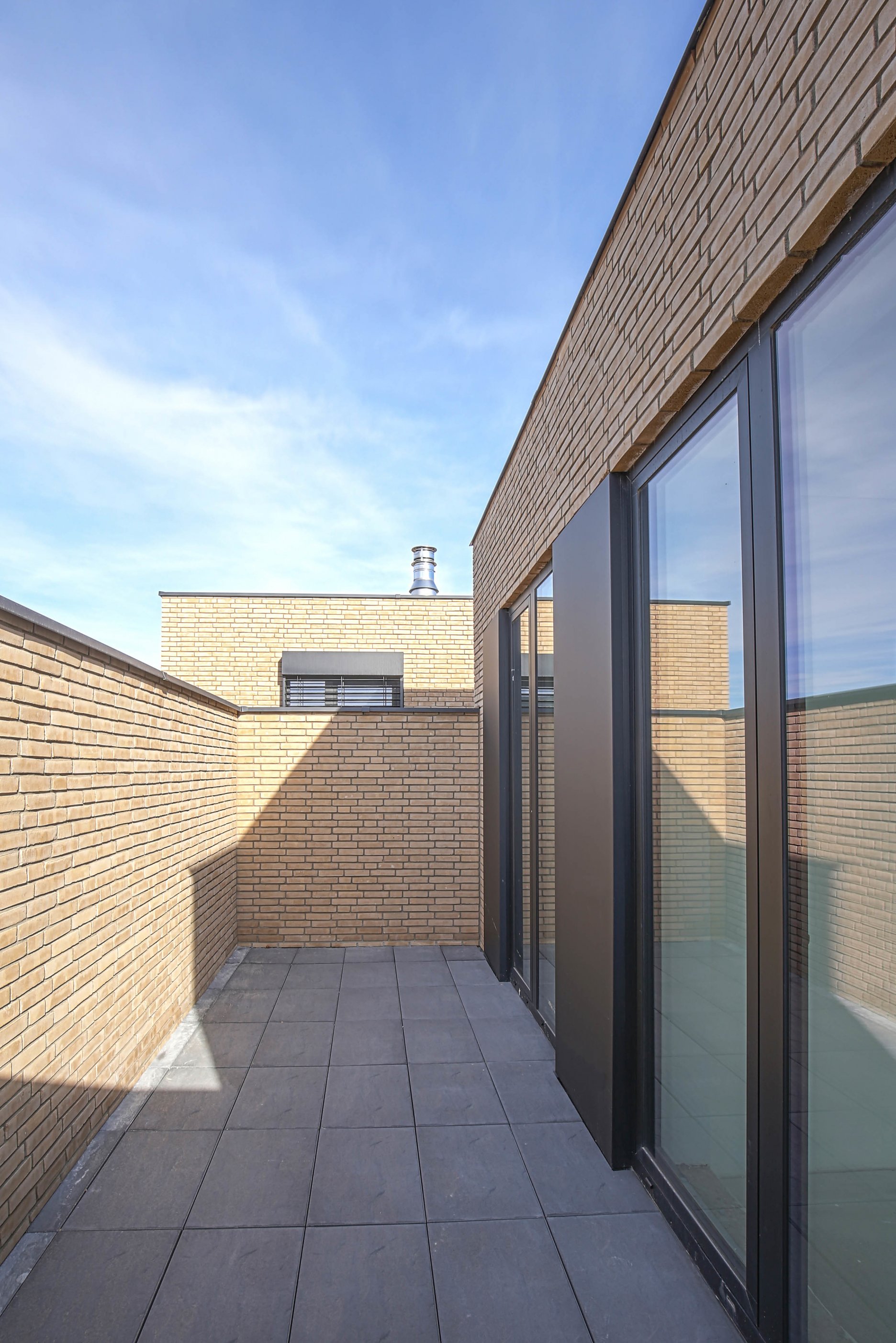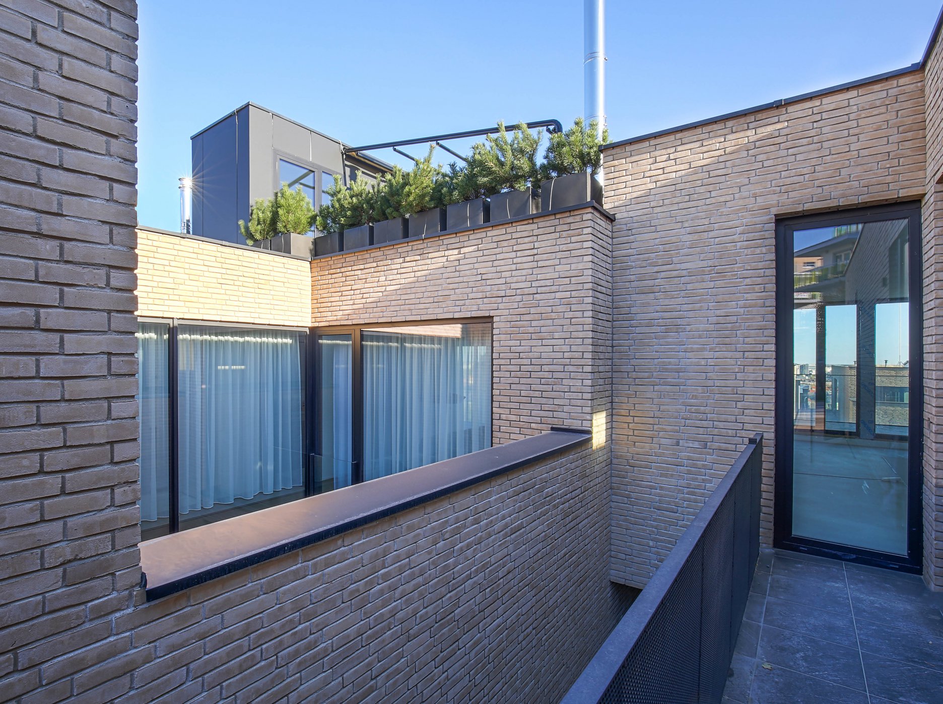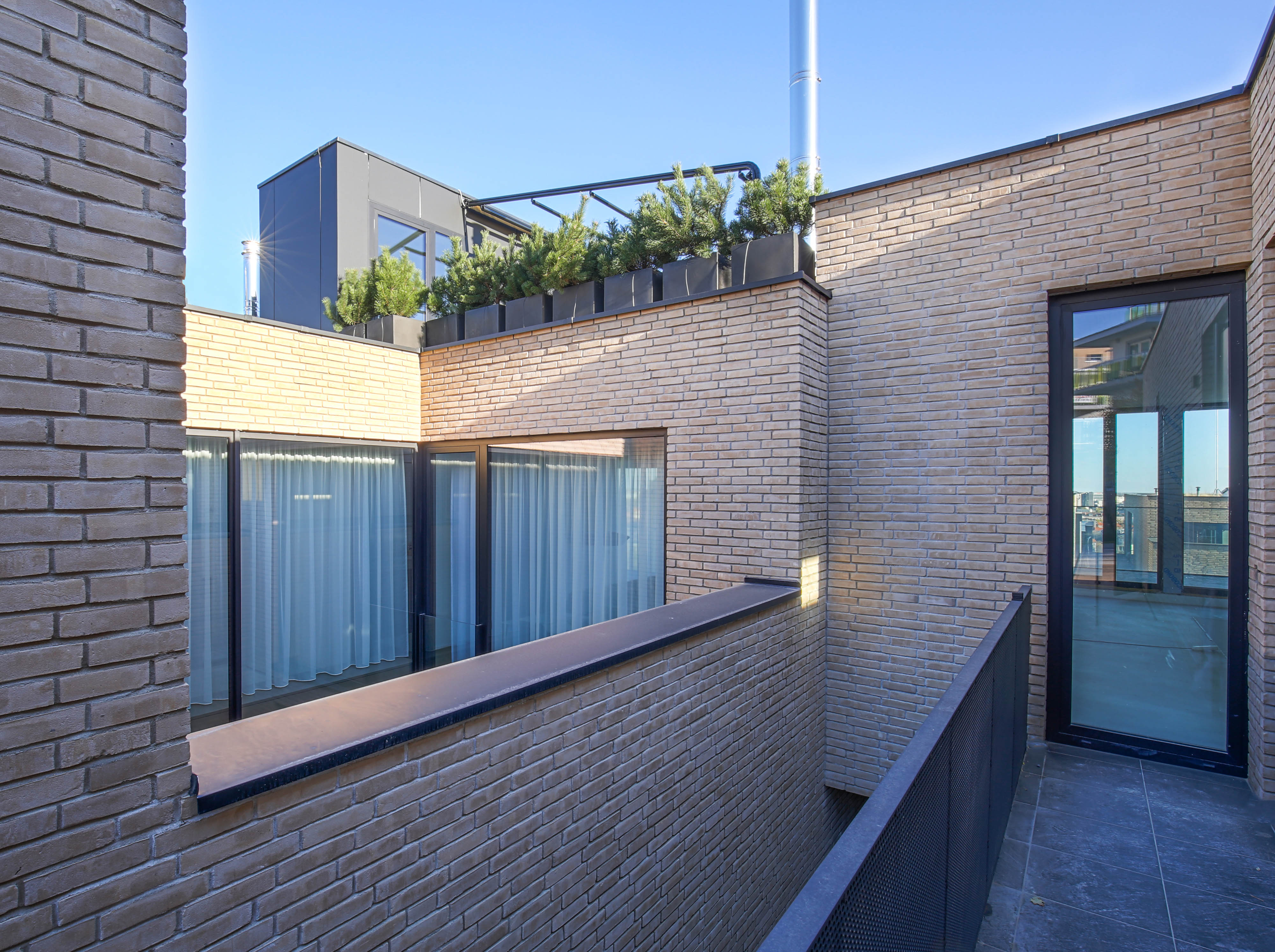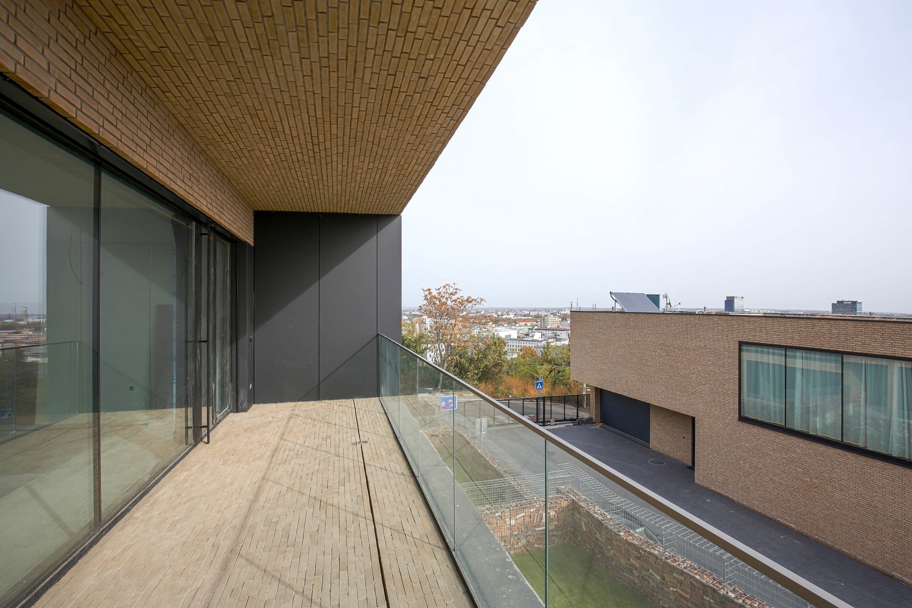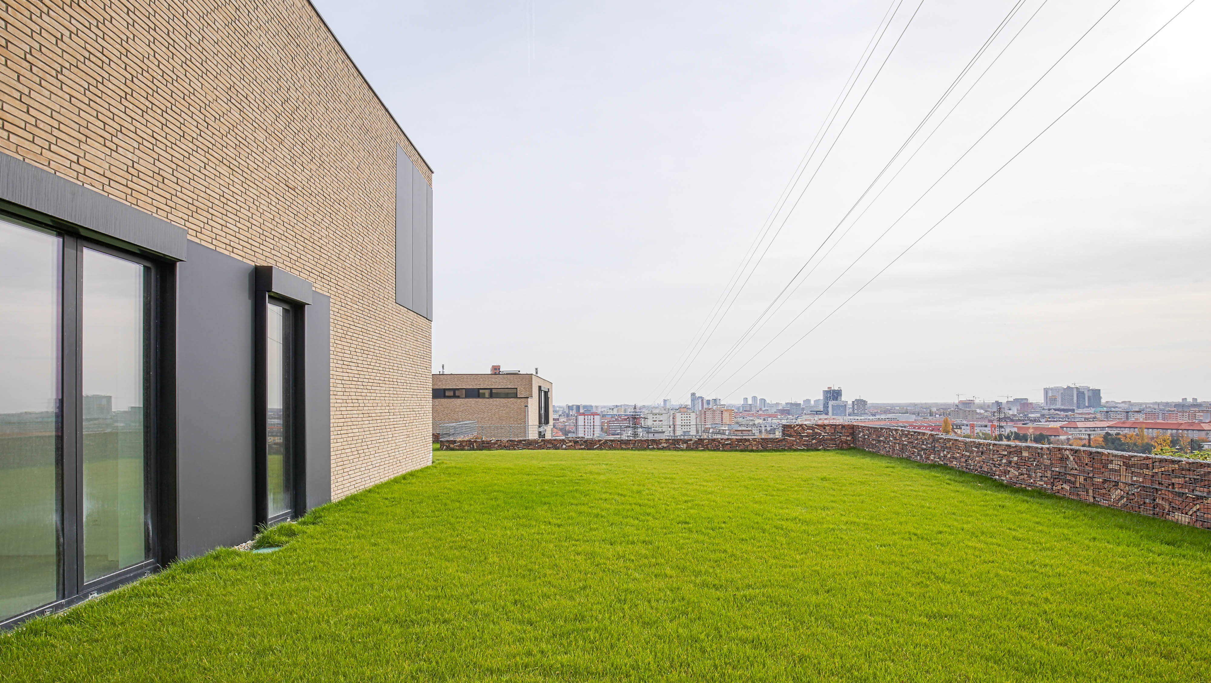 K technickému štandartu patria akustické hliníkové okná alebo bezúdržbové fasády obložené keramickými tehlami a alucobondom. Fasáda z lícových tehál Rustique Beige (207 x 50 x 23 mm) sa vyznačuje divokou väzbou s použitím celých aj polovičných tehličiek.