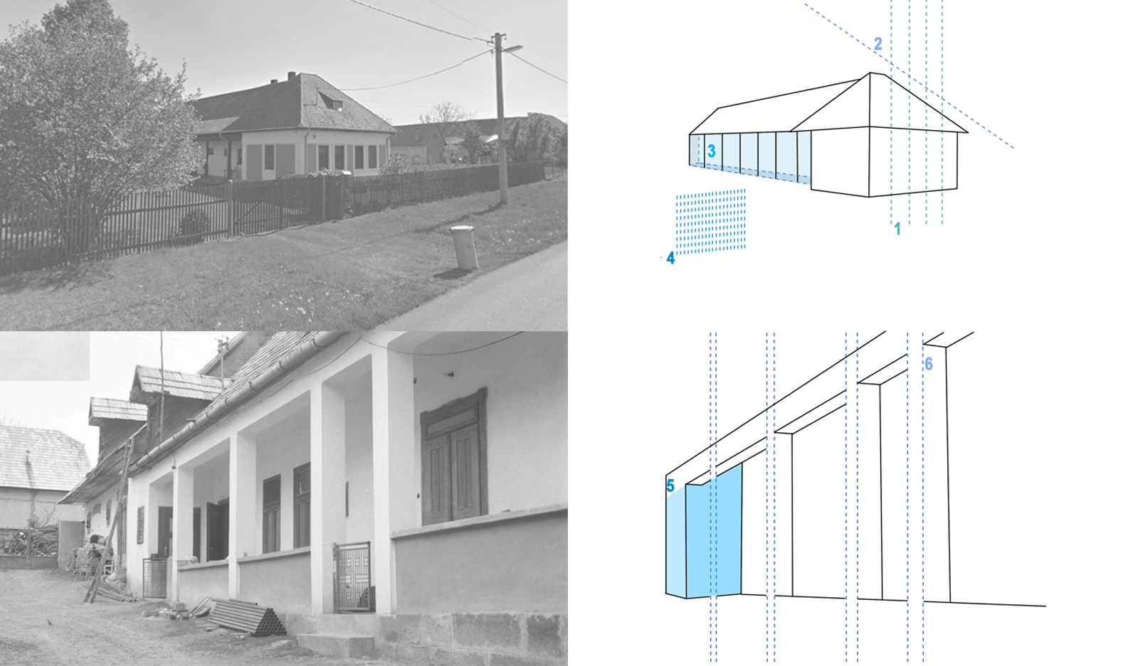 Koncept návrhu je ťažiskovo opretý o lokálnu tradičnú architektúru. Vychádza z úzkej formy domu, kde sú jednotlivé miestnosti aditívne radené za sebou a prepojené exteriérovým prekrytým gánkom. Gánok je umiestnený na západnej fasáde domu a