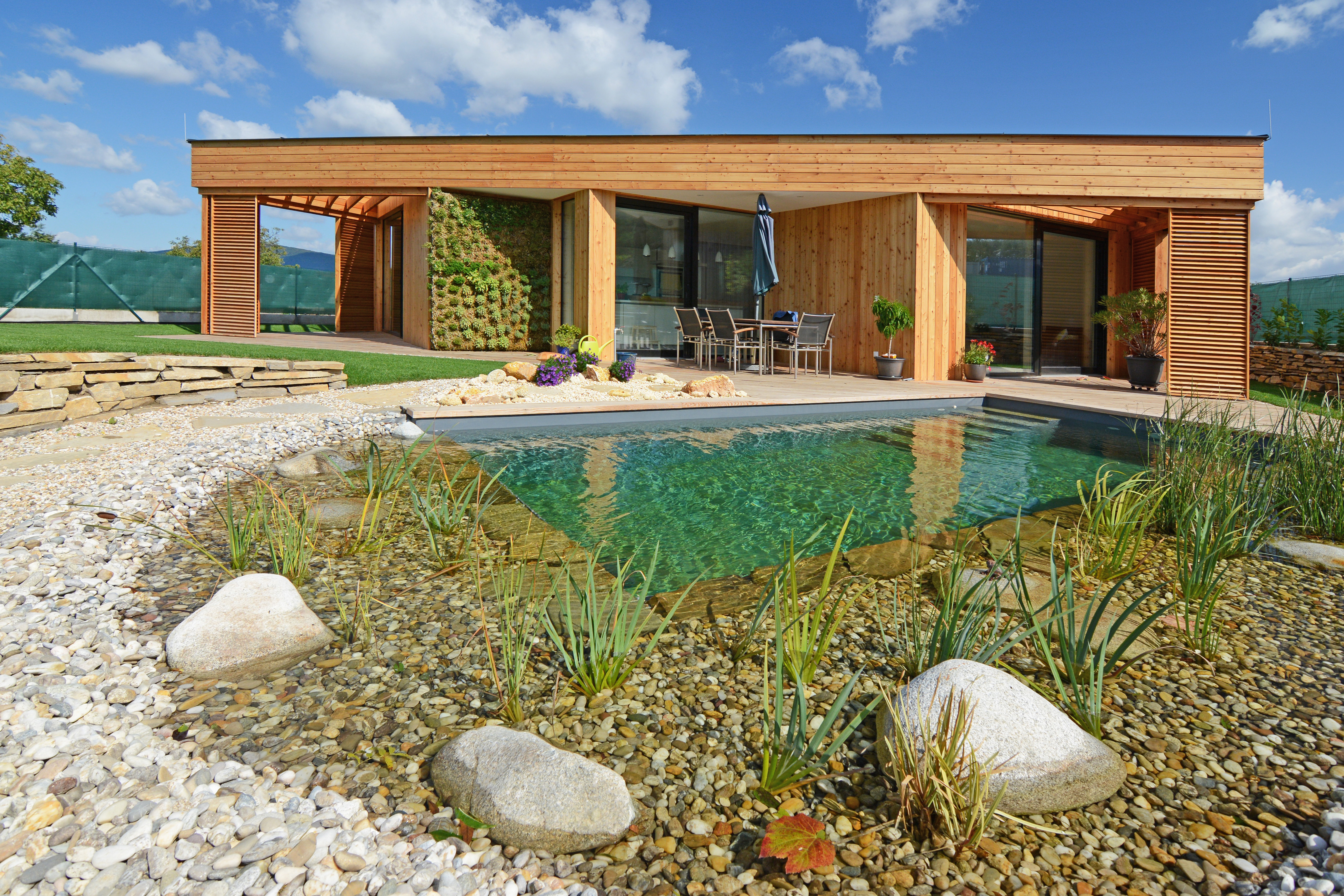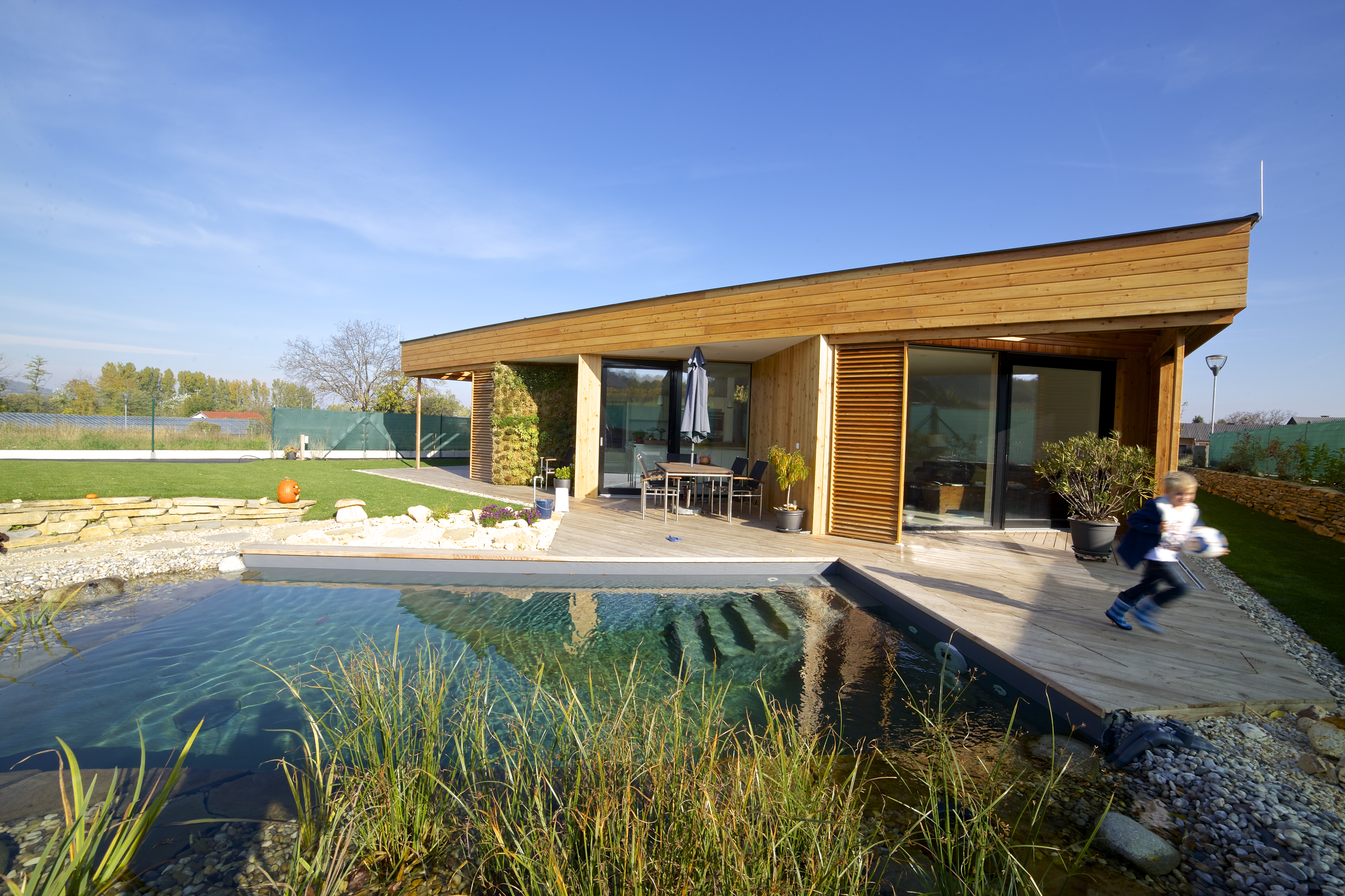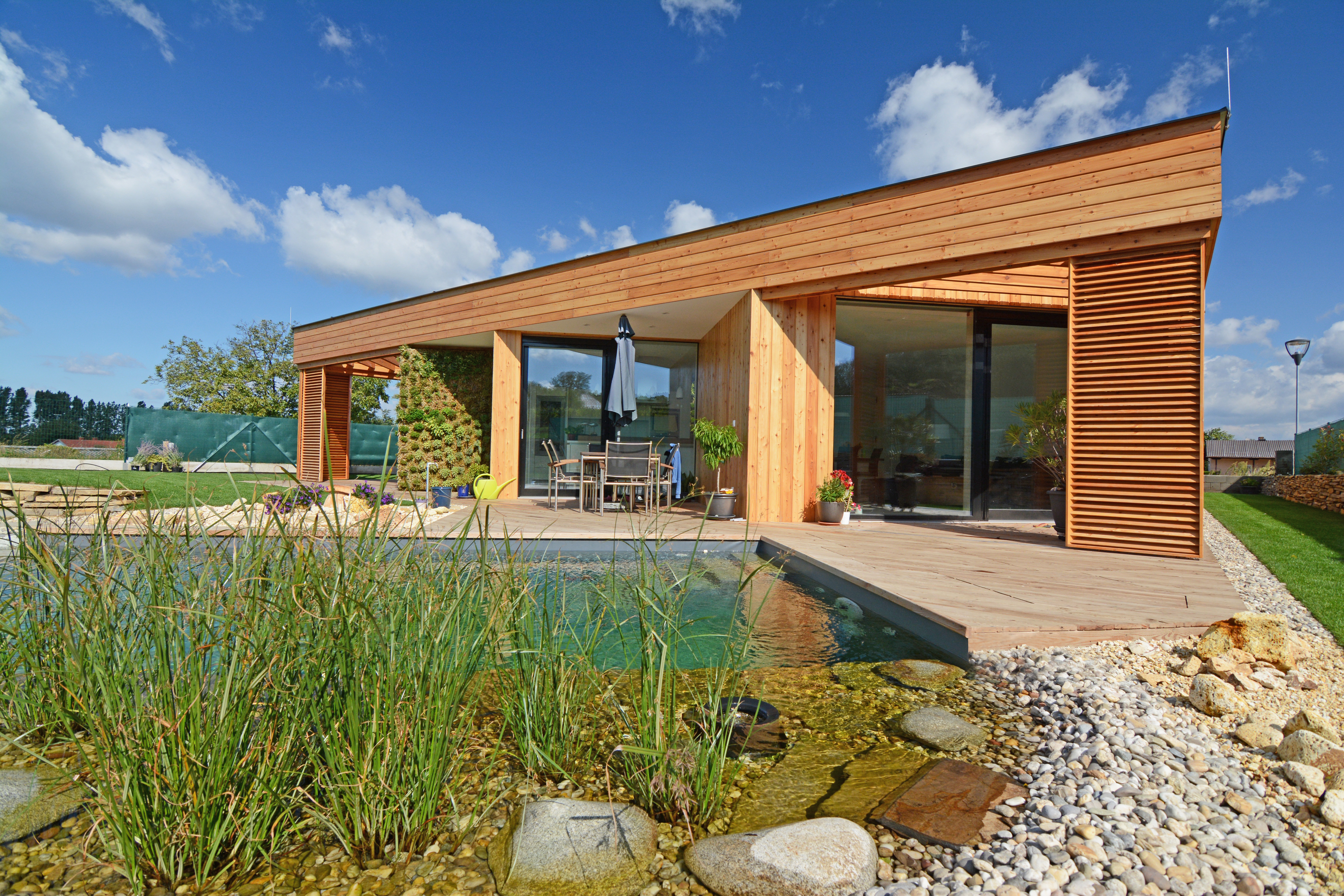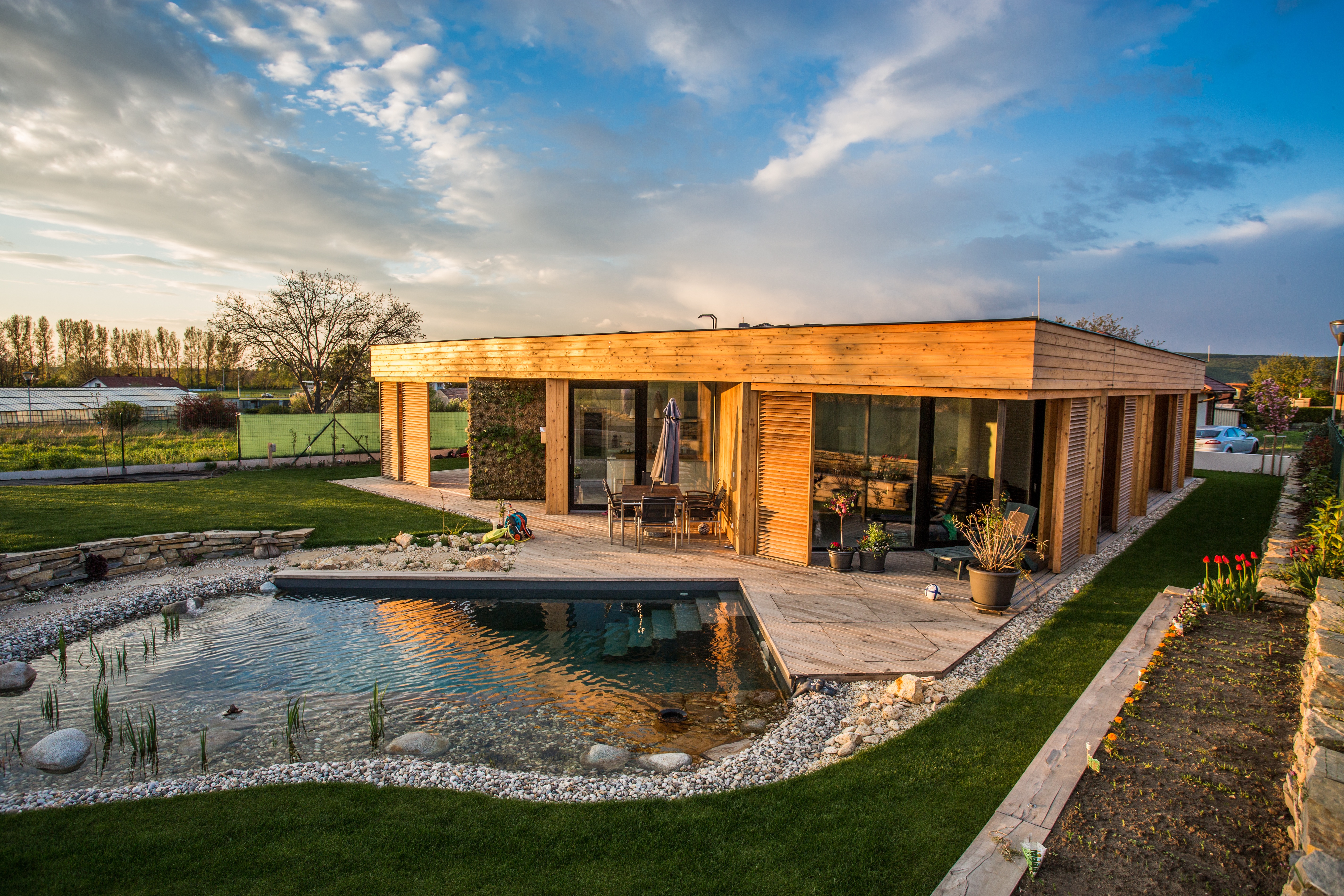 Proti nadmernému odvádzaniu dažďových vôd slúžinavrhovaná konštrukcia vegetačnej strechy, ktorá väčšiu časť objemu absorbuje pre udržiavanie biorytmu strešnej vegetácie, zbytok bude akumulovaný v prírodnom jazierku. Týmito navrhovanými technickými riešeniami bude možné minimalizovať dopady na životné prostredie a dom má predpoklad sa stať trvaloudržateľný a ekologický.
