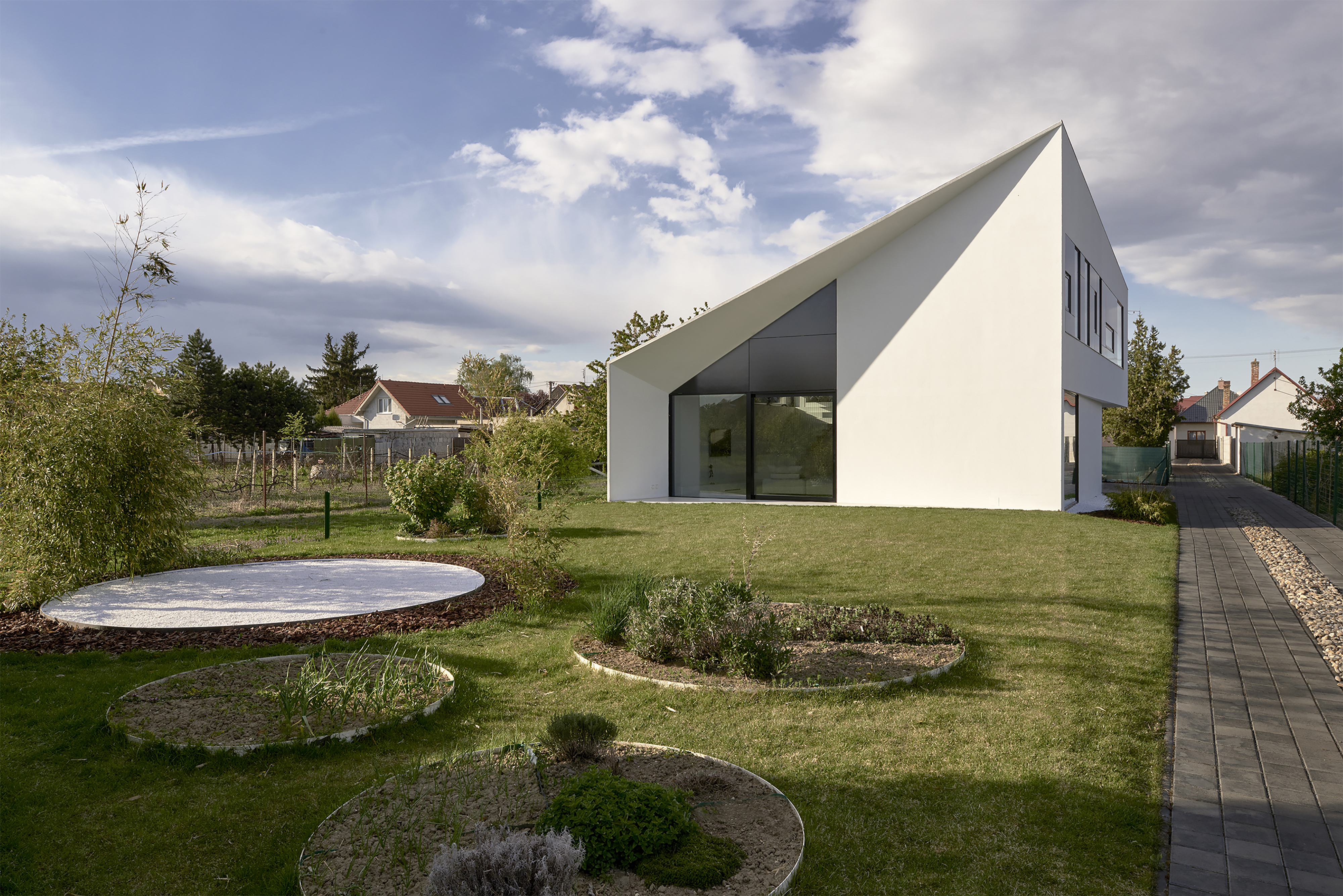 Rodinný dom sa nachádza v záhradách starej vidieckej zástavby v Bernolákove. Tvarovo zaujímavý koncept domu vznikol ako reakcia na okolitú zástavbu.