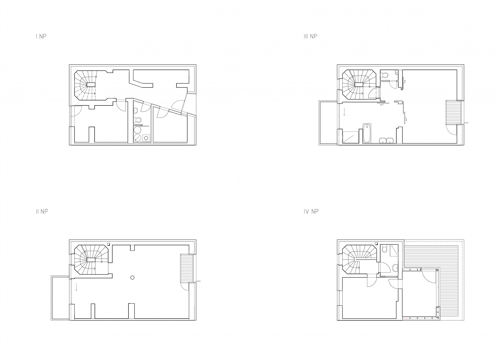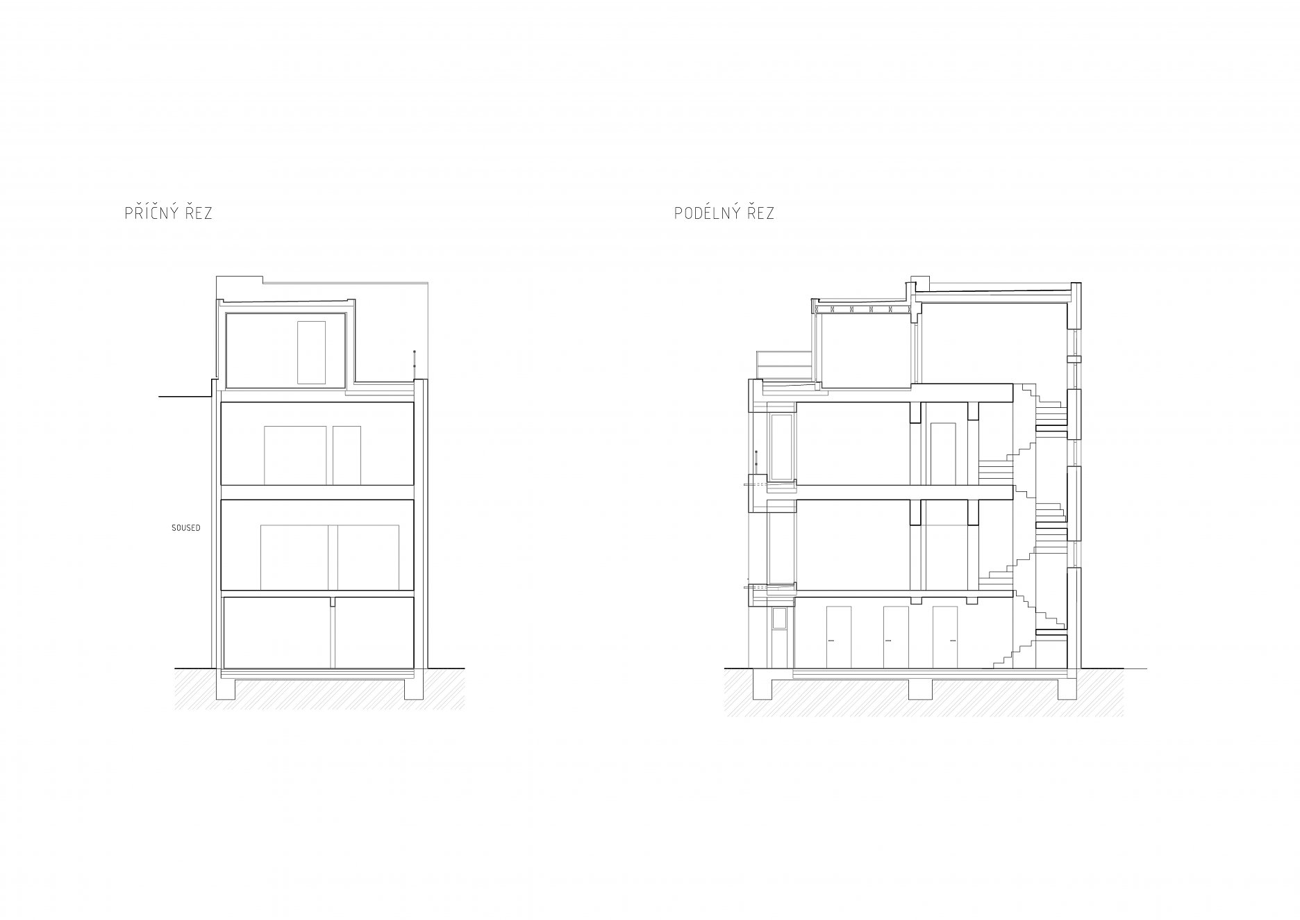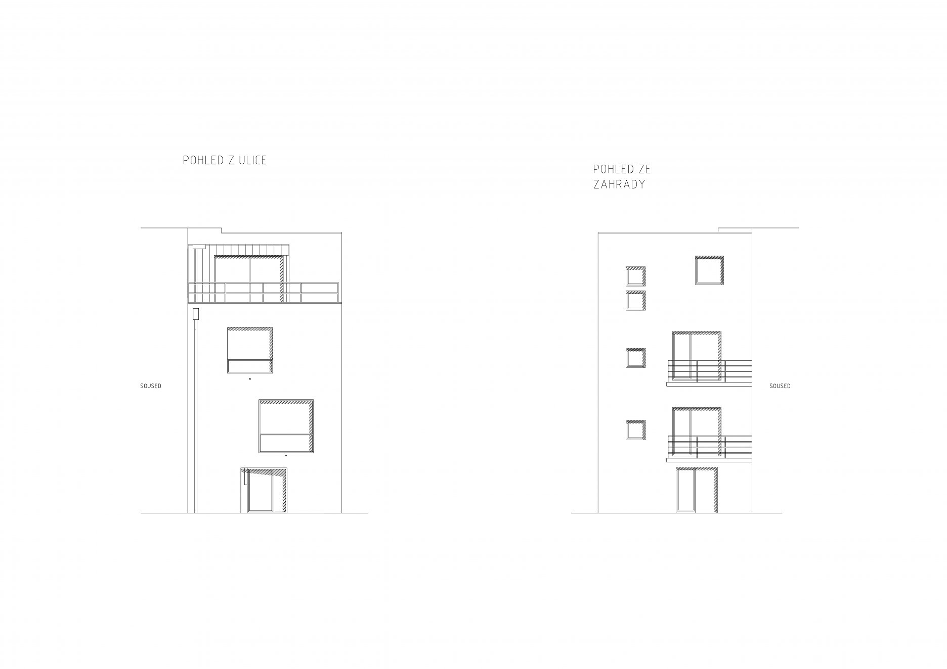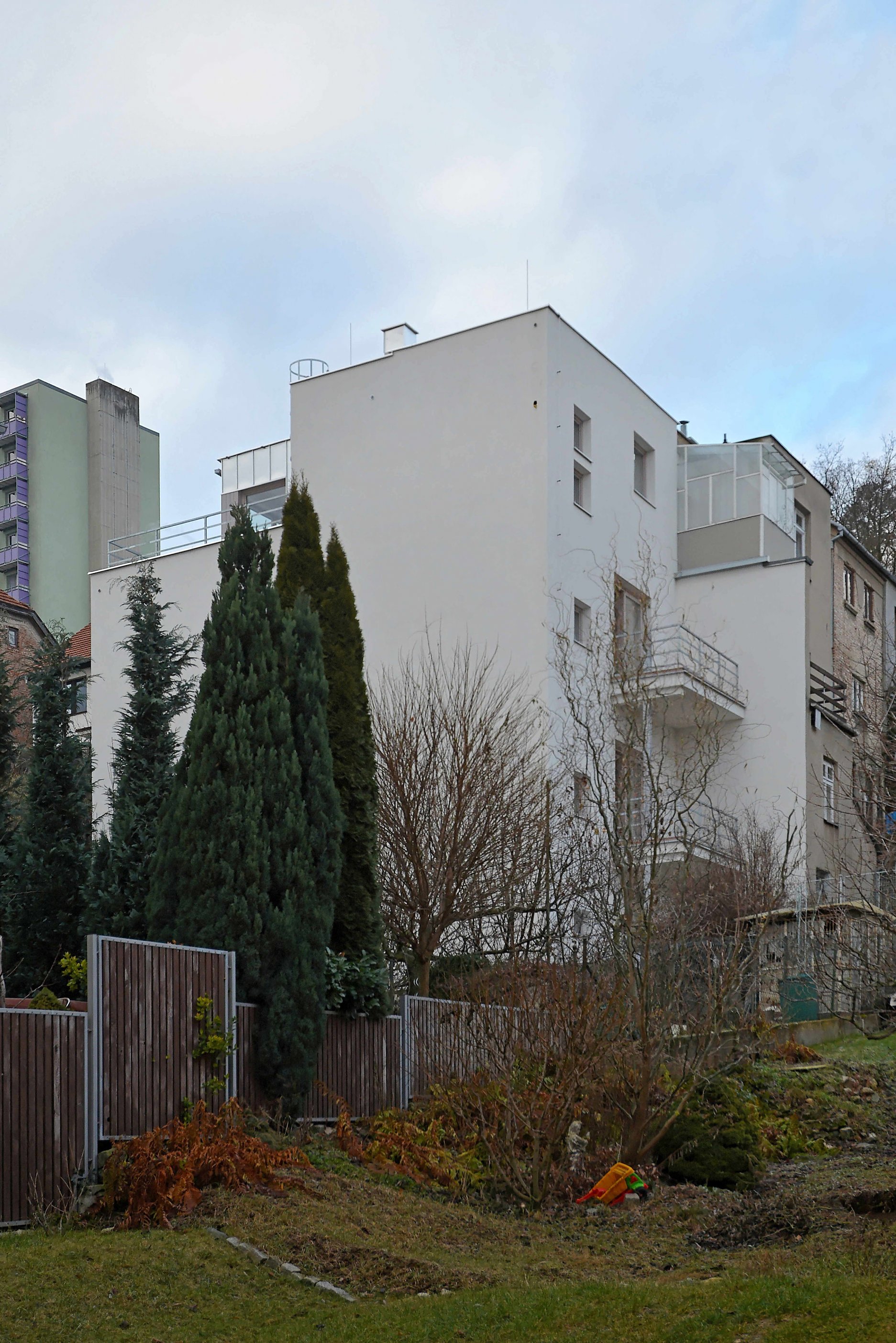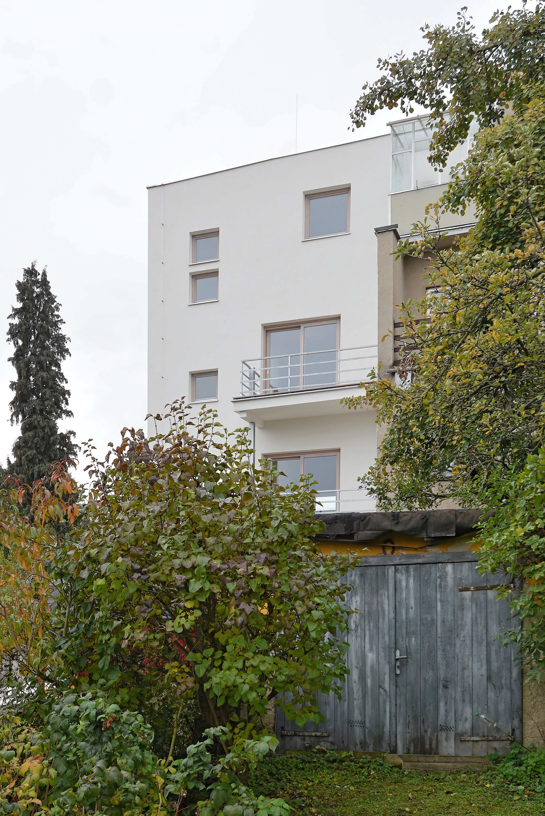 Rekonštrukcia sa týkala polovice staršieho dvojdomu s plochou strechou. Pôdorys objektu neprekročili pôvodnú zastavanú plochu, nové usporiadanie stavebných otvorov pomáha zlepšiť využite vnútorného priestoru. Na najvyššom podlaží pribudla ľahká drevená nadstavba opláštená titánzinkovým plechom.