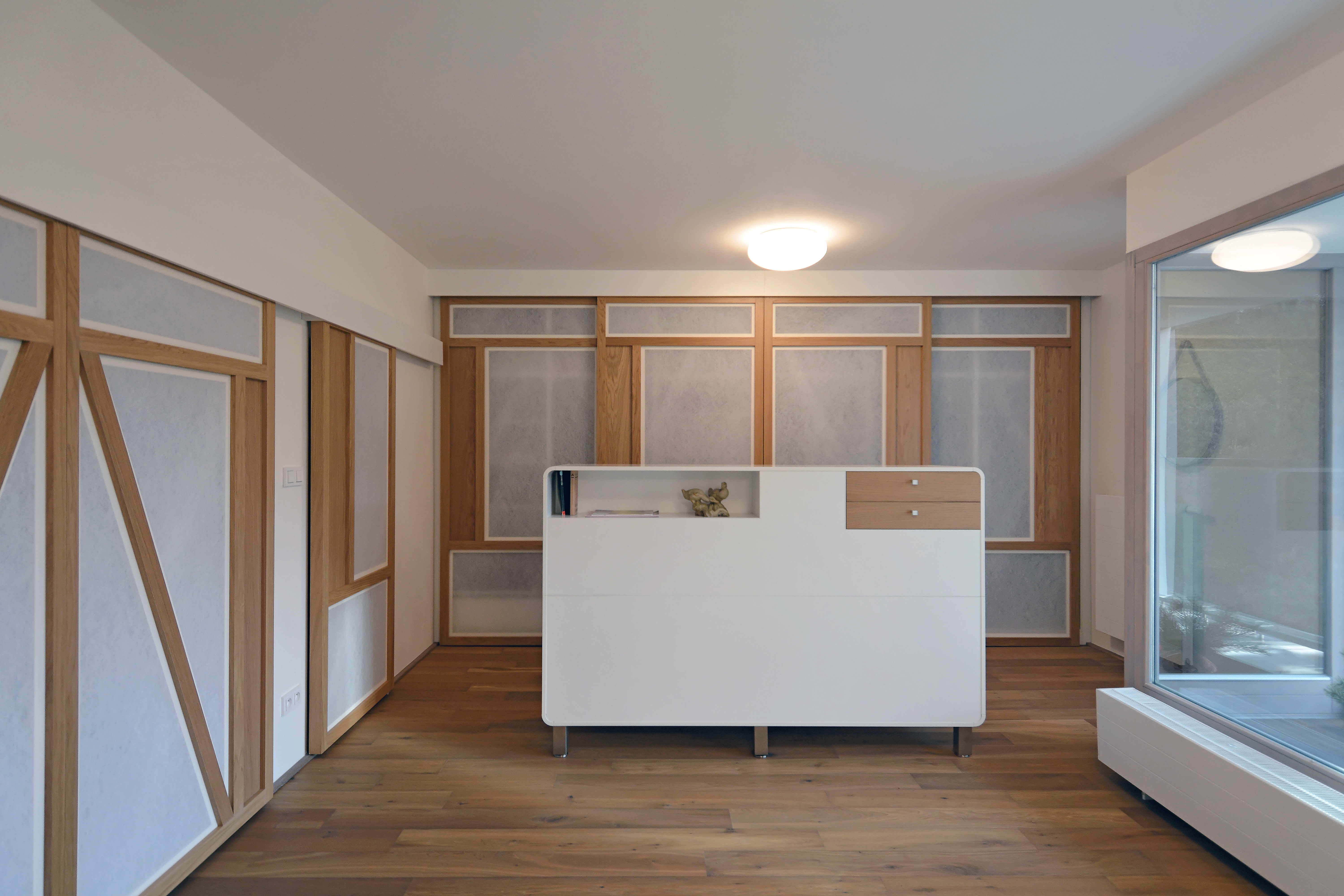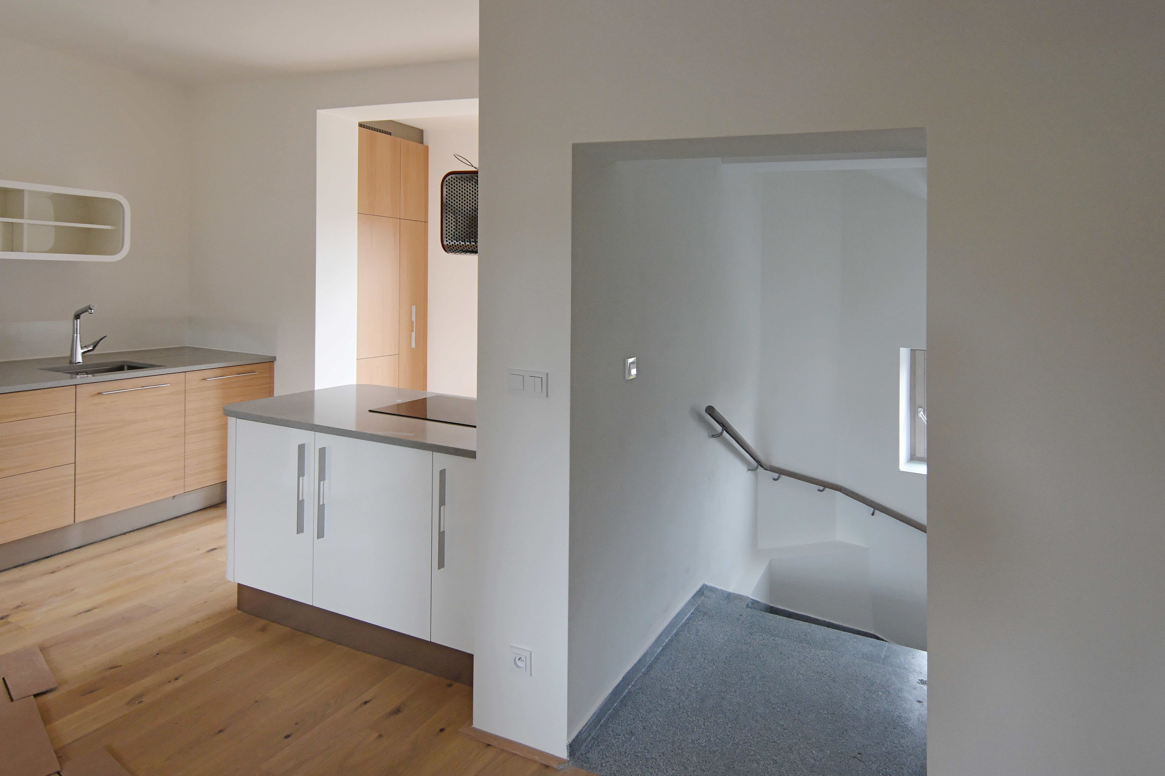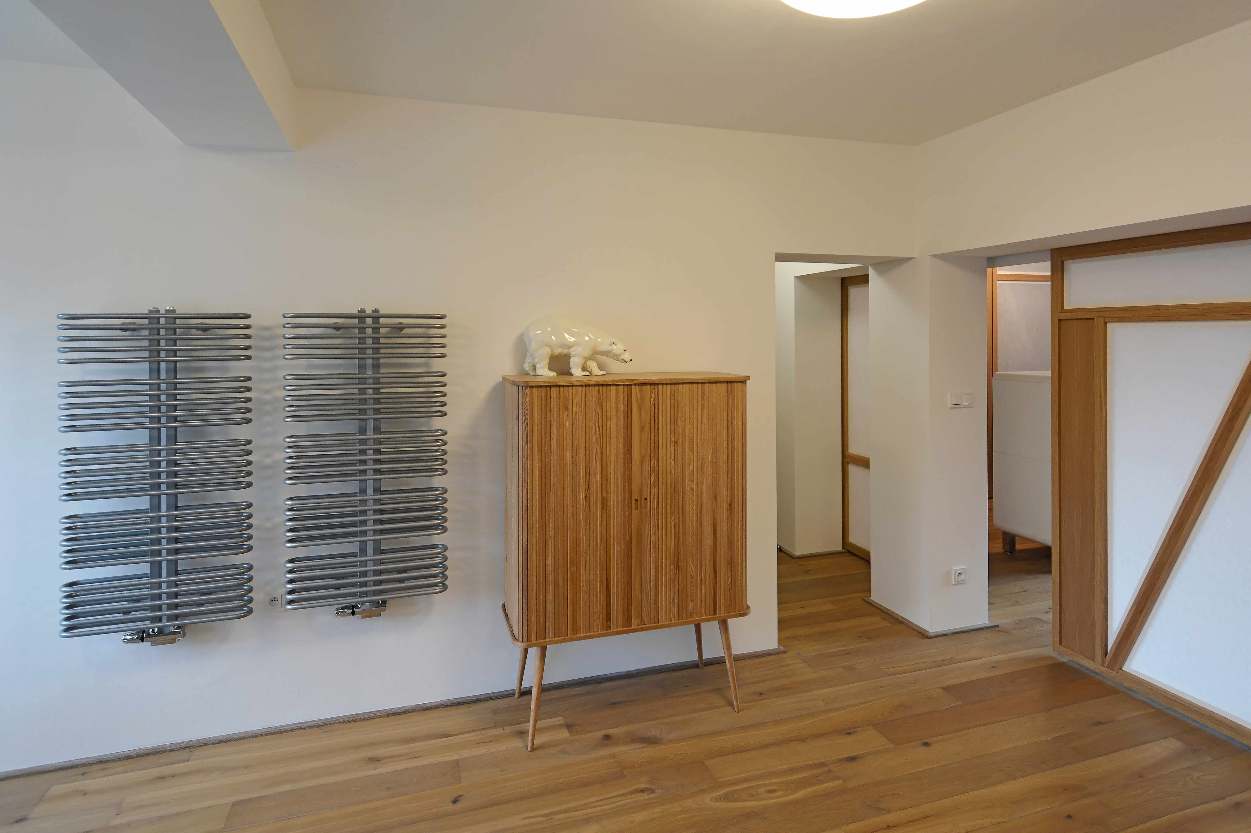 Na prvý pohľad neveľké zmeny. Obnovená fasáda, nové lodžie orientované do ulice, obytná plocha rozšírená o malý strešný ateliér... Vo výsledku komplexný autorský vklad. Malé stavebné zásahy výrazne prispeli k lepšiemu využitiu priestoru. Čo bolo dobré ostalo zachované (základná prevádzková schéma, pôvodné terrazzové schodisko...). Zvyšok nahradila nová funkčná a kvalitná vrstva.