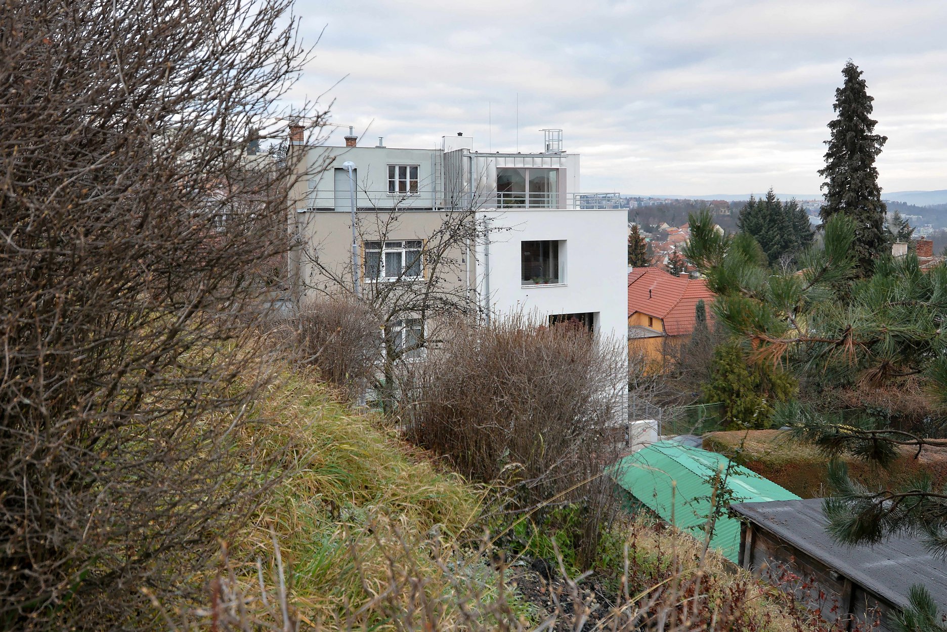 Dom sa nachádza na západnom okraji zastavaného územia Brna. Vchod je orientovaný do strmej slepej ulice, ktorá končí na okraji lesoparku a prírodnej rezervácie Kamenný vrch. Pozemok sa zvažuje k výhľadom, smerom na východ, vstup je situovaný na južnej strane.