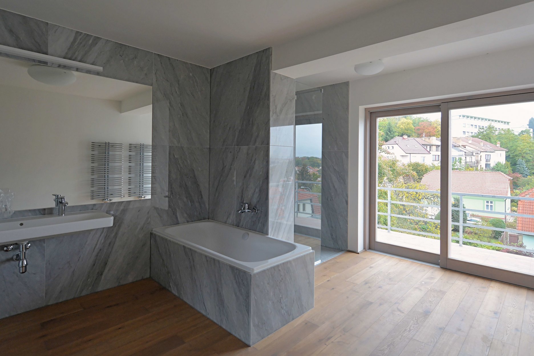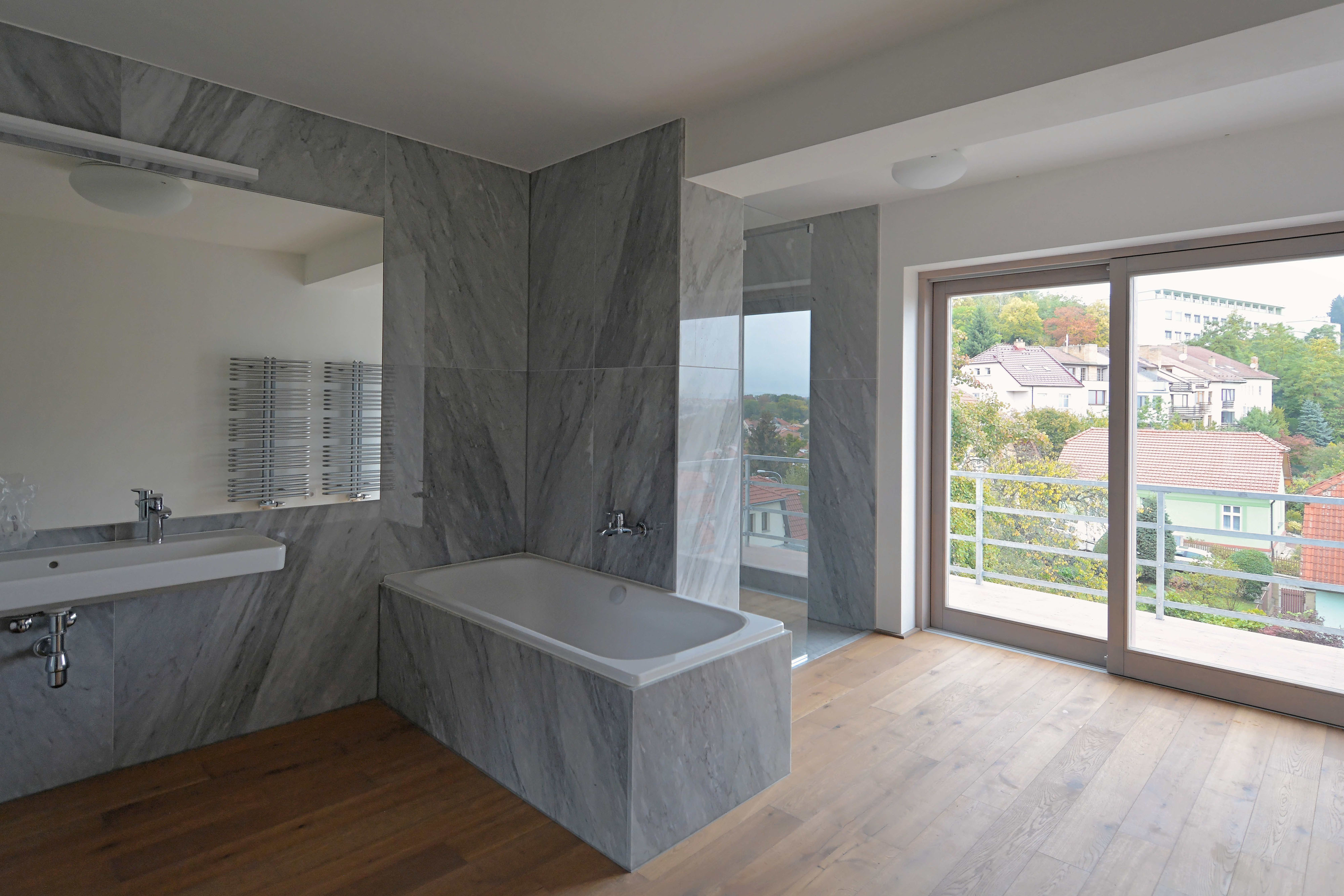 Na treťom nadzemnom podlaží sa nachádza nočná zóna. Spálňa so šatníkom a kúpeľňou je doplnená o samostatné WC. Z kúpeľne je prístupný balkón. smerom do ulice opäť vzniká menšia lodžia.