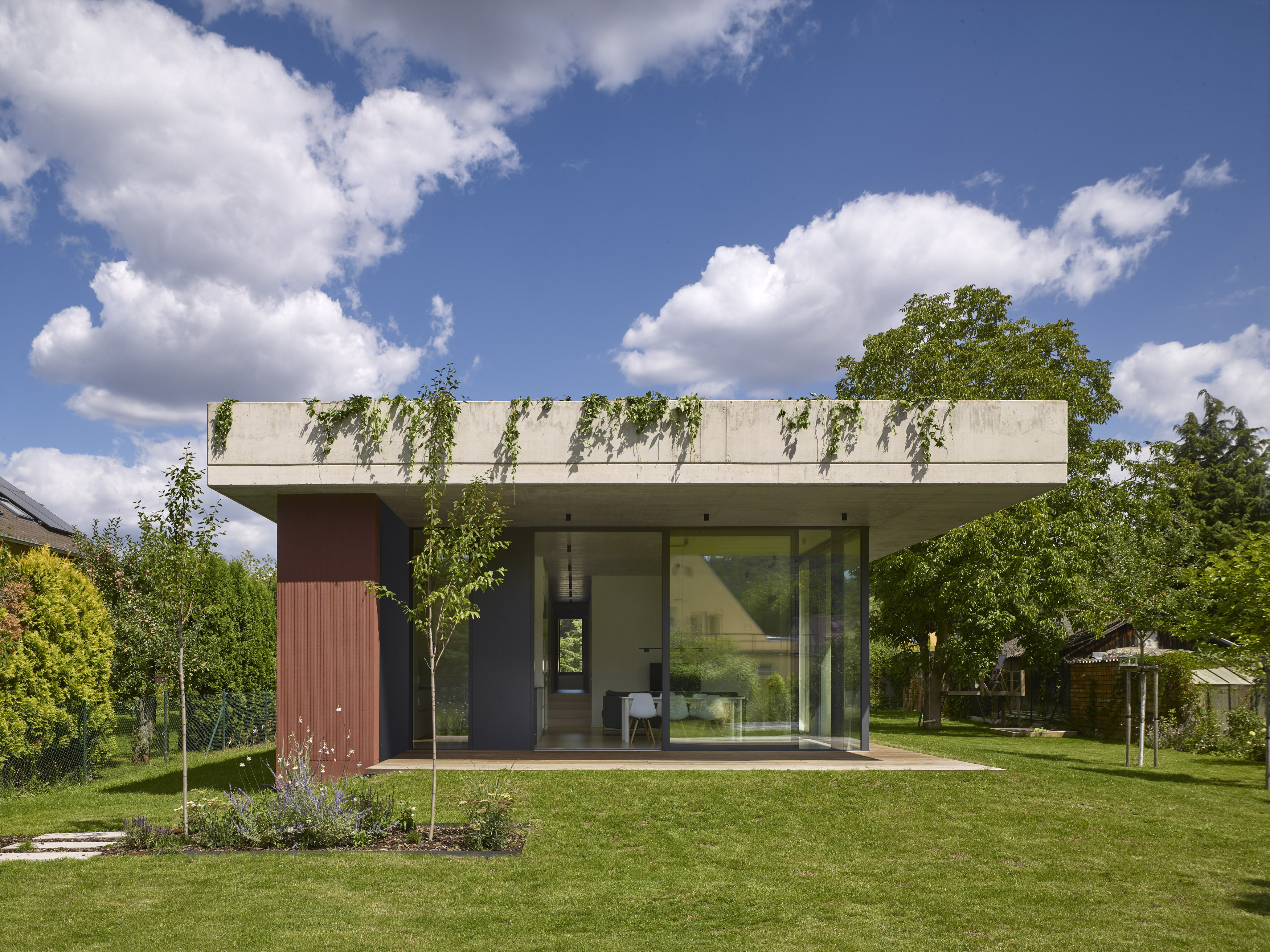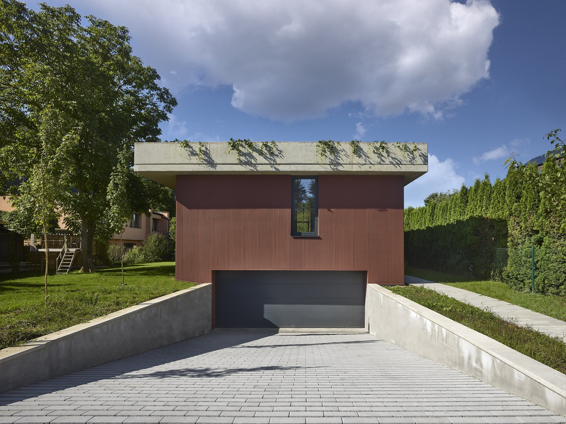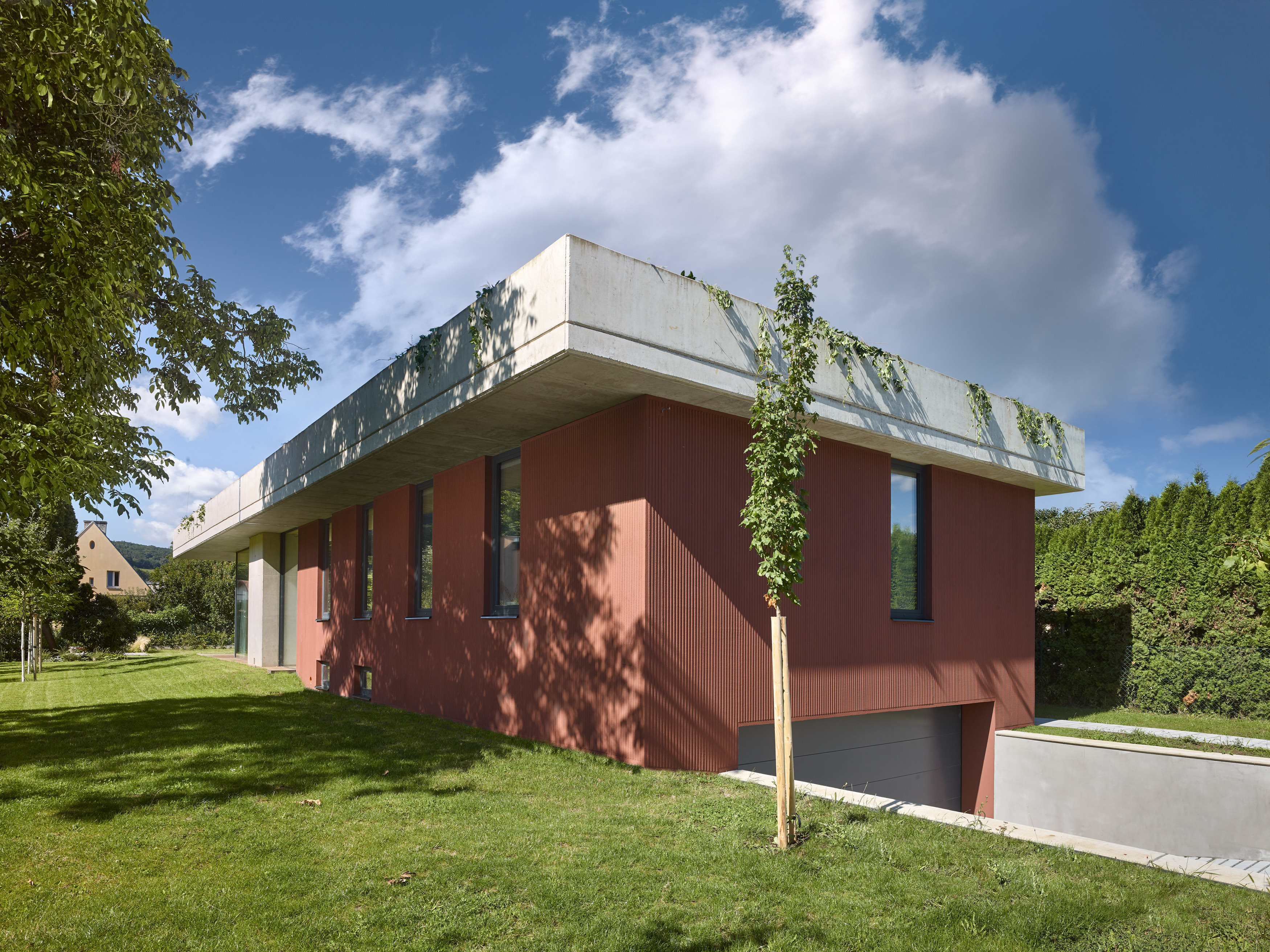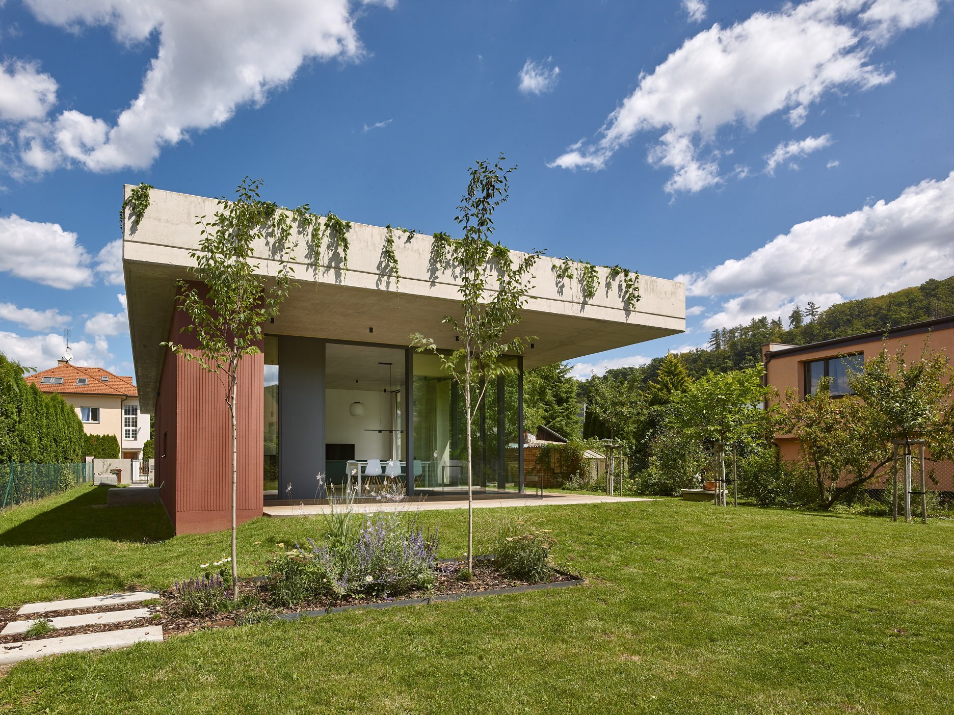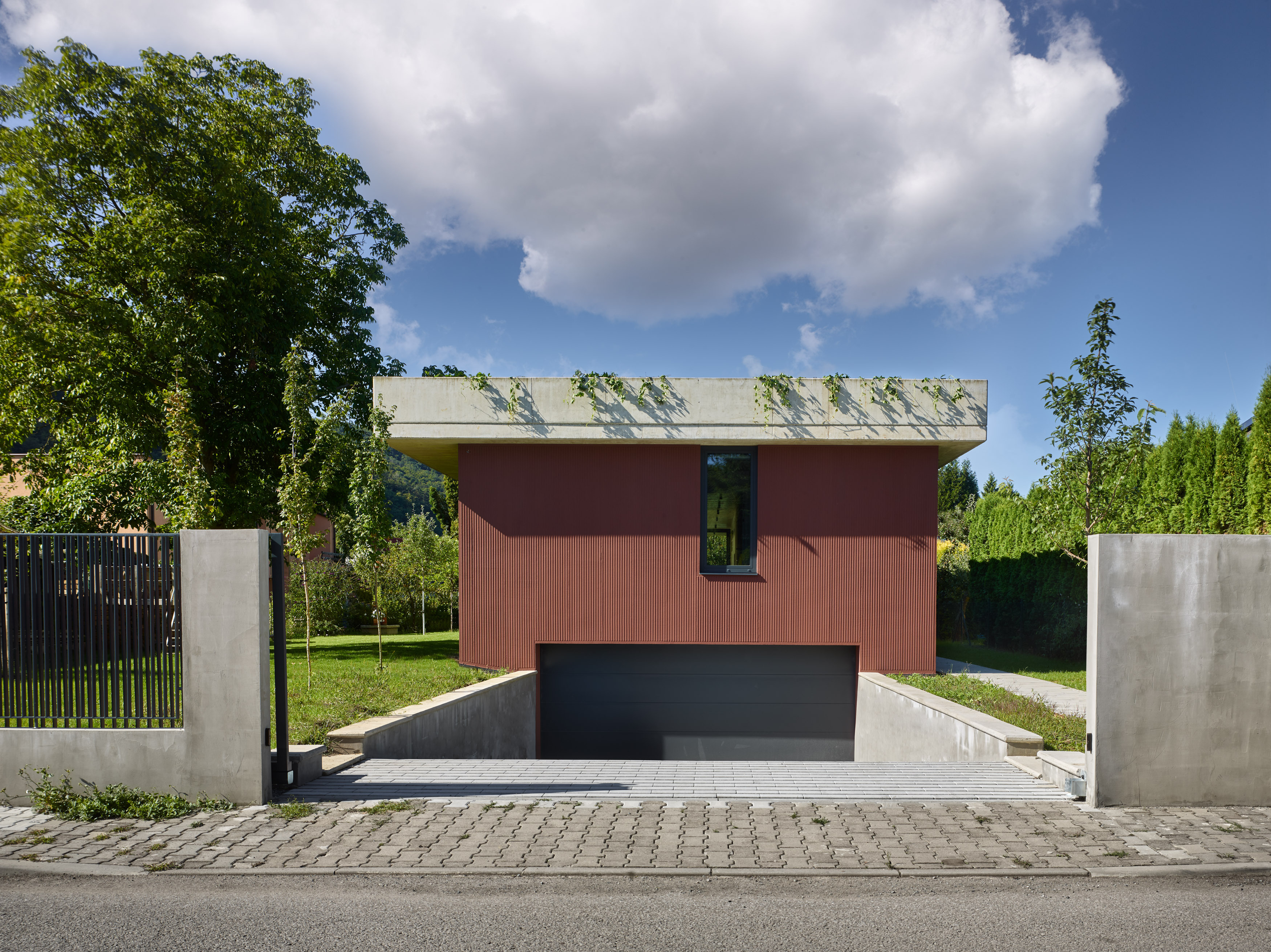 Realizácia ateliéru Stempel & Tesar architekti. Solídna oceľobetónová konštrukcia, modulácia terénu, strecha s masívnou atikou, tieniacou otvorenou obytnou zónou... Dom, šitý na mieru východiskovým podmienkam, rozširuje pestré portfólio autorského kolektívu (viď. súvisiace články v závere textu). Aj v tomto prípade má dôležité slovo individualita klienta a dôraz na "dotiahnutie" projektu k vzájomnej spokojnosti.