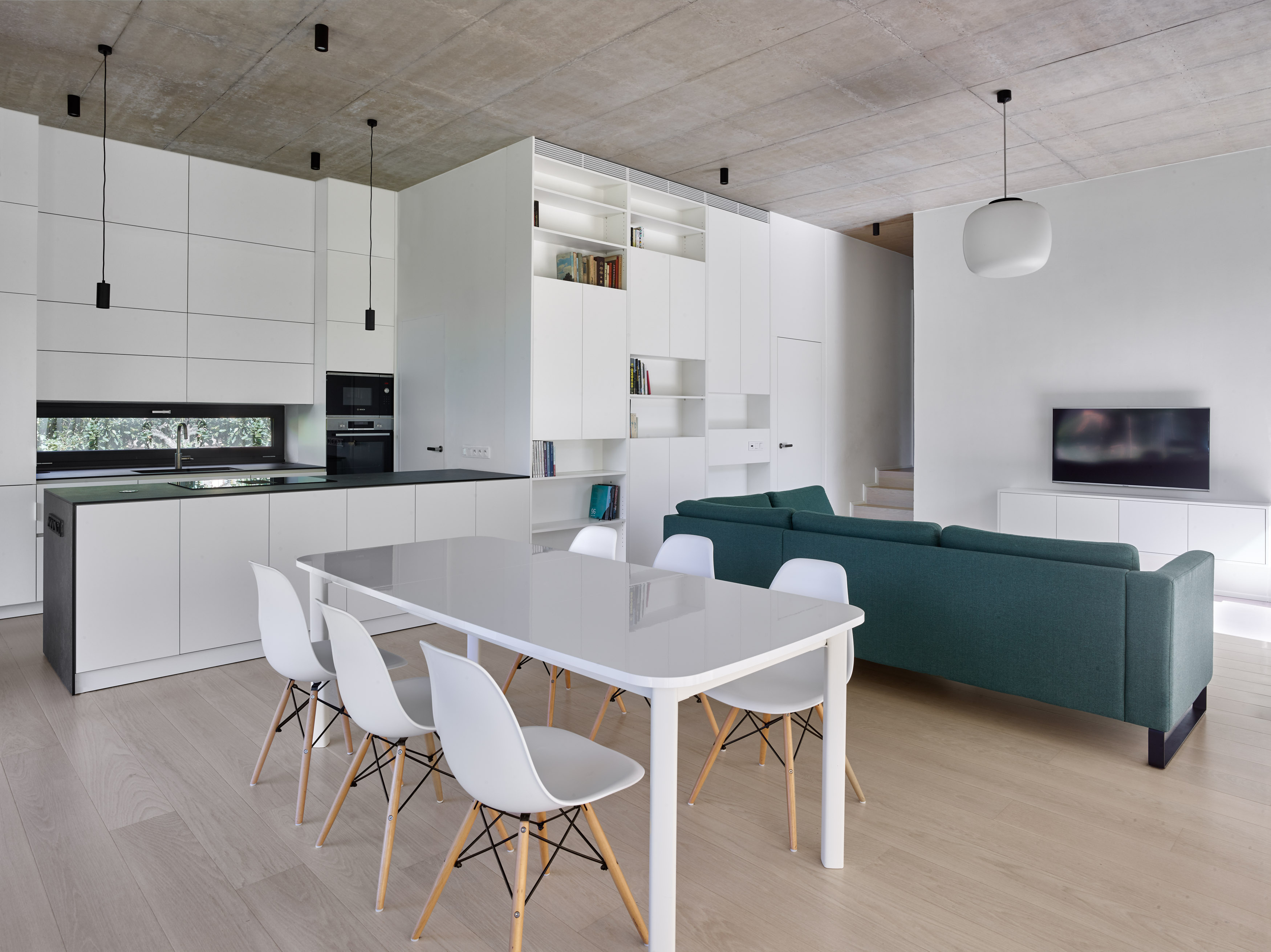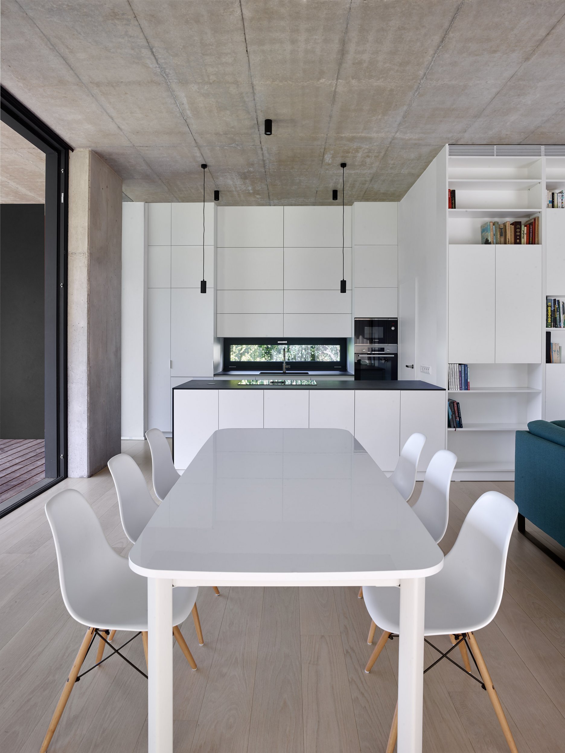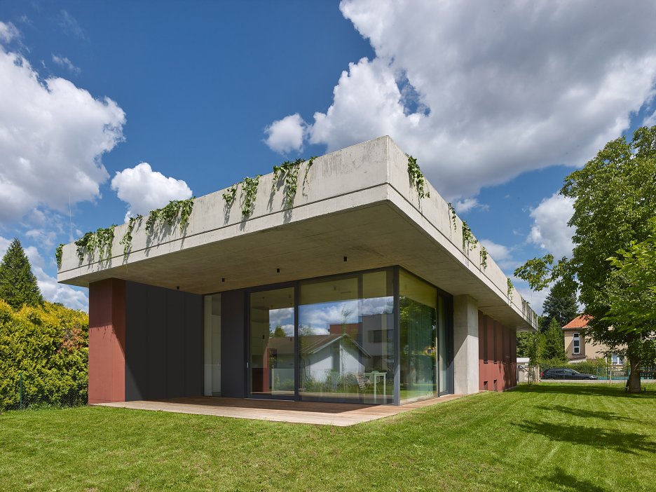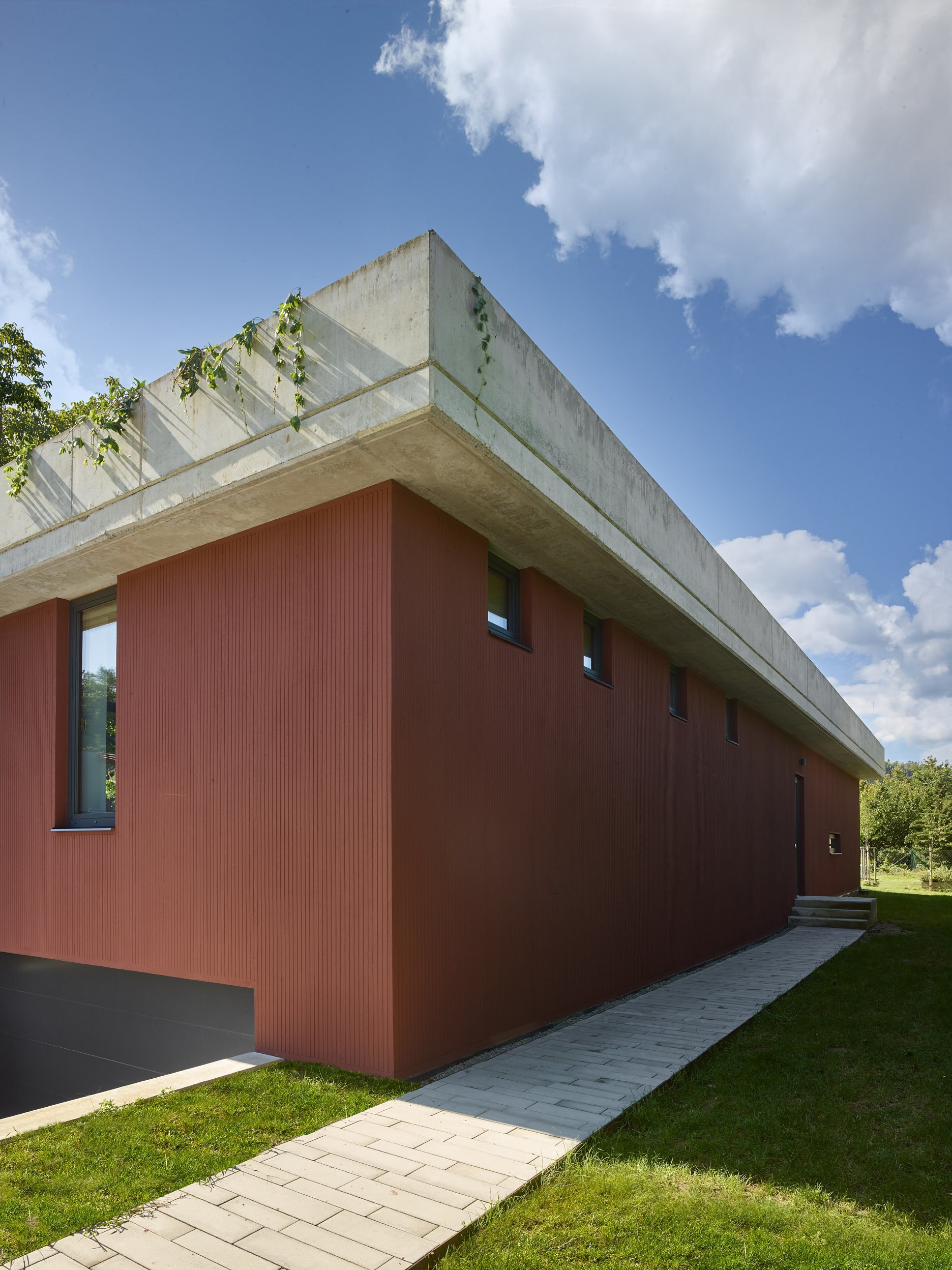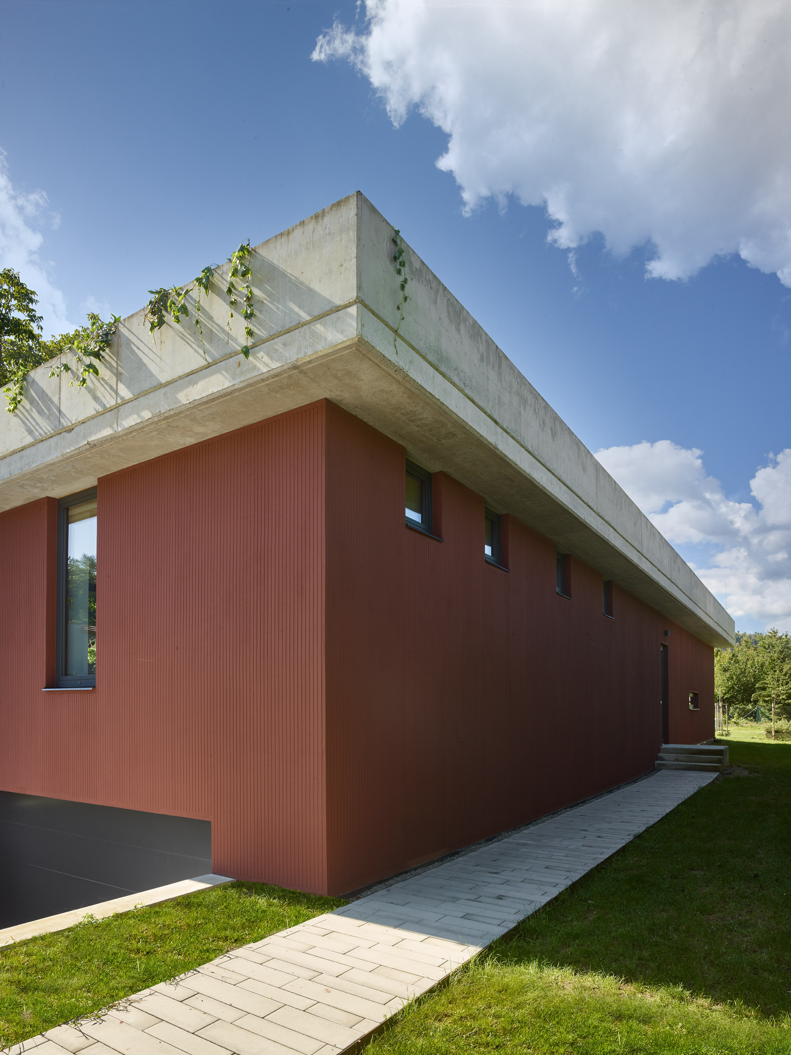 Realizácia ateliéru Stempel & Tesar architekti. Solídna oceľobetónová konštrukcia, modulácia terénu, strecha s masívnou atikou, tieniacou otvorenou obytnou zónou... Dom, šitý na mieru východiskovým podmienkam, rozširuje pestré portfólio autorského kolektívu (viď. súvisiace články v závere textu). Aj v tomto prípade má dôležité slovo individualita klienta a dôraz na "dotiahnutie" projektu k vzájomnej spokojnosti.