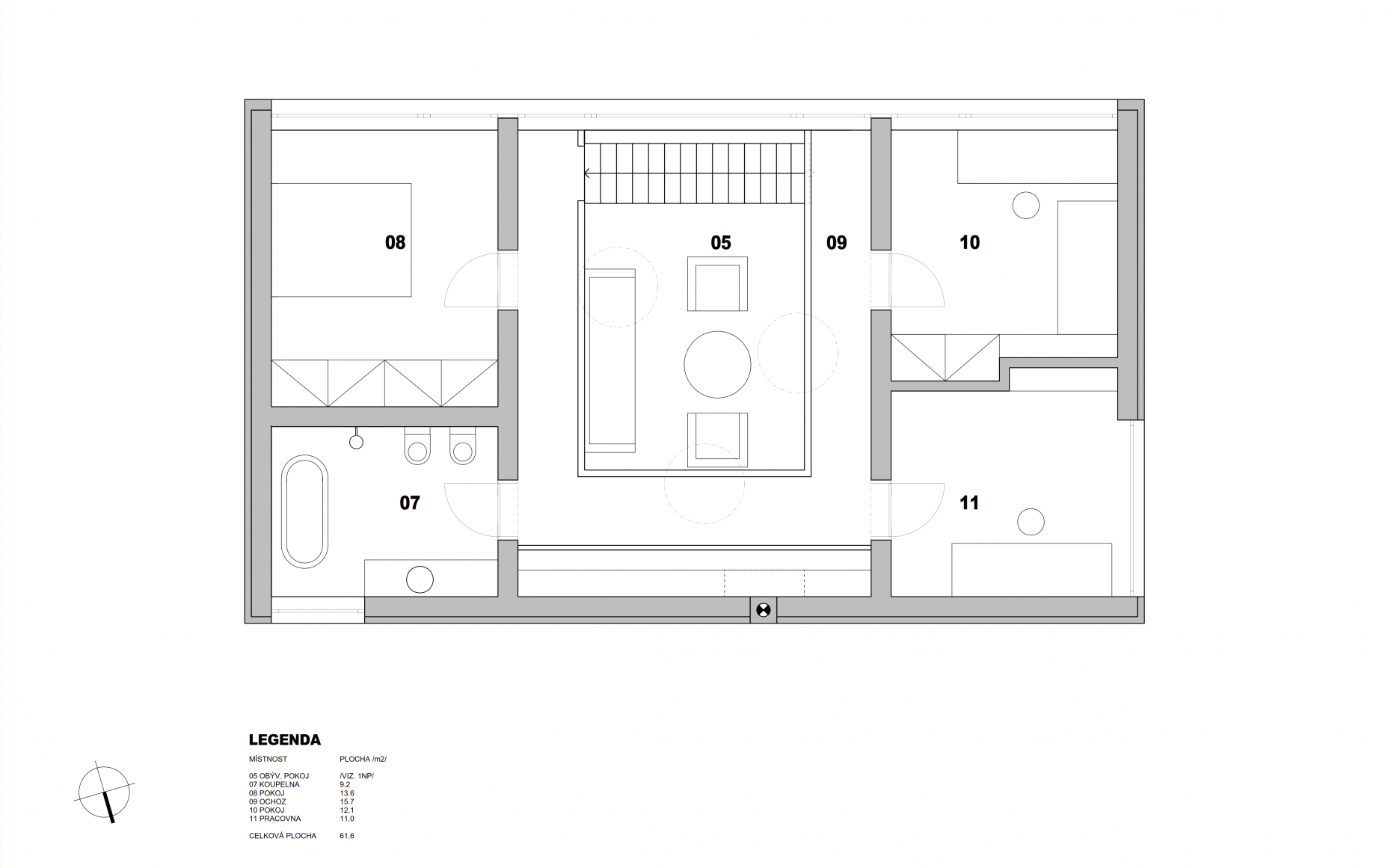 Dom je uzavretý smerom do verejného priestoru, avšak maximálne otvorený do záhrady s juhozápadnou orientáciou.