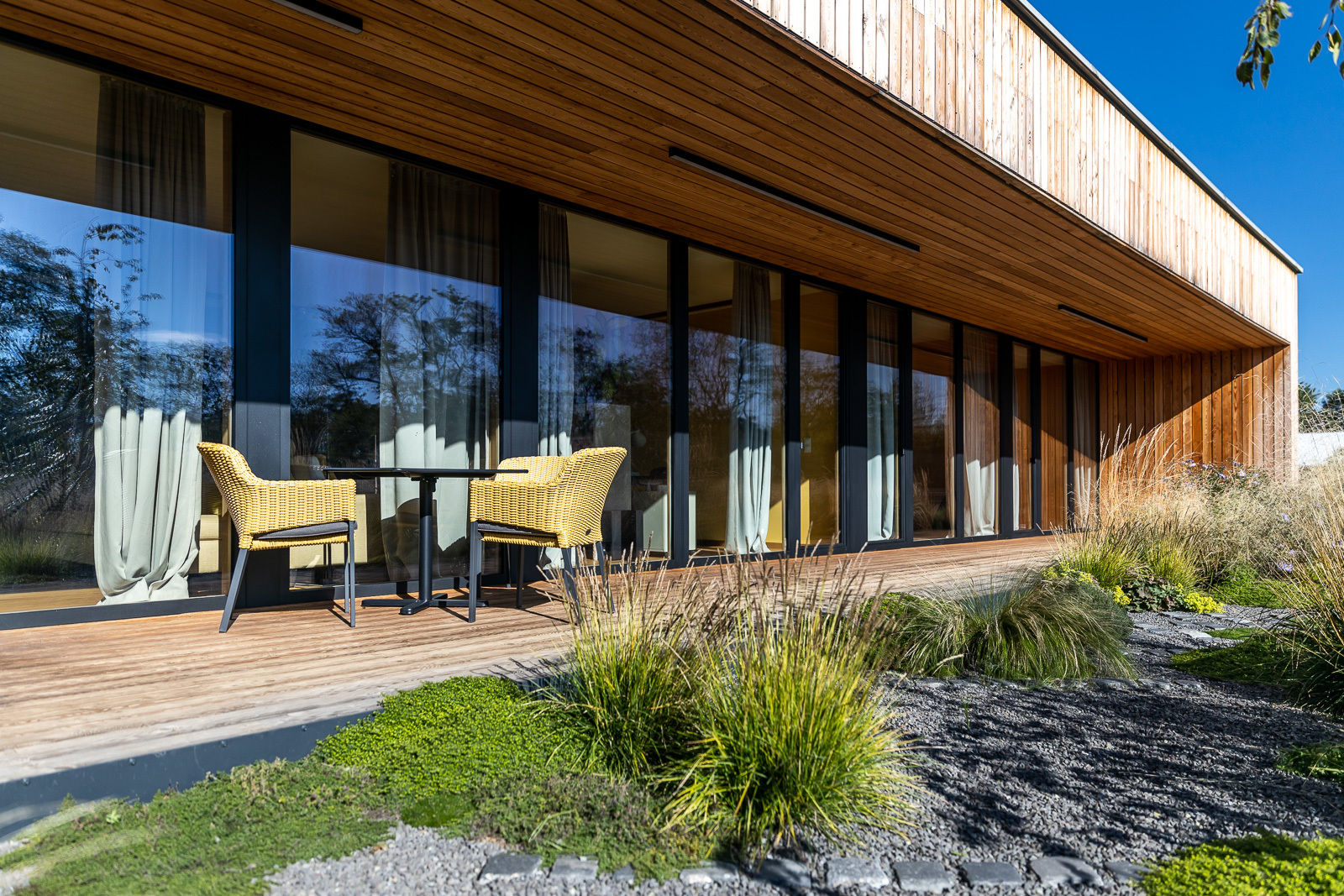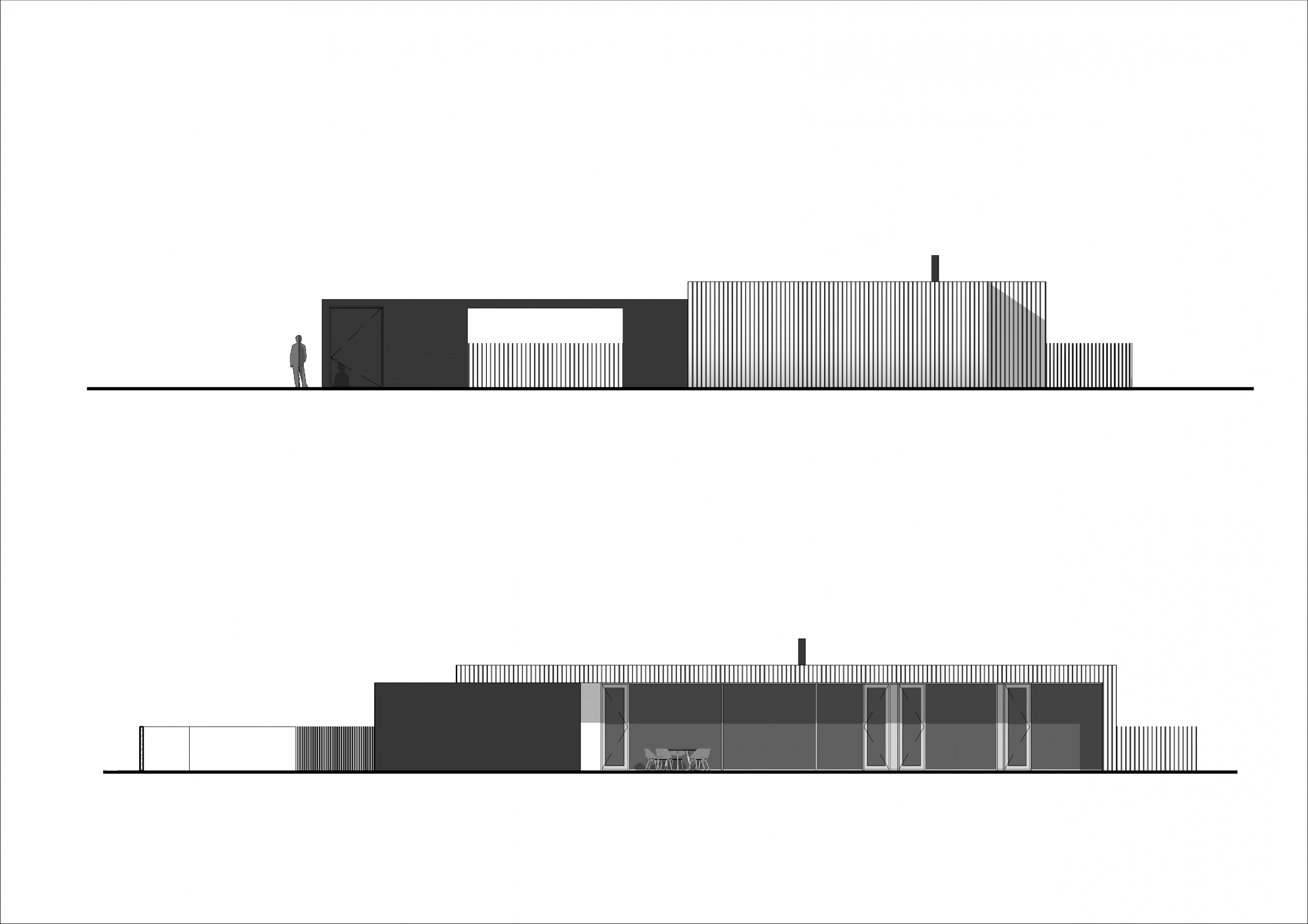 Drevodom z dielne bratislavského ateliéru Nextarchitekti. Uzavretý voči hospodárskym budovám priľahlého areálu chovu koní, otvorený k výhľadom do záhrady a rovinatej hospodárskej krajiny.