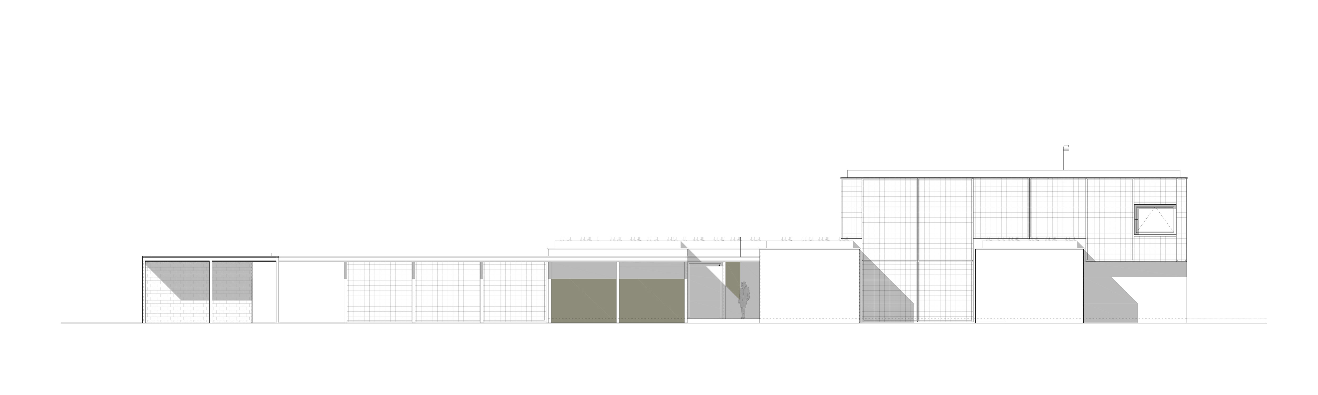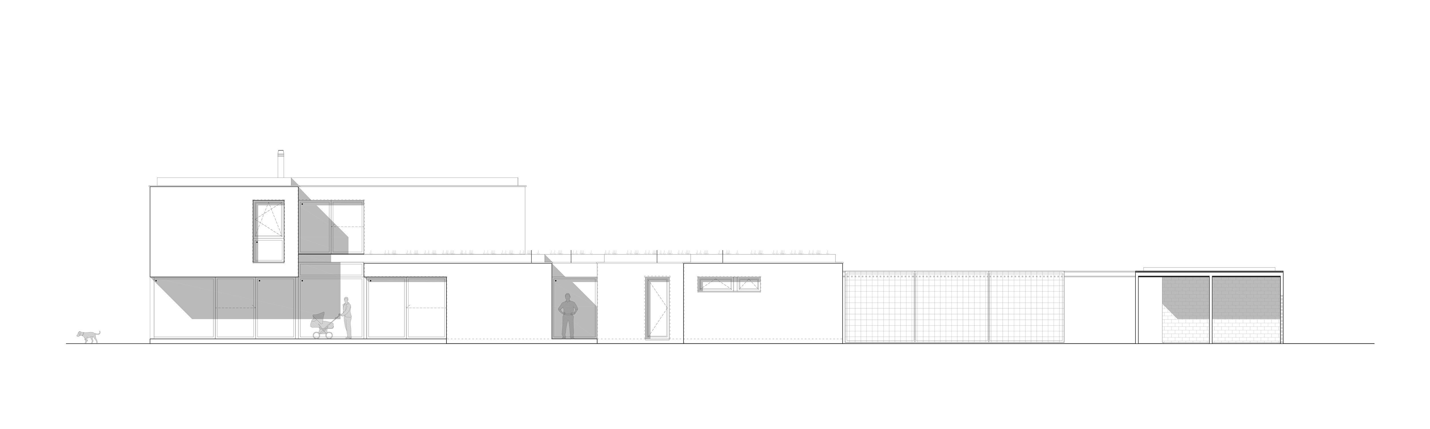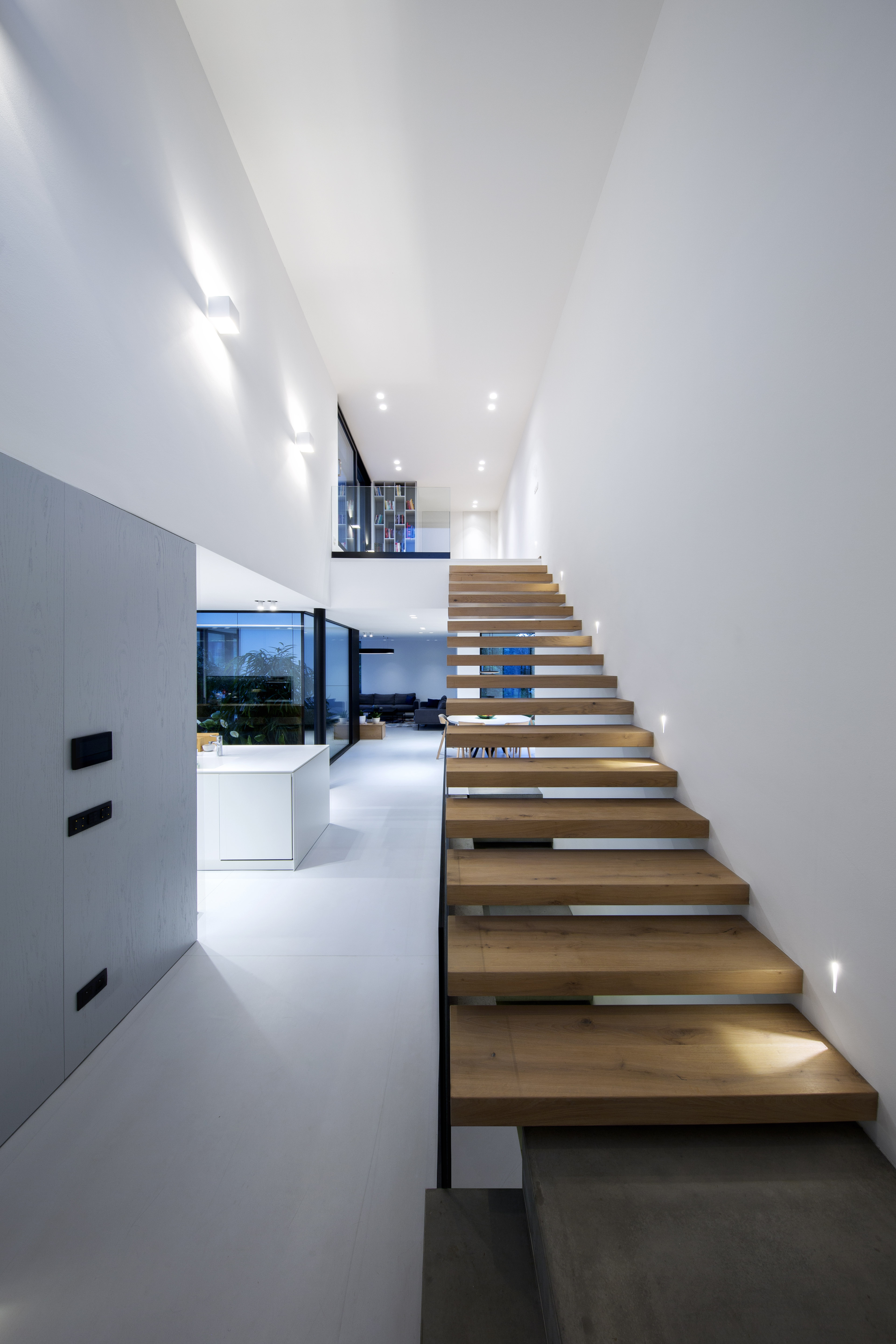 V zásade jednoduchý ortogonálny koncept je rafinovane rozčlenený na sústavu plynule prelínajúcich sa priestorov. Časti, ktoré potrebujú súkromie sú oddelené. Zvyšok je veľkoryso prepojený. Vzniká tak otvorená a zároveň artikulovaná krajina obytného prostredia.
