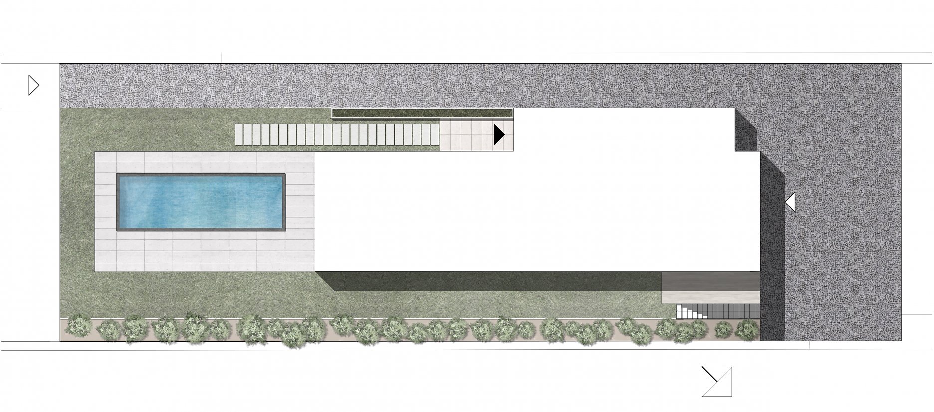 Dom v brnianskej časti Ivanovice využíva danosti obdĺžnikovej parcely orientovanej v smere severozápad - juhovýchod. Pozdĺžne usporiadaná obytná časť prízemného domu plynulo prechádza do prestrešenia pobytovej terasy. Lineárne usoriadanie priestorov sa premieta do dvojtraktovej dispozície domu. Architektonickú kompozíciu zdôrazňuje čistý špárorez veľkoformátového keramického obkladu použitého na fasáde.