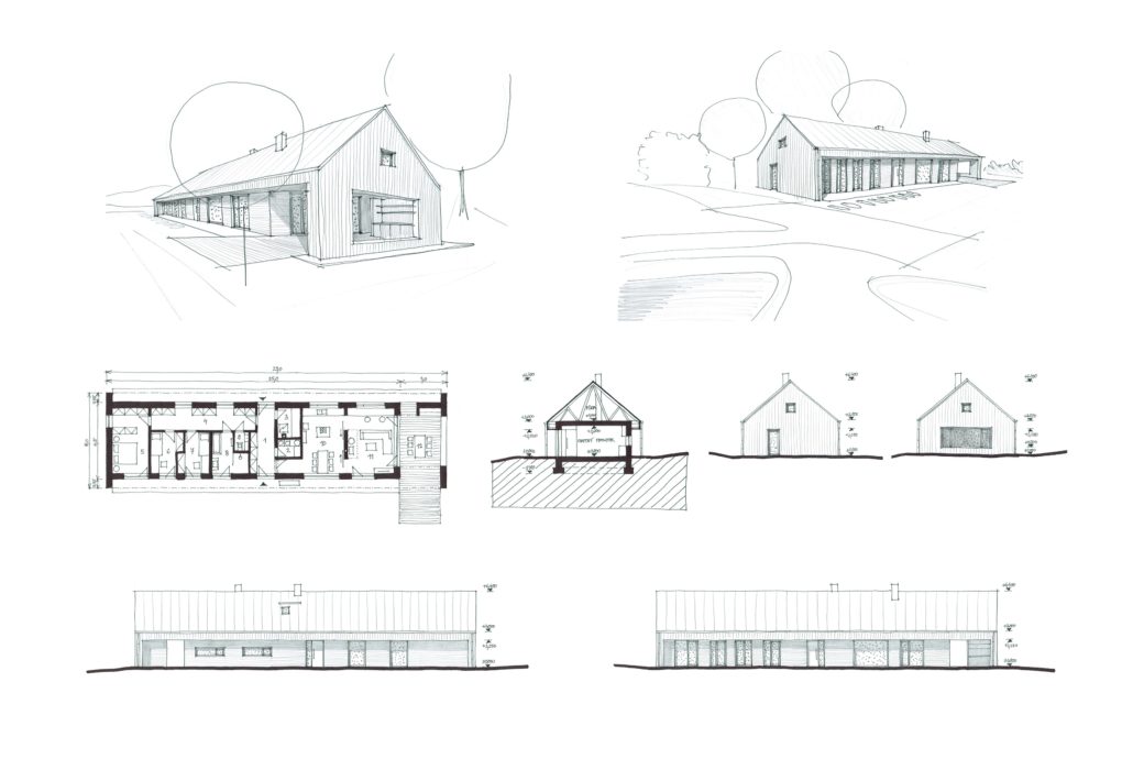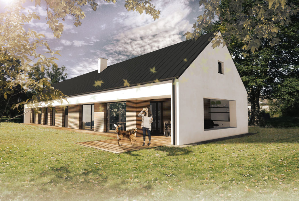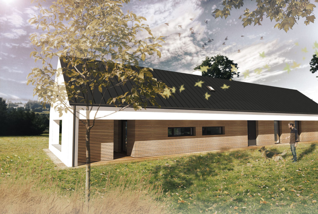 Náš velice dobrý kamarád nás oslovil s přáním navrhnout novostavbu rodinného domu, u kterého požadoval umístit všechny místnosti do jednoho podlaží. Díky rozlehlému pozemku na kraji obce Radňov v srdci Vysočiny jsme s místem neměli nejmenší problém. Oříškem byla ale orientace domu ke světovým stranám. Logicky jsme chtěli držet umístění dle stávajících objektů bývalého přilehlého statku, ale od toho jsme se nakonec odklonili. Důvod byl jasný. Obrovský pozemek totiž nabízí úchvatný výhled jižním a jihovýchodním směrem, který jsme chtěli klientovi dopřát. Základ domu Jezevčík byl tak položen.