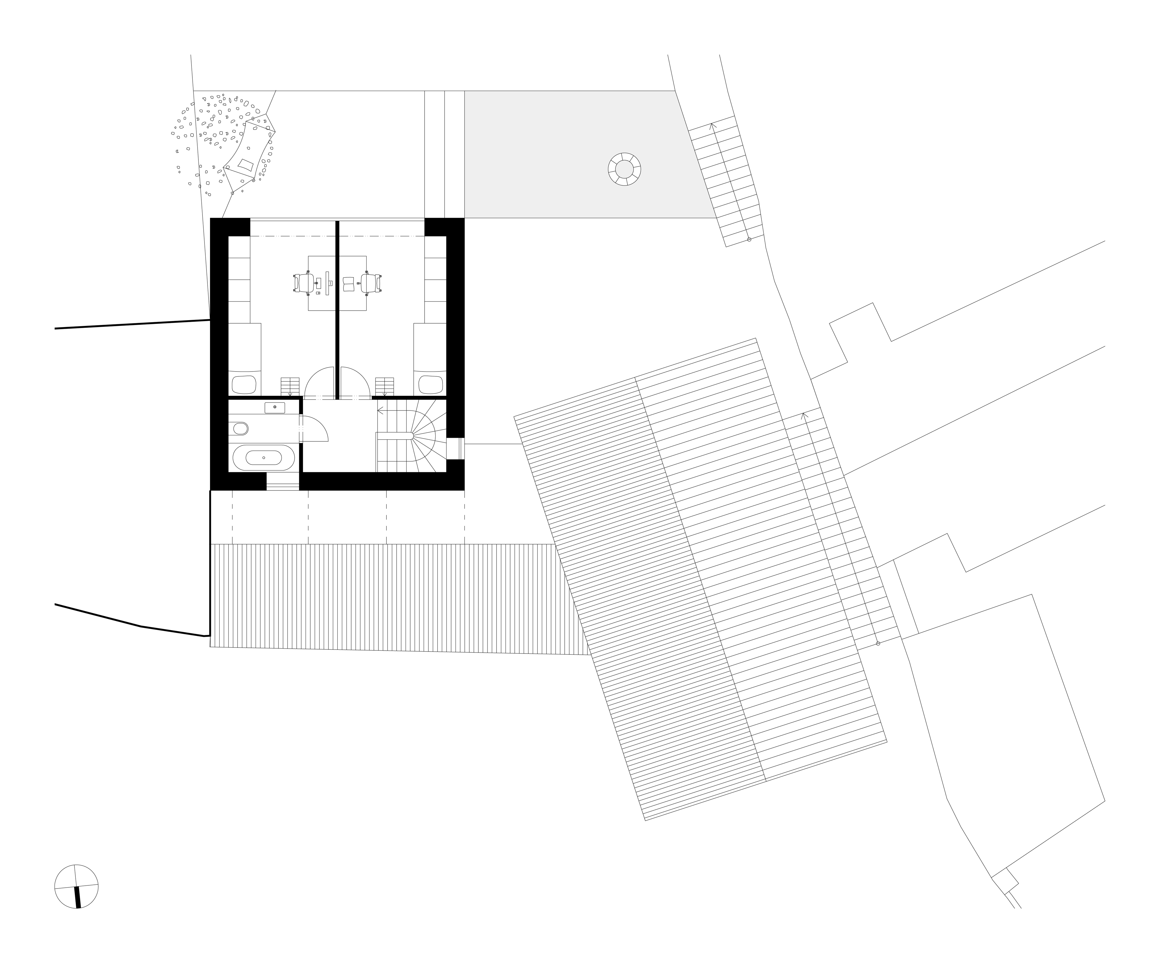 Doplnenie rastlej zástavby v svahovitom teréne pražskej mestskej časti Jinonice. Spletité historické a architektonické vrstvy územia, ktoré sa nachádza juhozápade od centra, zásadne ovplyvnili výsledný architektonický koncept. Súčasný tvorivý prístup kolektívu Ateliér 111 Architekti sa nebojí práce s kontextuálnym novotvarom, znova interpretuje dôležité priestory (rozšírená križovatka so studňou). Štrukturovaná zástavba aj napriek výraznému nárastu obostavaného objemu rešpektuje kontext sídelnej časti.
