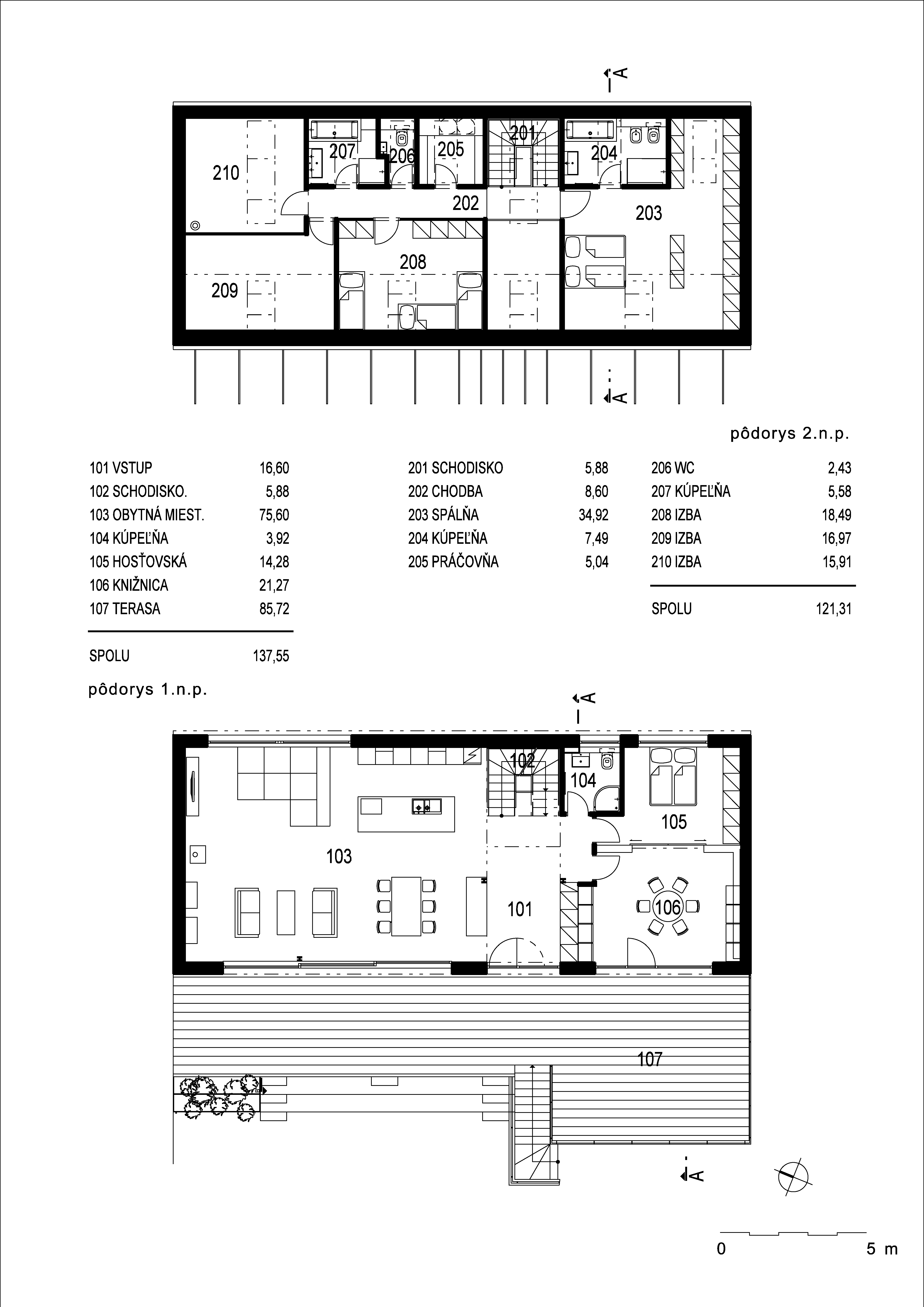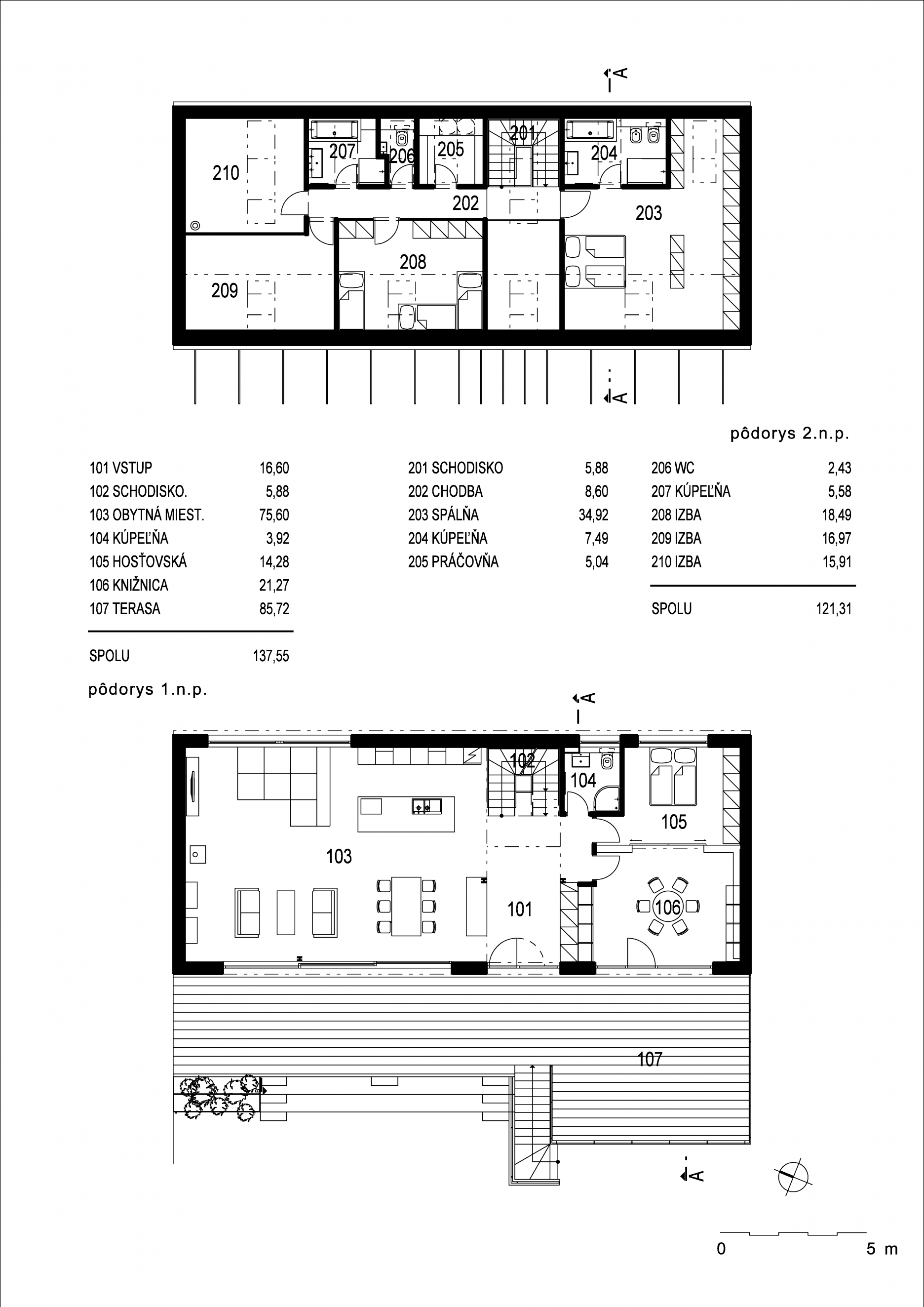 V nočnej časti v podkroví je situovaná spálňa rodičov s kúpeľňou a šatníkom, chodba , z ktorej sa vstupuje do technickej miestnosti, kúpeľne detí a troch detských izieb.