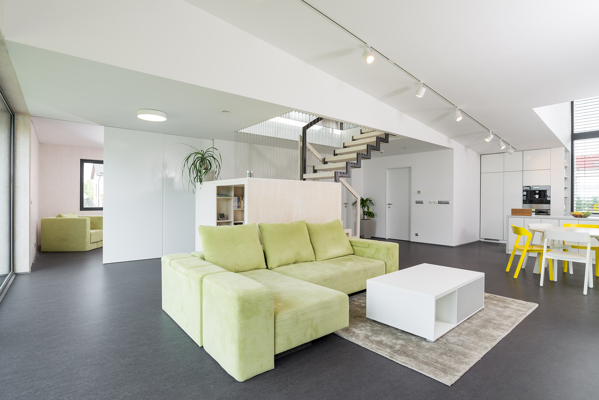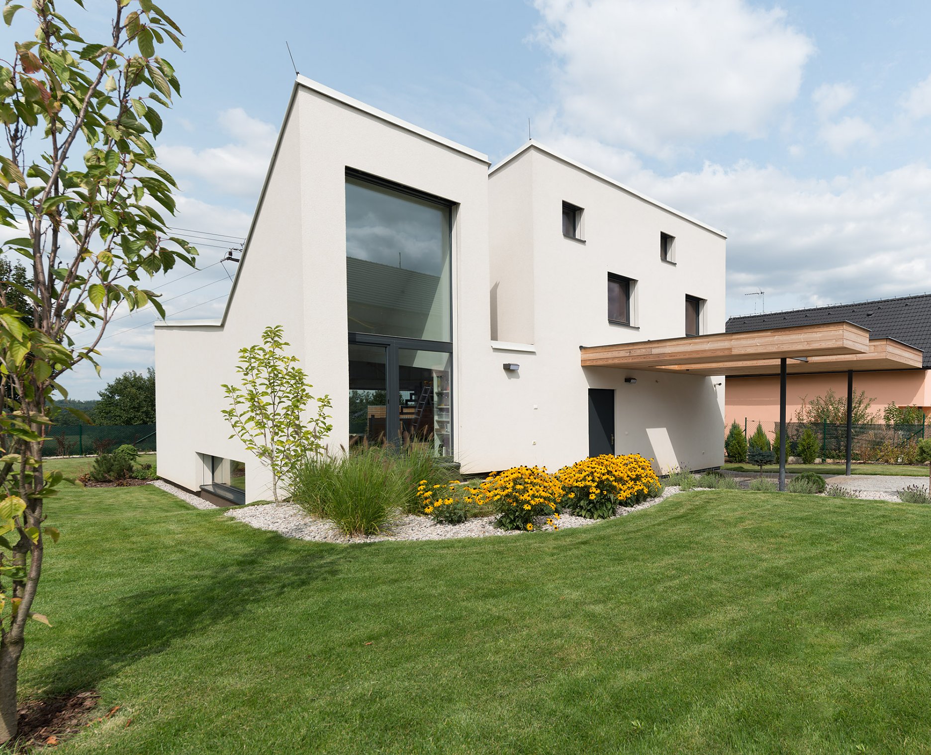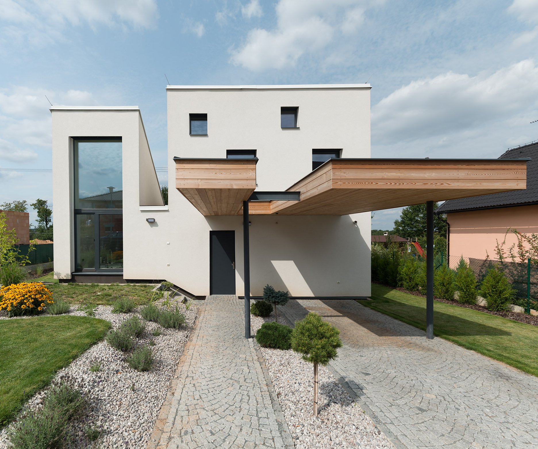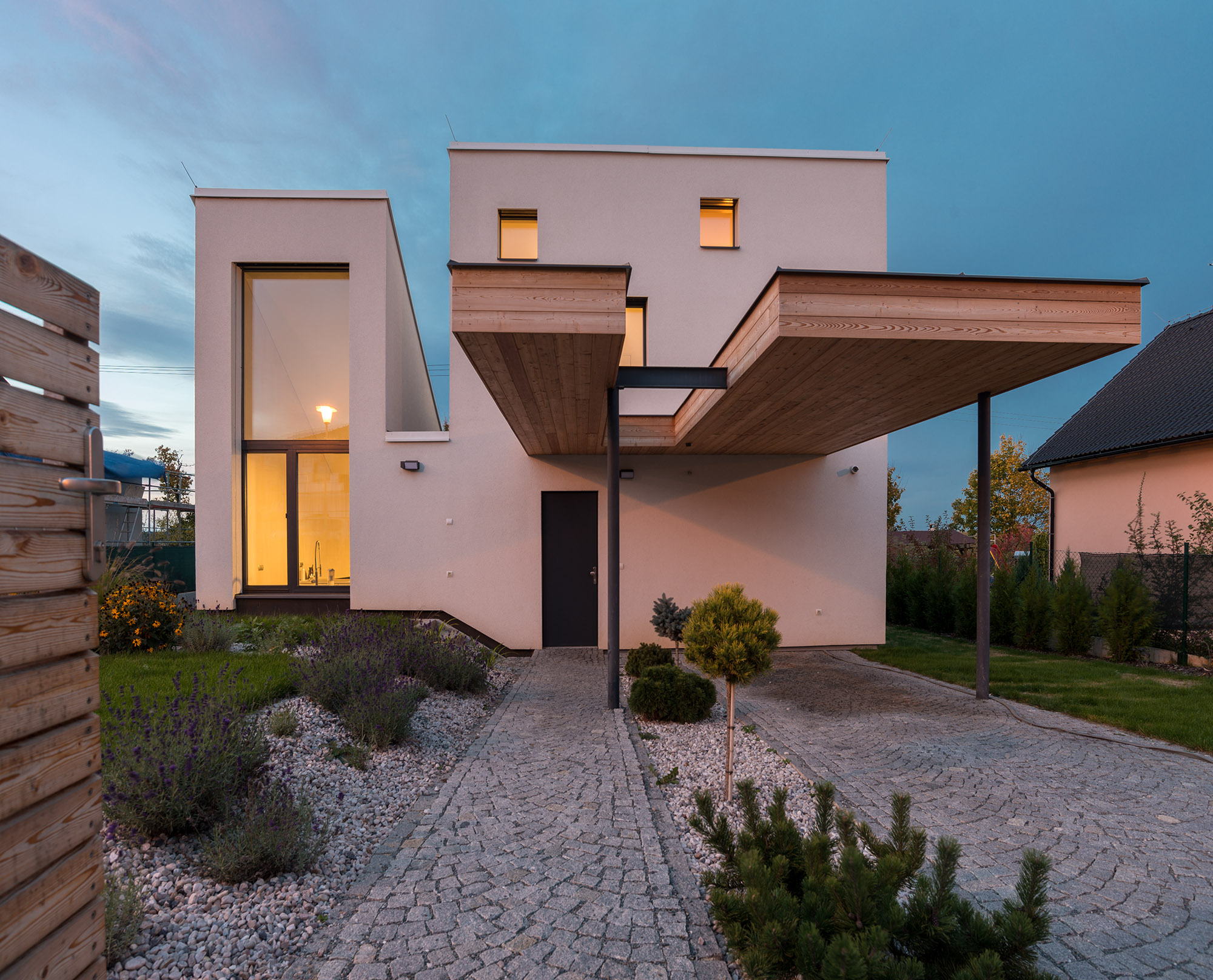 Architekti z ateliéru Progres navrhovali pre mladú rodinu. Stavba mala spĺňať prísne kritériá pasívneho štandardu a využiť jemne svahovitý terén. To všetko pri dostatočnom preslnení interiéru a otvorenej dispozícii. Nešlo o ľahké zadanie, najmä s prihliadnutím na nepriaznivú orientáciu pozemku voči svetovým stranám (uličná fasáda orientovaná na juh).
