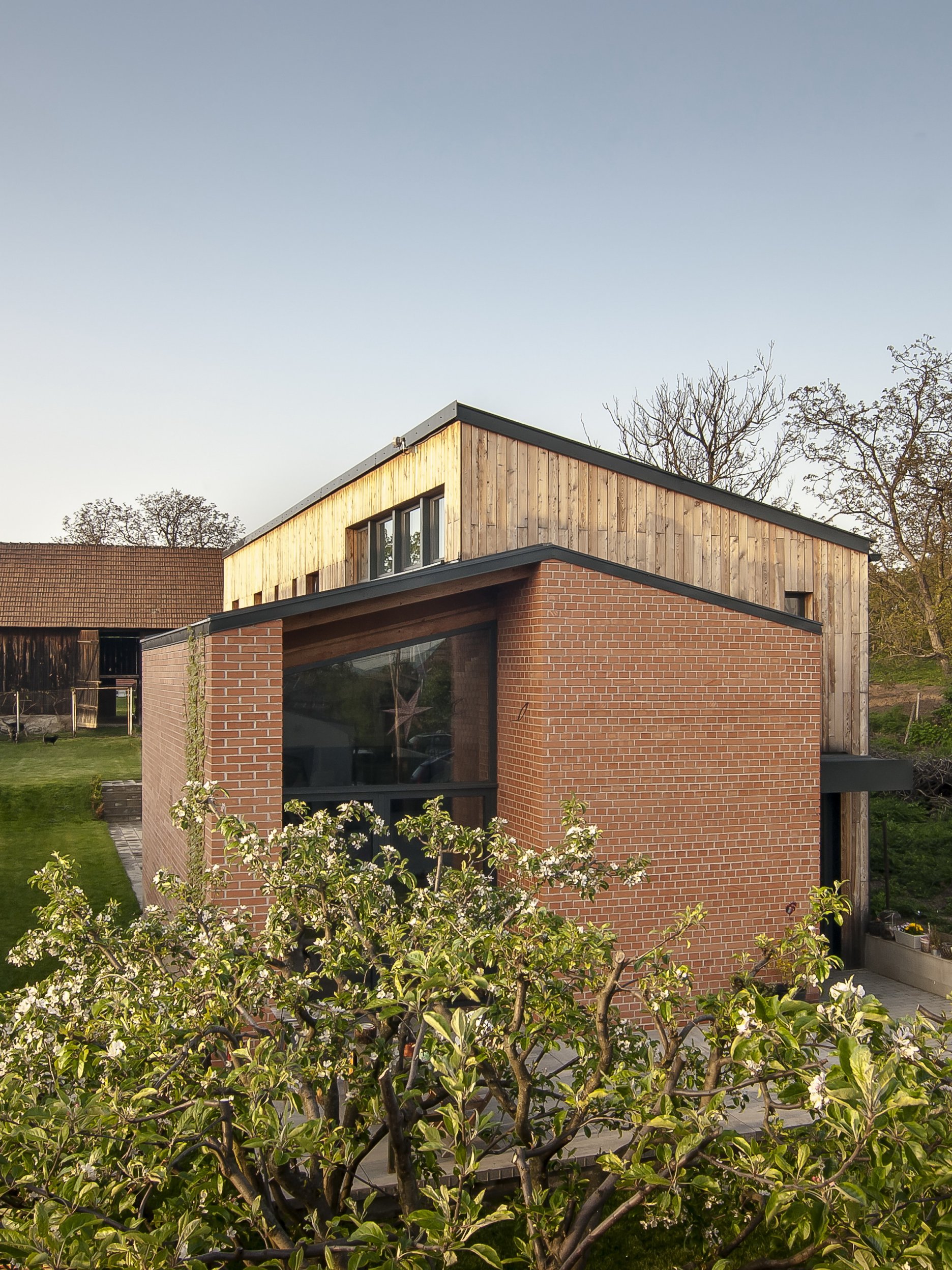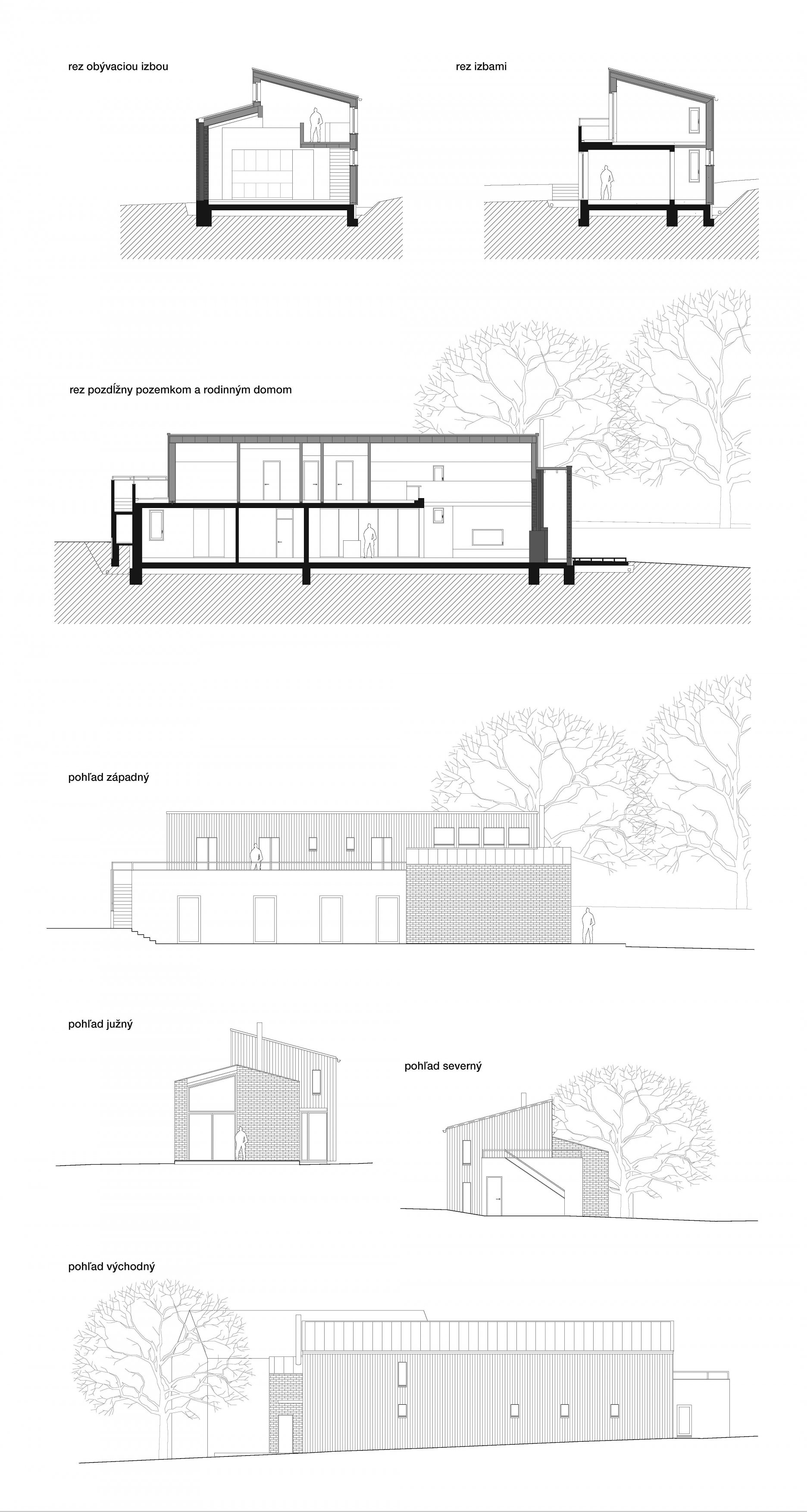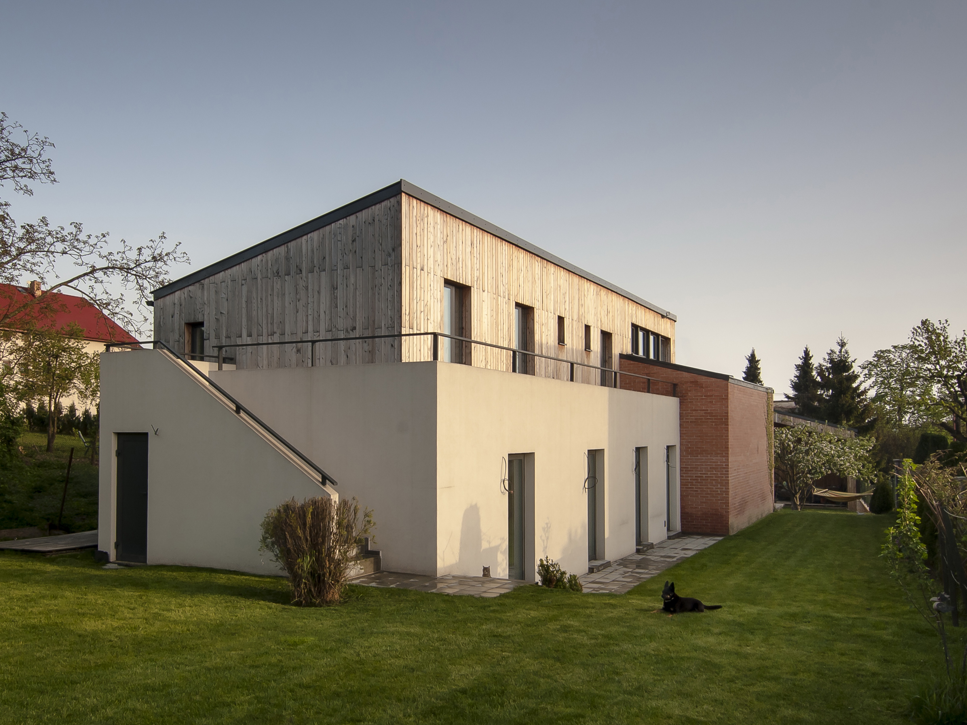 Stavba domu by sa nepodarila bez nadšenia investora. Inšpiráciou nám bola stodola v zadnej časti pozemku a urbanistická štruktúra dlhých domov umiestňovaných v rozličných polohách pozemkov. To, že sme použili 3 rozličné konštrukčné typy bol z jednej strany mladícky experiment s konštrukciami a materiálmi, ale hlavne nám išlo o pravdivosť fasád. Hmoty vznikli z dispozičného rozmiestnenia.