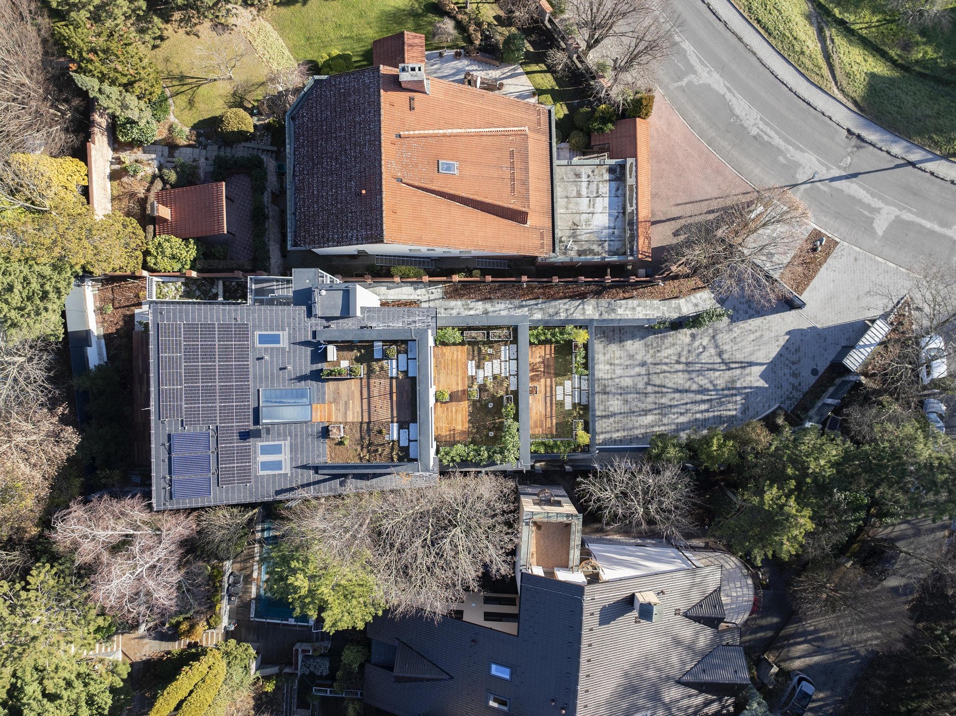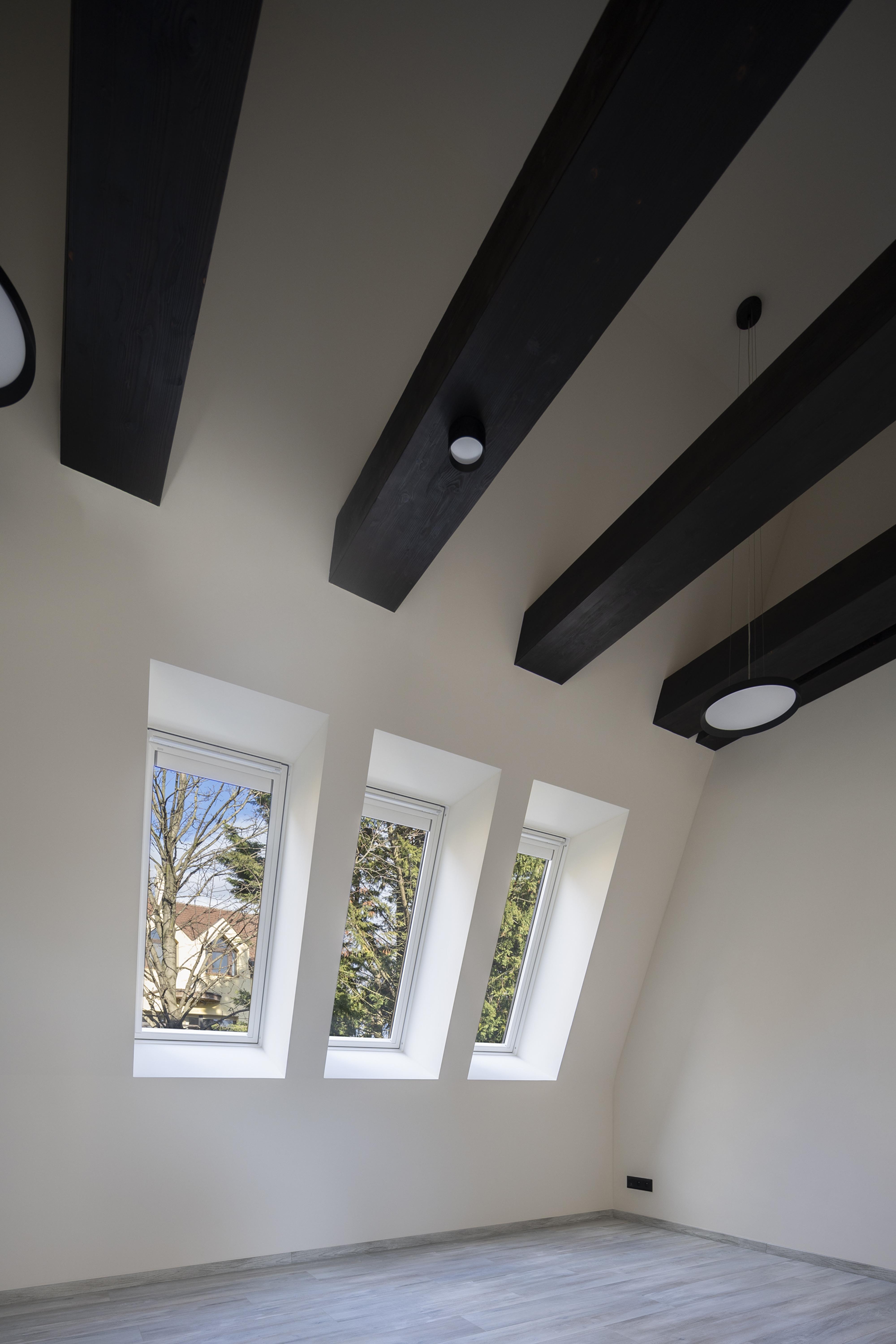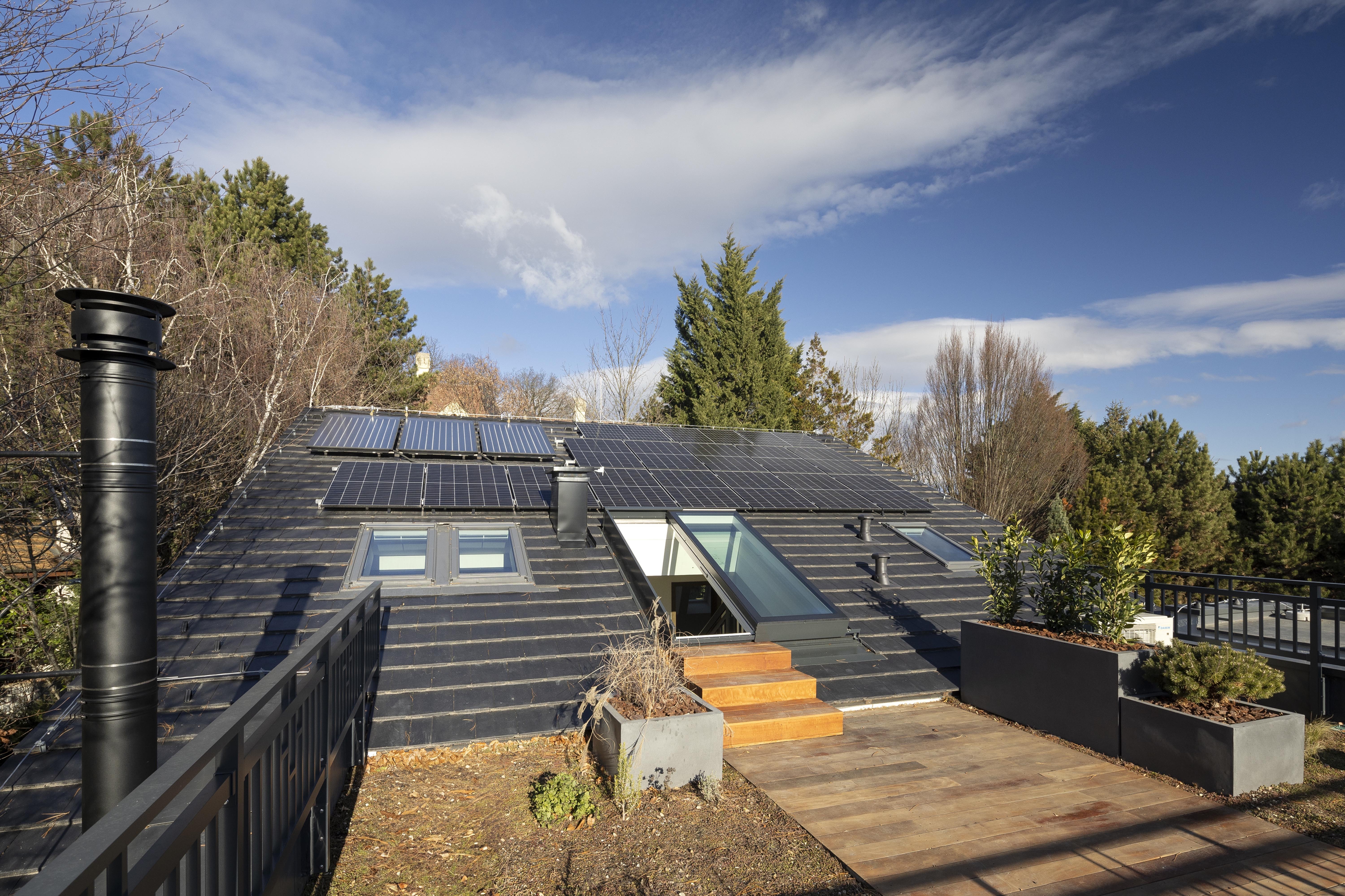 Obnova cielila na zlepšenie energetickej bilanci objektu. Ideálna južná orientácia strechy umožnila osadenie fotovoltaiky a solárnych panelov na podporu vykurovania a ohrevu TÚV. Fasáda aj podkrovie sú nadštandardne zateplené proti prehrievaniu. Súčasťou riešenia sú trojkomorové drevohliníkové okná a presklené steny.