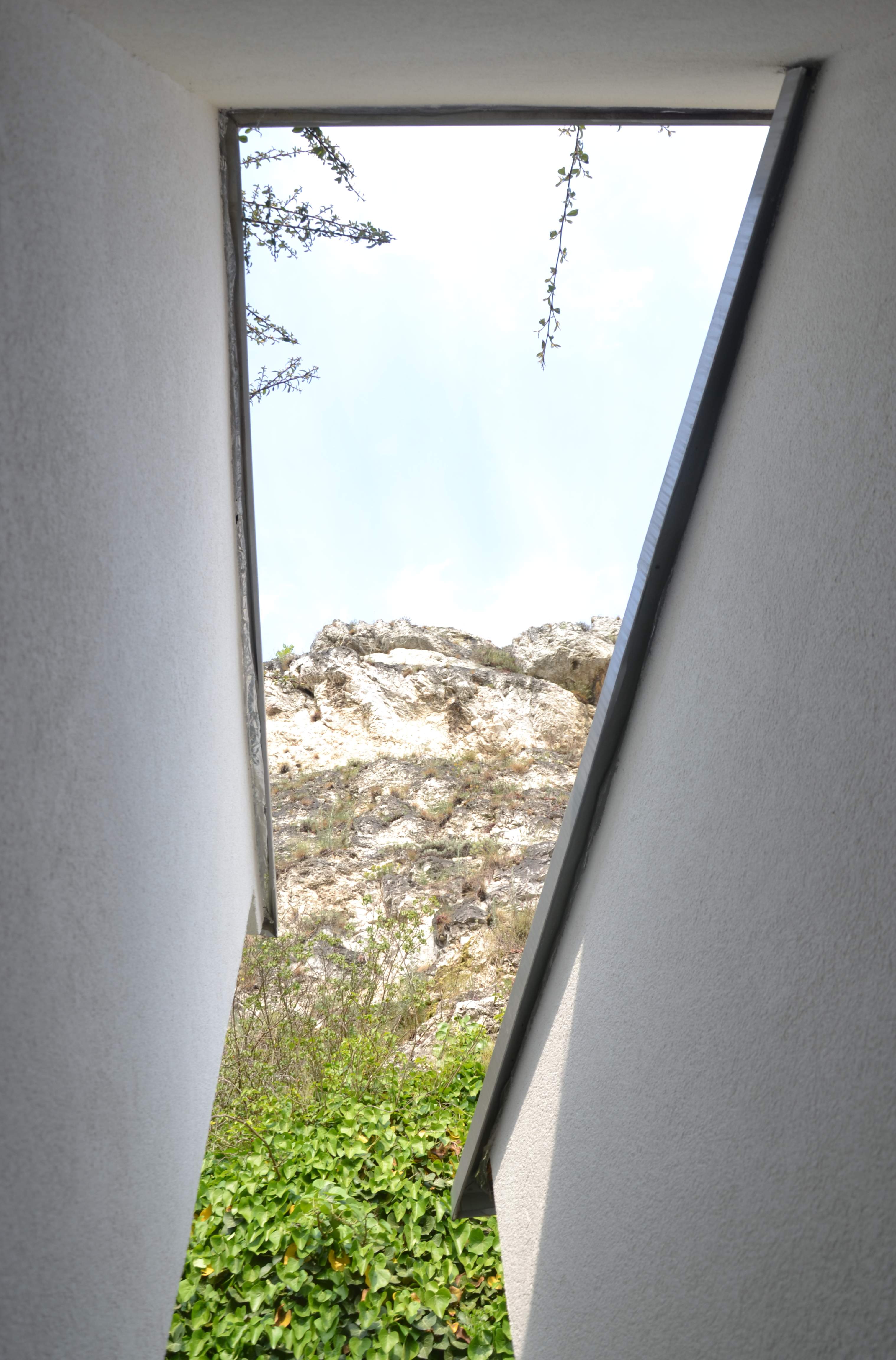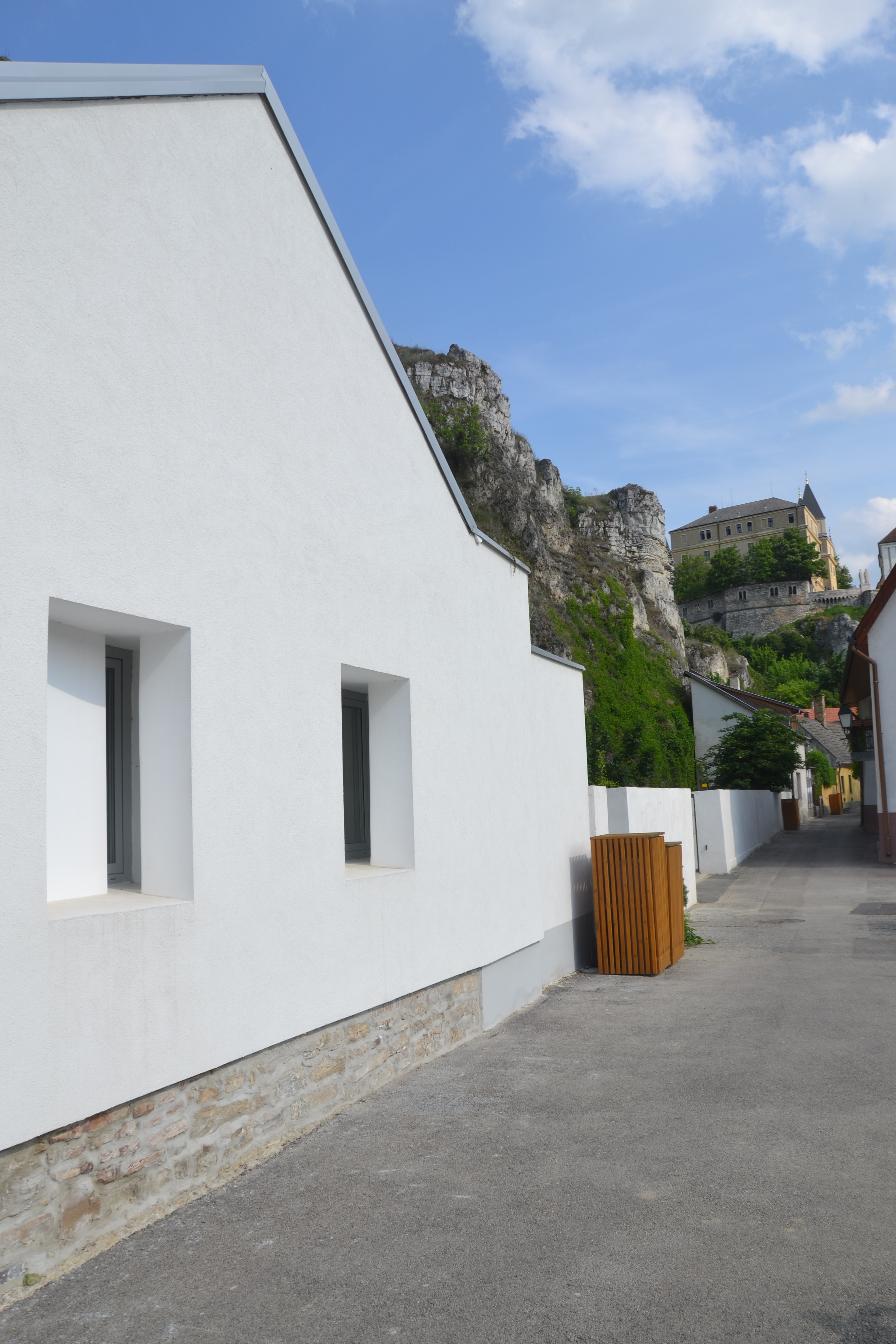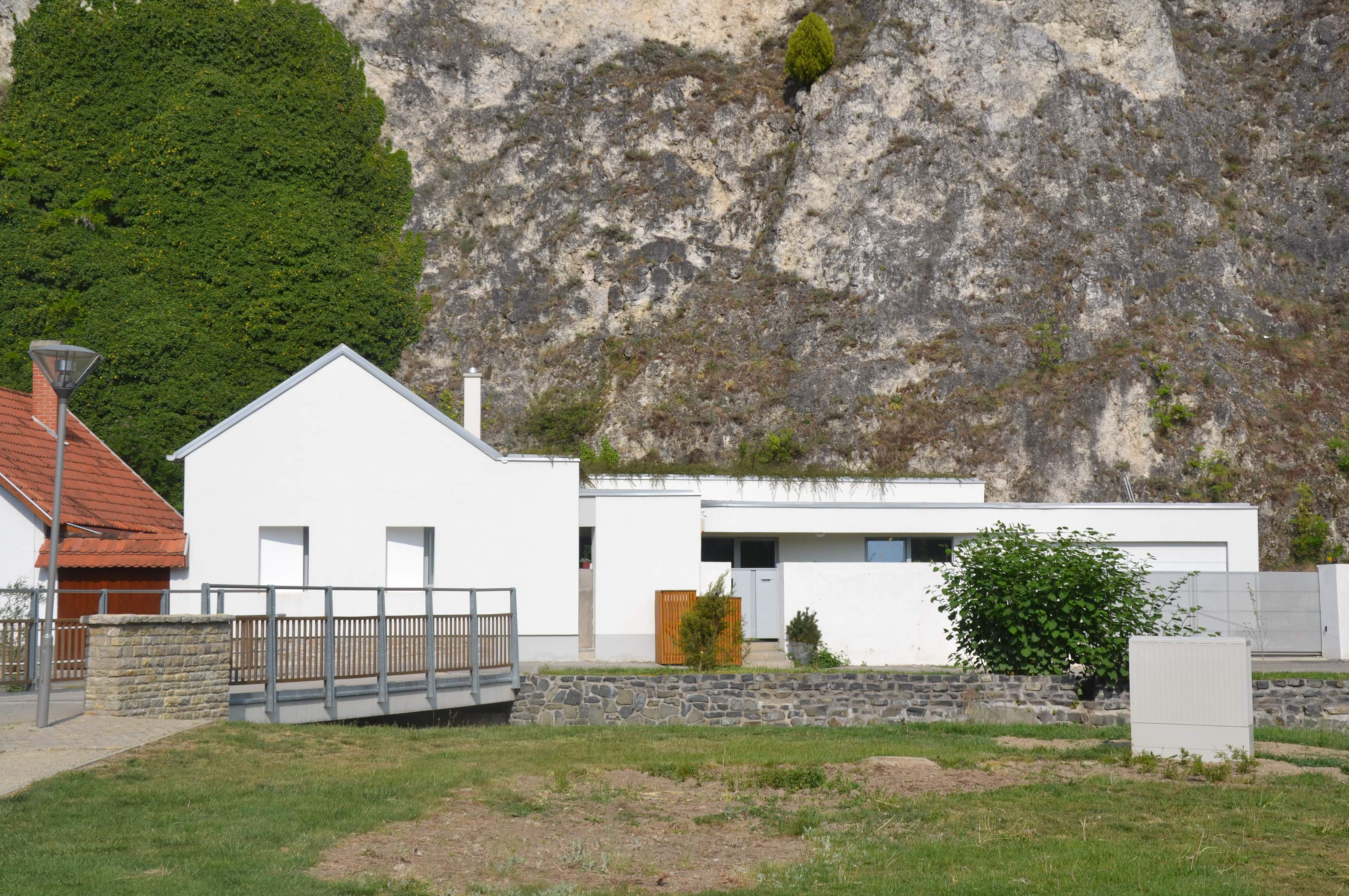 V historickej časti budovy so štítom a šikmou strechou, ktorá je kolmá na ulicu, sa nachádza obytná časť s kuchyňou, jedálenským kútom a spálňou s príslušenstvom. Kolmo na túto časť je pristavaný nový trakt s detskou izbou a príslušenstvom, takisto aj dvojgaráž s plochou strechou. Medzi domom a skalou vznikli terasy, čo umožnilo prirodzené presvetlenie miestností orientovaných týmto smerom.