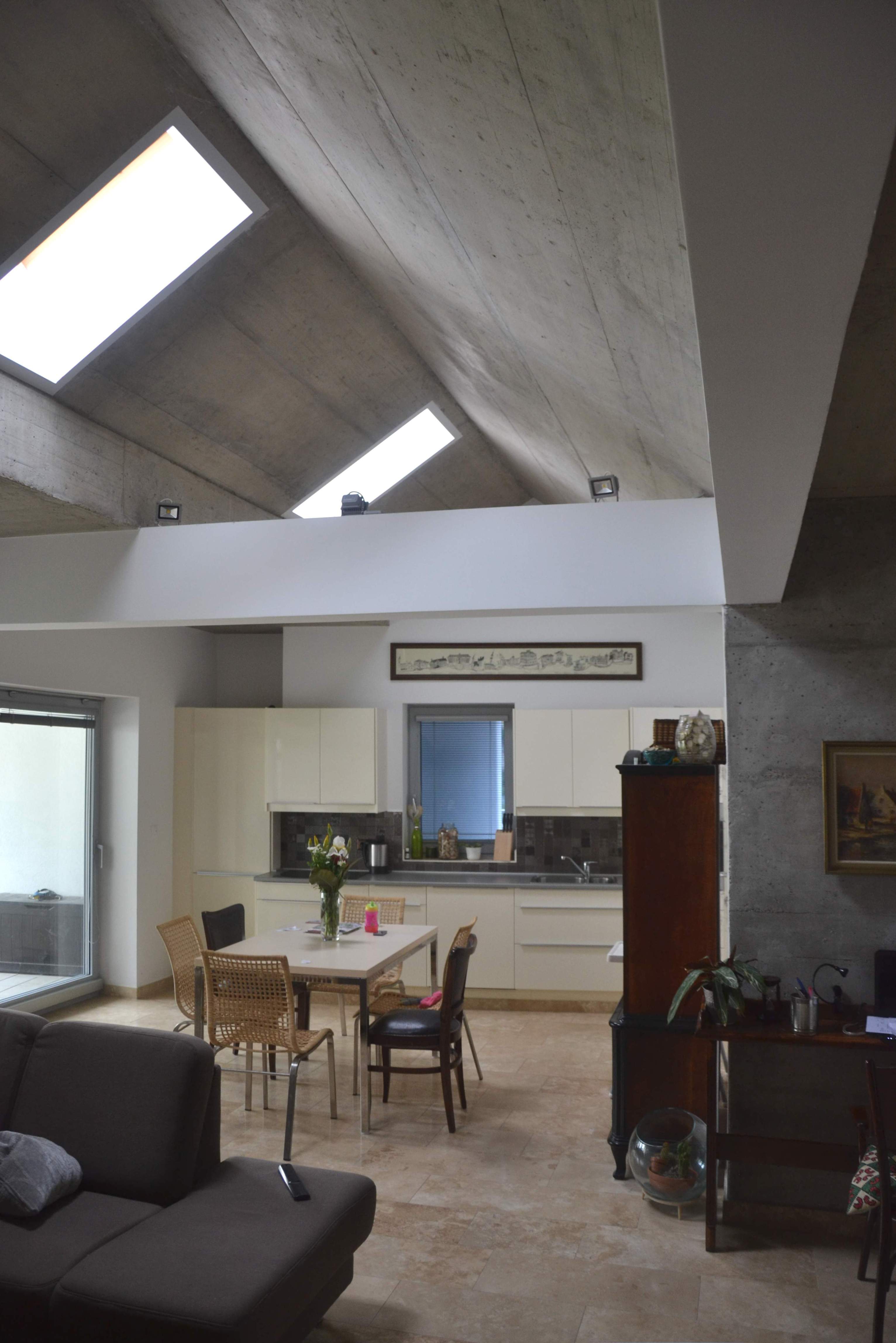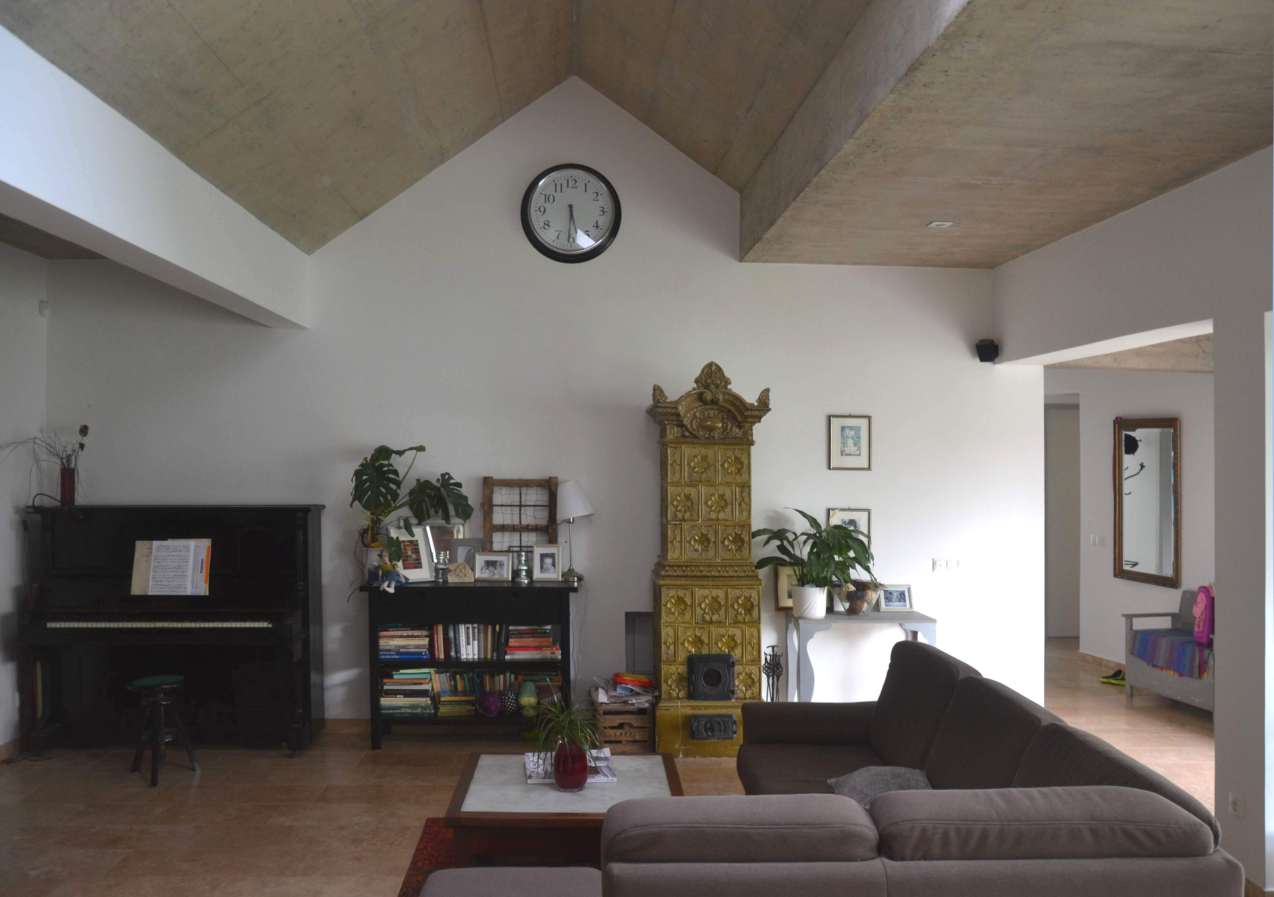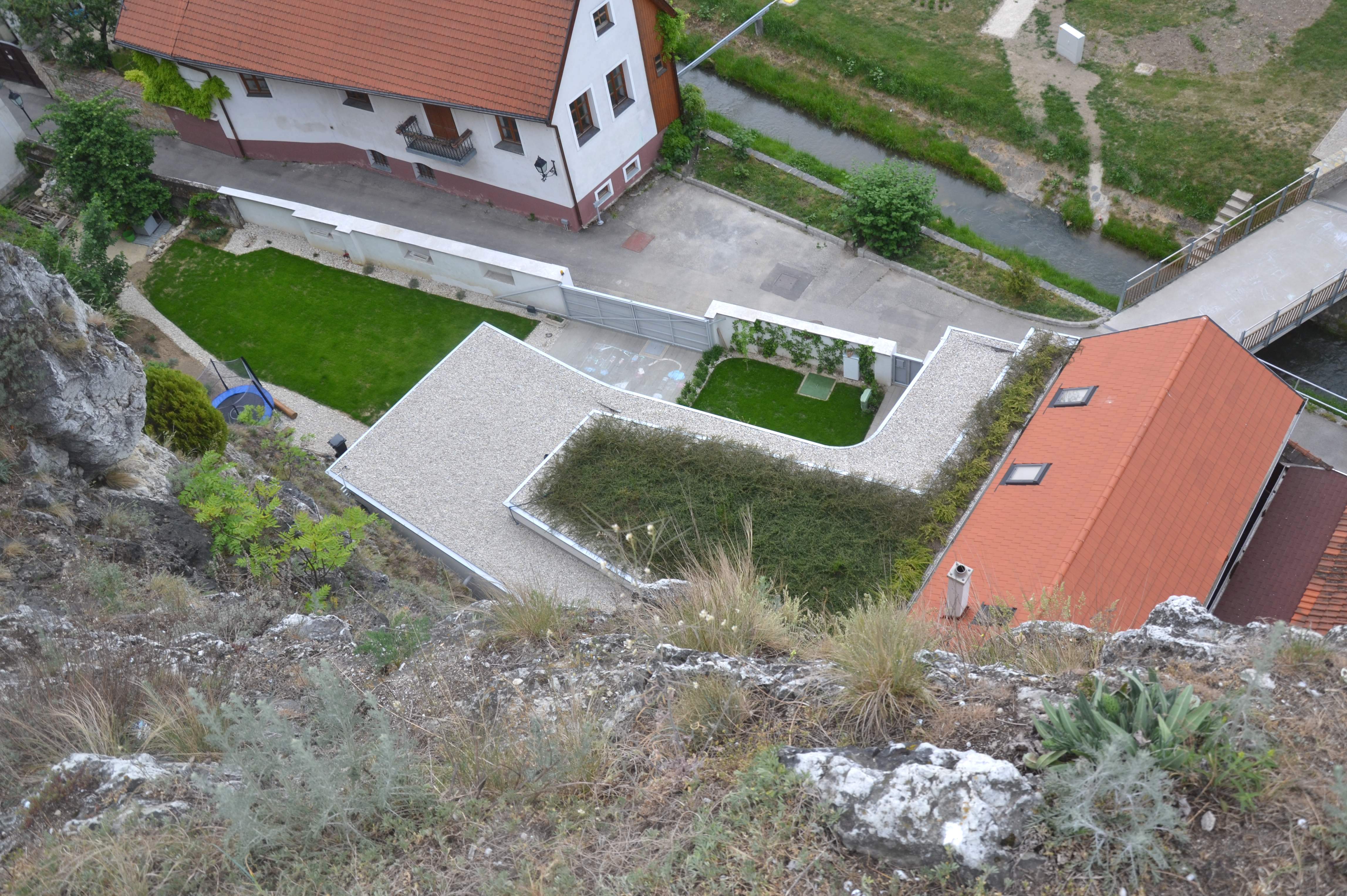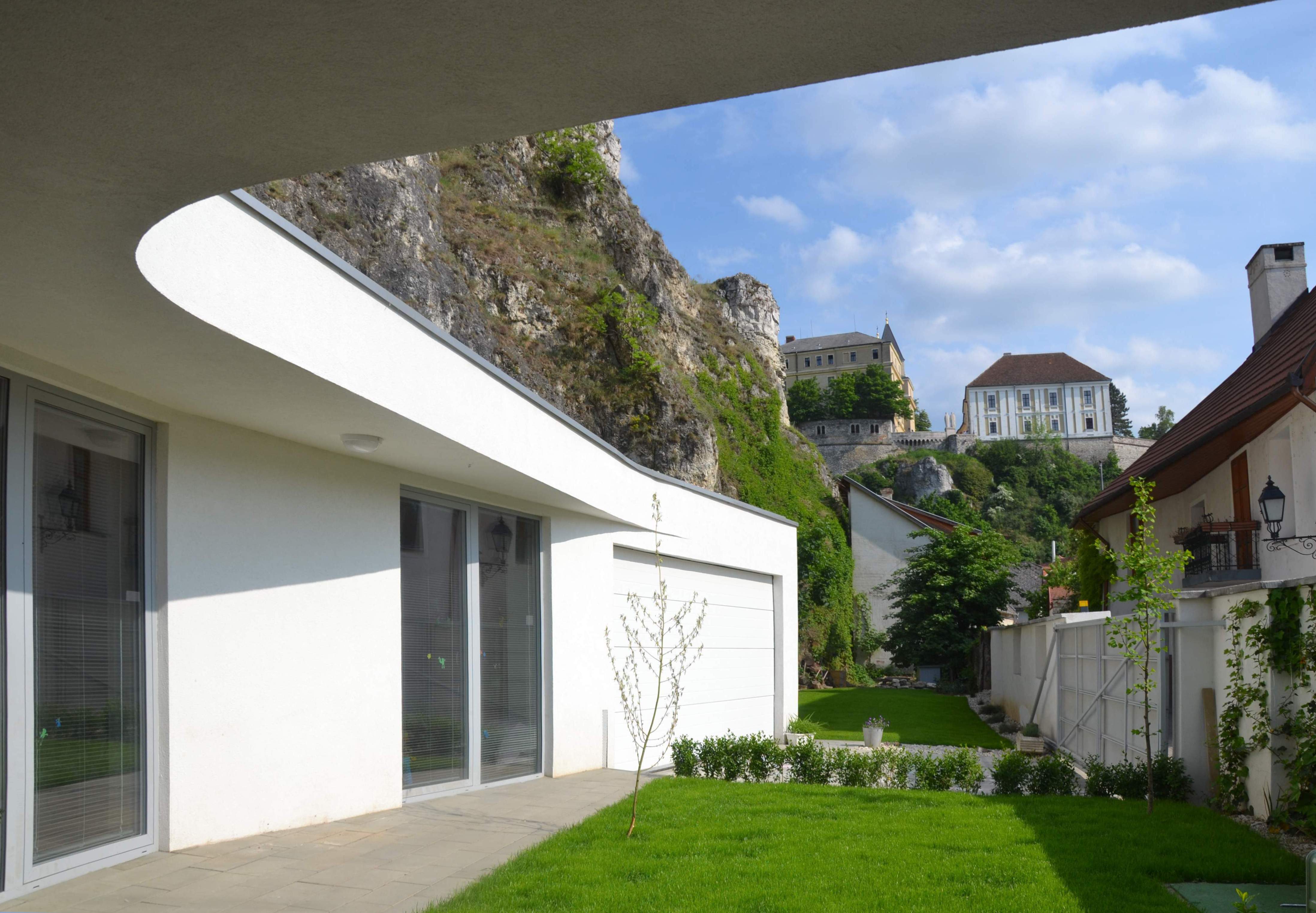 Majitelia domu kúpili pozemok v najkrajšej časti mesta - v historickom centre na úpätí kopca sv. Benedikta s výhľadom na hrad. Túžili po modernom prízemnom dome s betónovými plochami v interiéri, presklenými časťami na fasáde a po veľkej terase, ktorá by bola v lete chránená proti slnku.