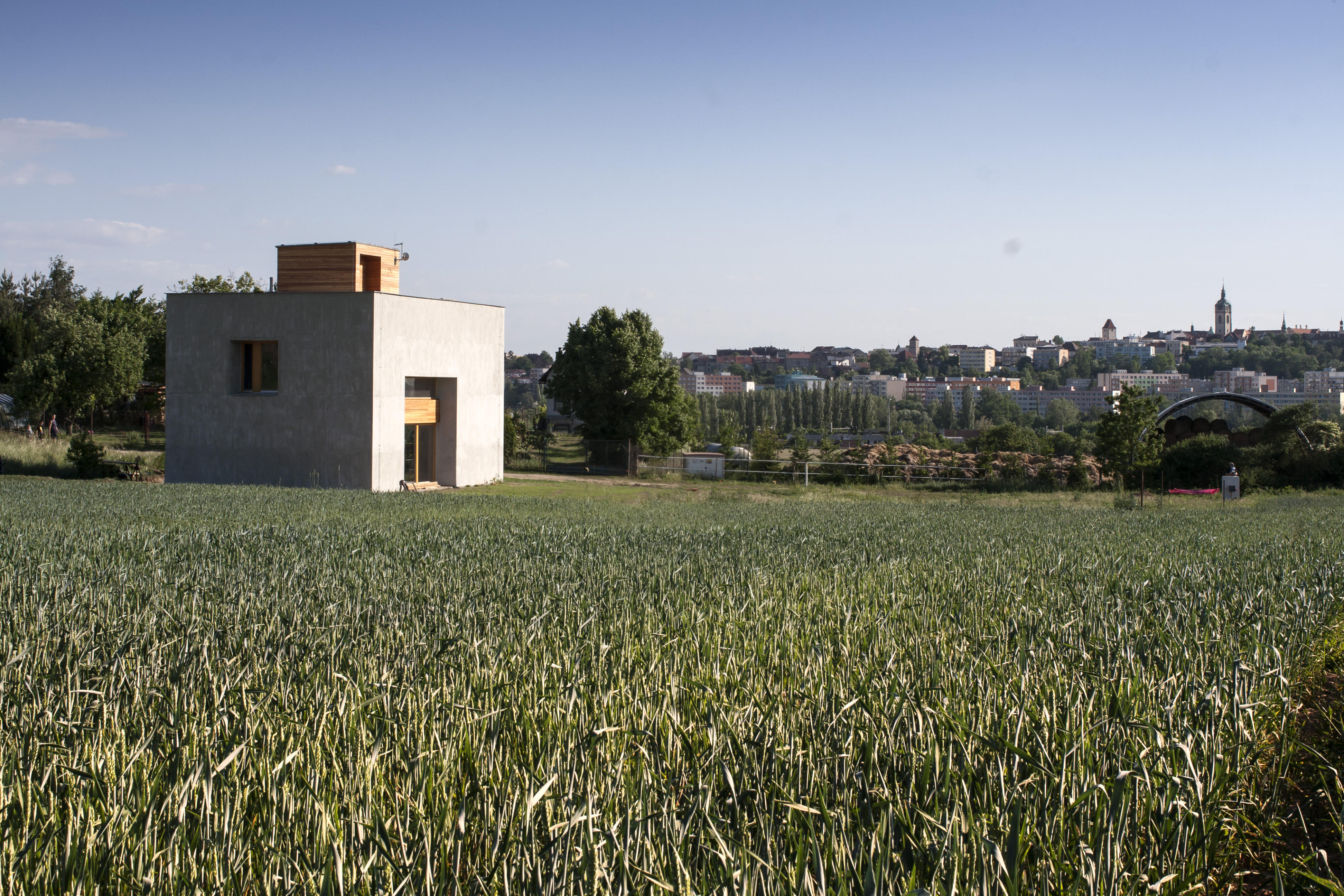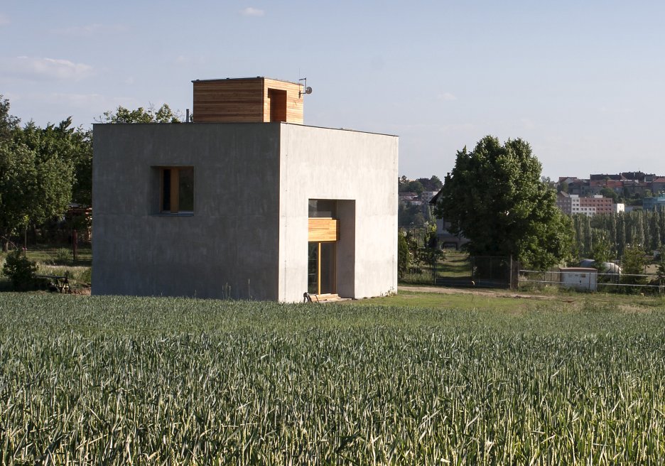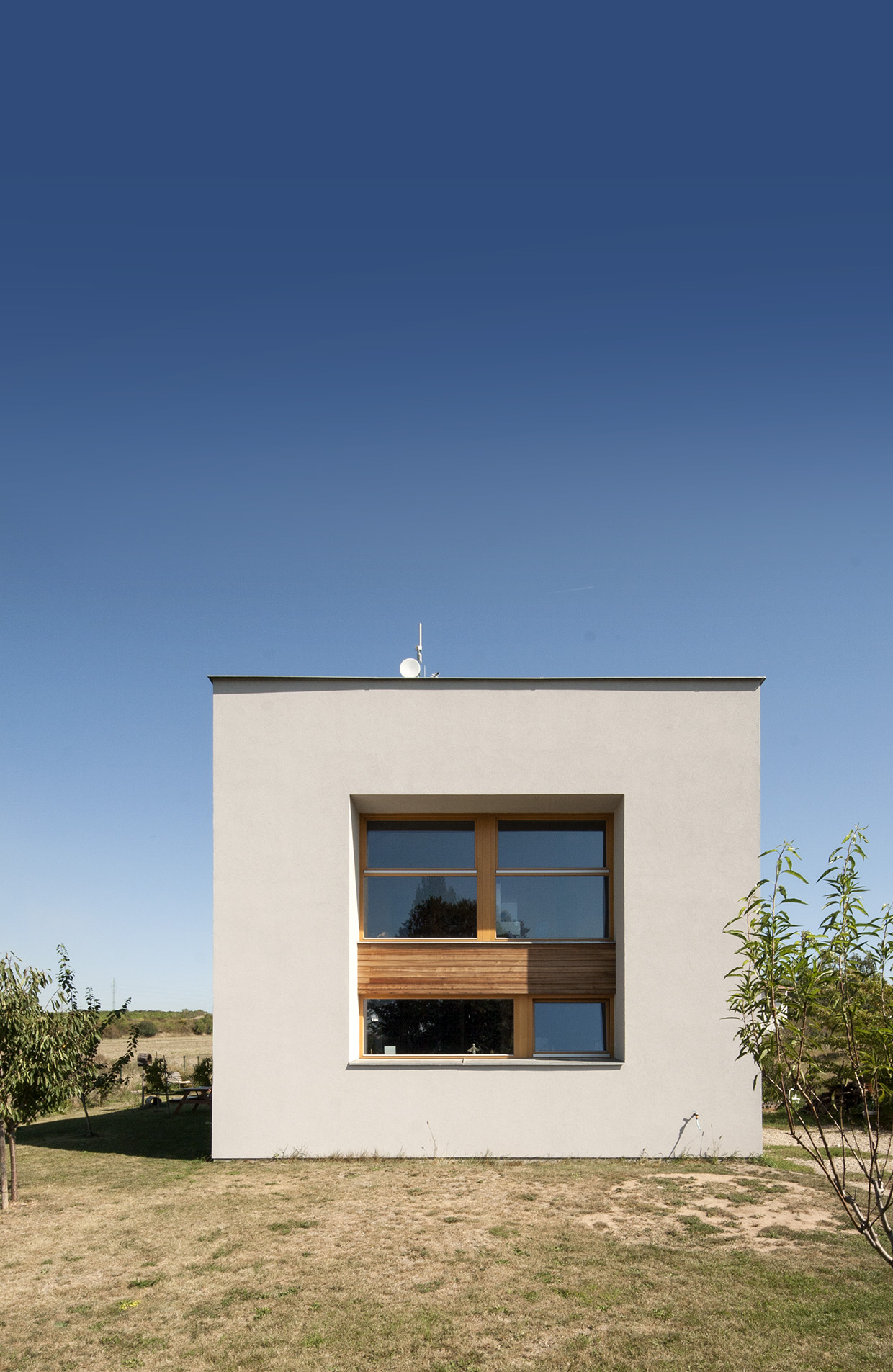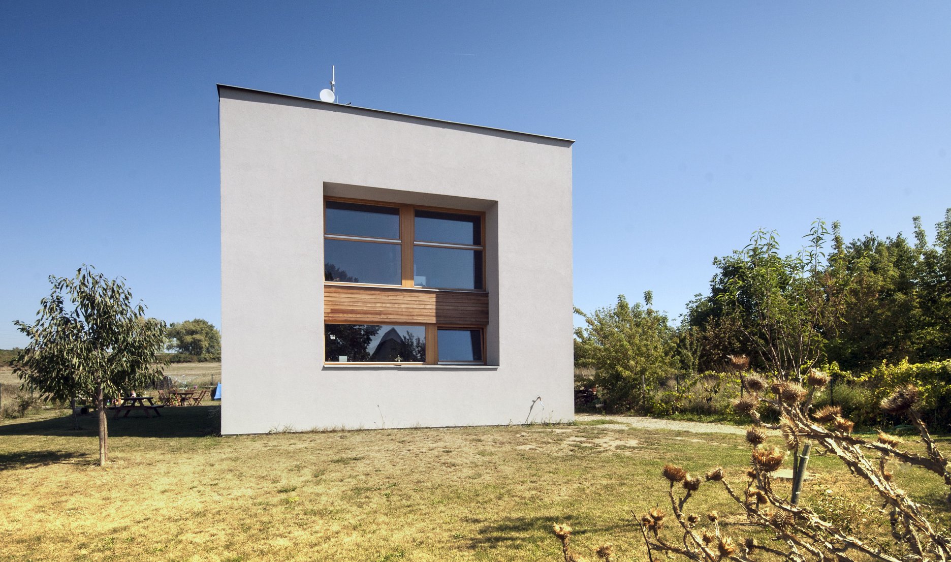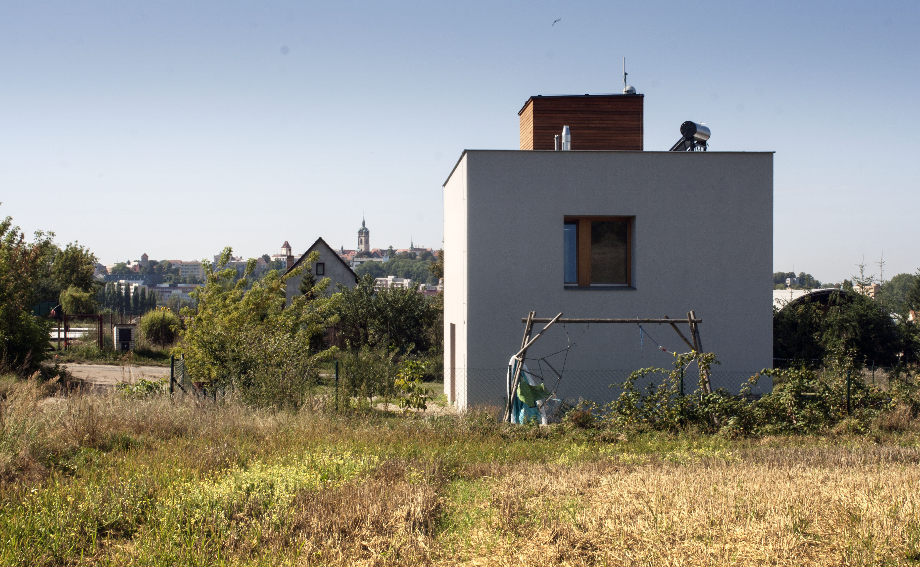 Umiestnenie domu v strede neveľkej parcely na okraji mesta Mělník akcentuje prepojenie domu s výhľadmi do krajiny. V každej zo štyroch fasád je zapustený jeden otvor rámujúci špecifický, pre každú stranu jedinečný výhľad - na vinicu, panorámu mesta, barokovú kaplnku a siluetu krajiny. Veľkosť a proporcia okenných otvorov je určená predovšetkým vzťahom medzi interiérom a charakterom jednotlivých výhľadov.