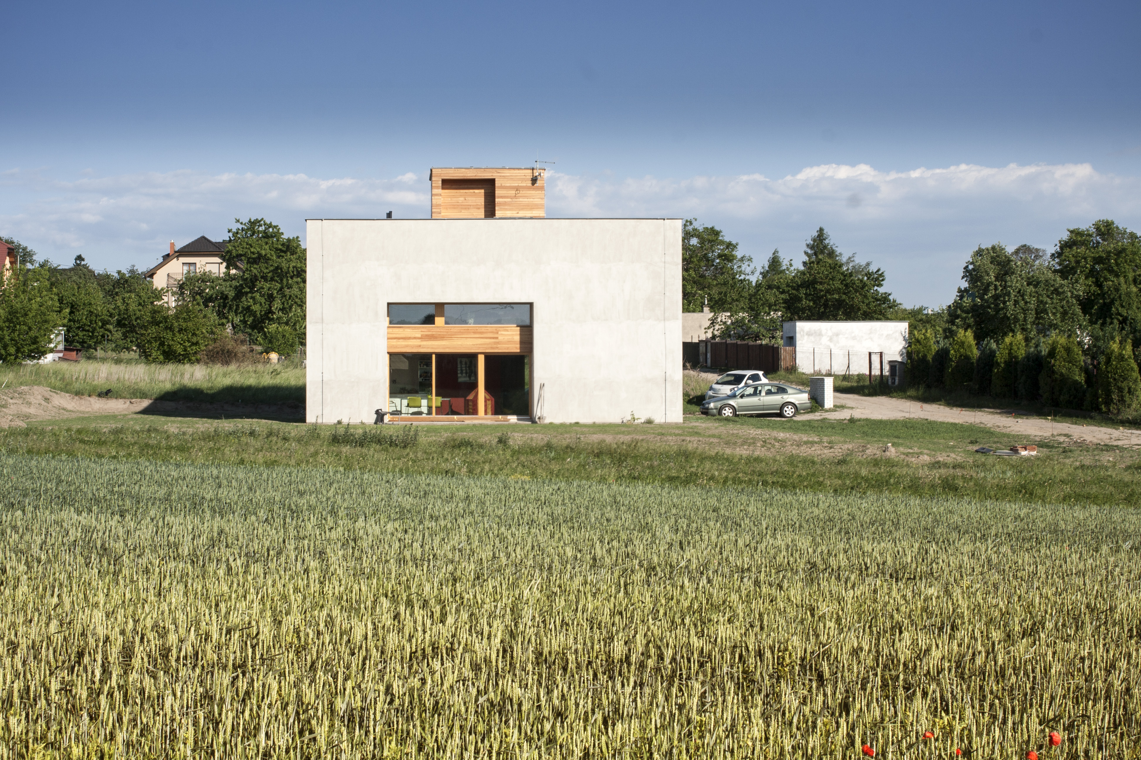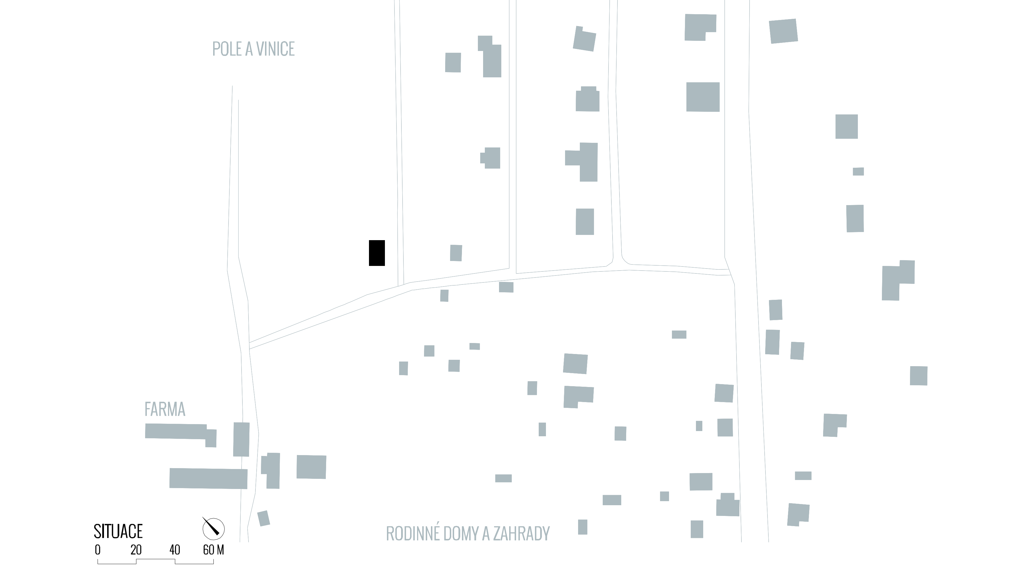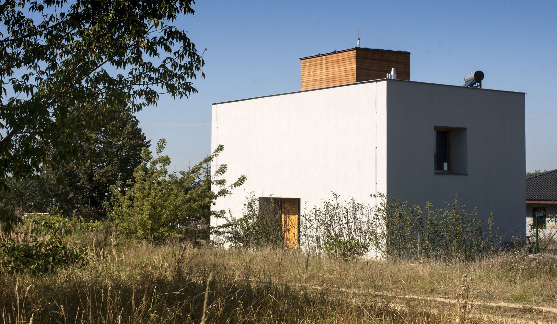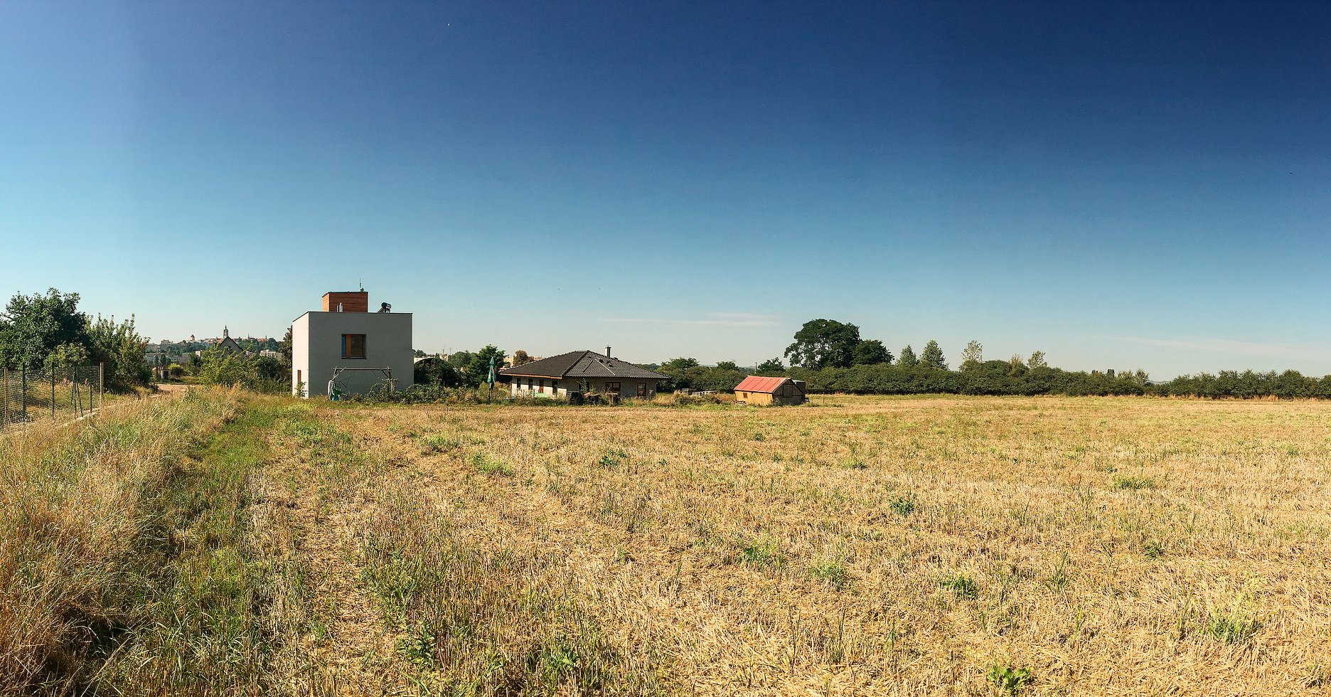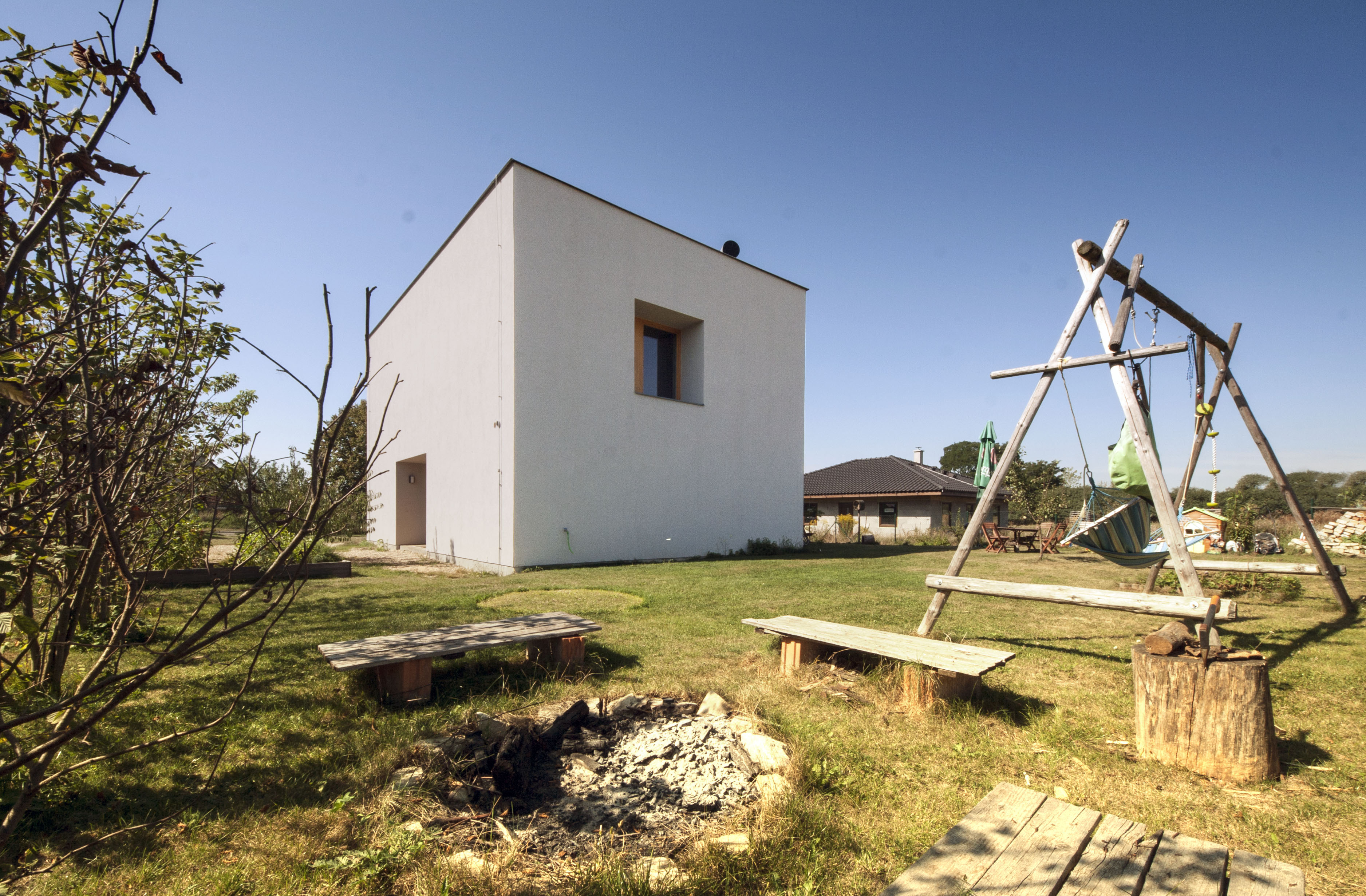 Umiestnenie domu v strede neveľkej parcely na okraji mesta Mělník akcentuje prepojenie domu s výhľadmi do krajiny. V každej zo štyroch fasád je zapustený jeden otvor rámujúci špecifický, pre každú stranu jedinečný výhľad - na vinicu, panorámu mesta, barokovú kaplnku a siluetu krajiny. Veľkosť a proporcia okenných otvorov je určená predovšetkým vzťahom medzi interiérom a charakterom jednotlivých výhľadov.