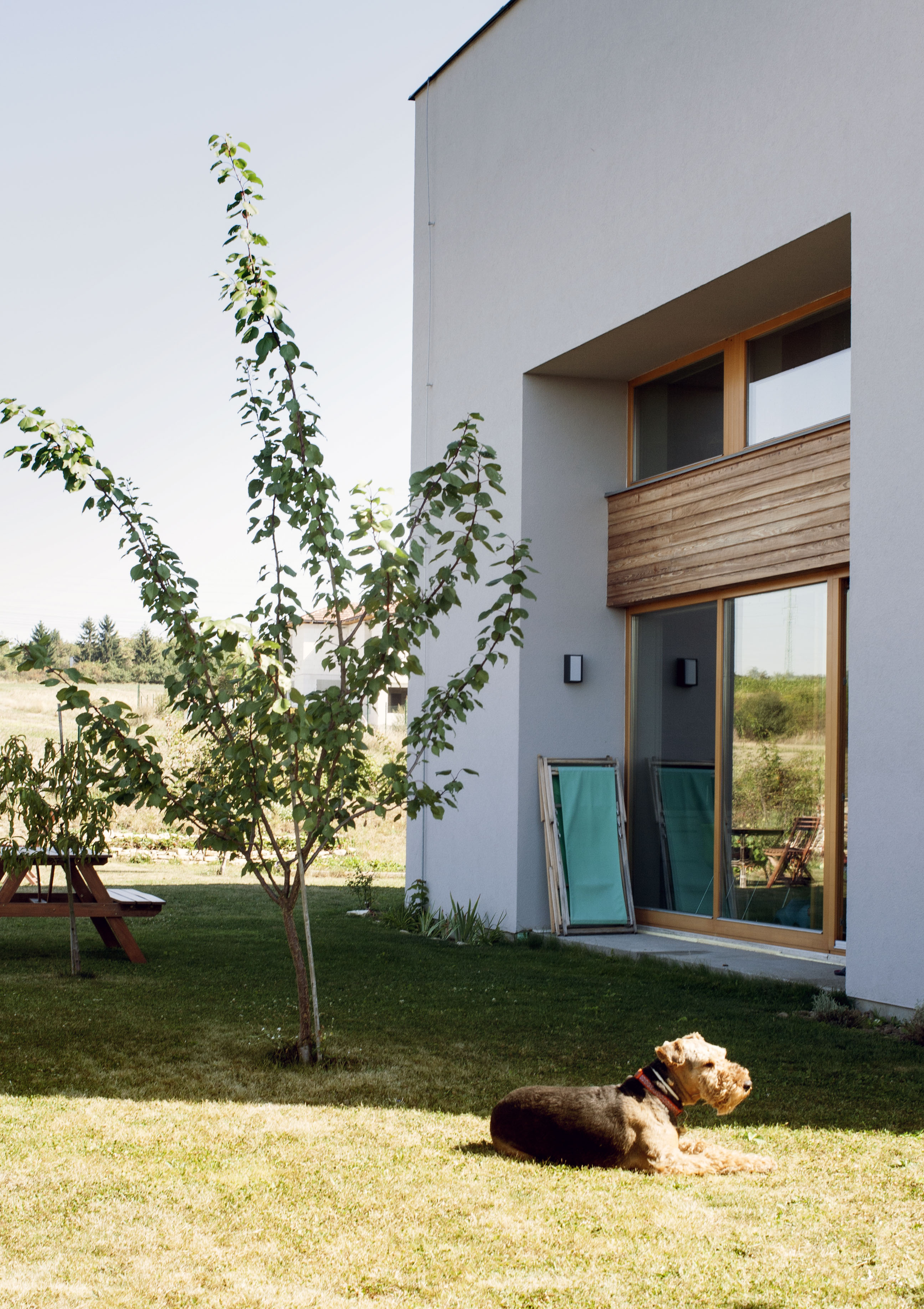 Záhradné úpravy sú zredukované na minimum. Situovanie domu na stred parcely ignoruje tradičné delenie záhrady na funkčné zóny a necháva vyniknúť samotnú krajinu. Zaujme absencia spevnených plôch, dokonca aj v polohe pri vstupe. Na pozemku sú vysadené hospodárske rastliny a staré odrody ovocných drevín.