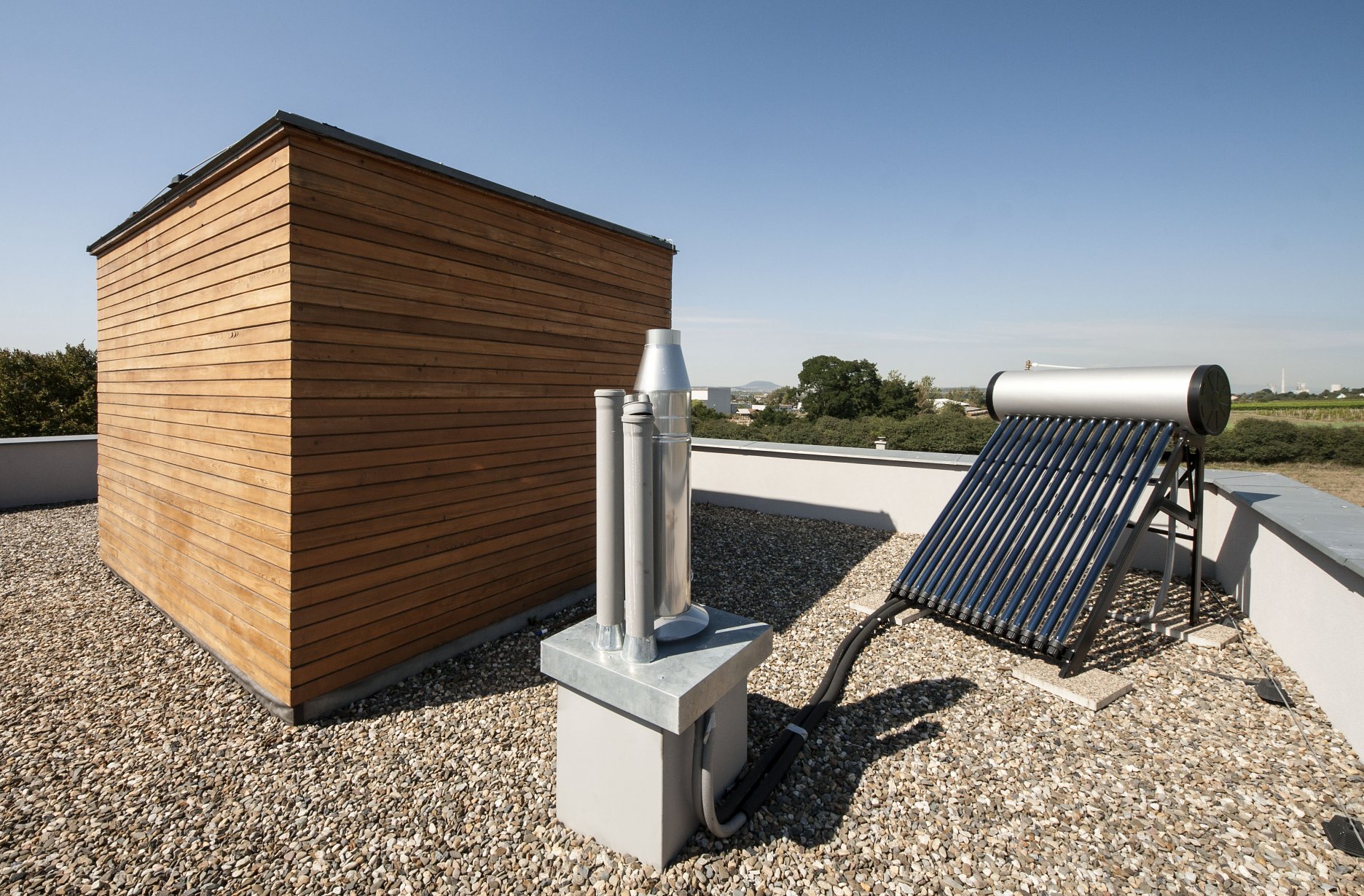 Dom je navrhnutý v nízkoenergetickom štandarde. Vykurovanie zabezpečuje peletkový kotol. Vetranie je prirodzené. Kanalizácia ústi do domácej čističky odpadových vôd, dažďová voda je zvedená drenážnym systémom do vsaku.