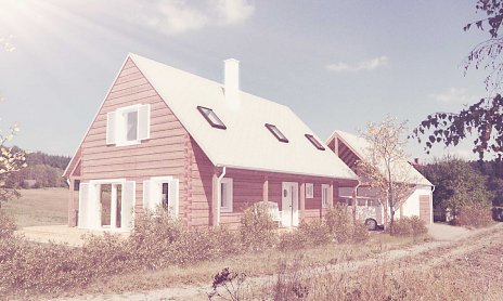 Dom v Neveklove pracuje so základným, archetypálnym tvaroslovím rodinného domu so sedlovou strechou. Možstvo presklenených a otváravých plôch zabezpečuje dostatok svetla v interiéri a priamy kontakt obyvateľov s rozsiahlou záhradou. Lineárna stavba je zložená z dvoch objemov s rovnakým sklonom strechy, ale s rozdielnou výškou. Segmenty sú navzájom posunuté a prepojené preskleným krčkom.