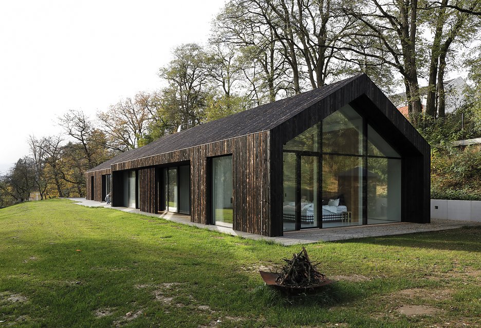 Dom je komponovaný tak, aby sa časom sa stal časom neoddeliteľnou súčasťou záhrady. Pri navrhovaní architekti hľadali krásu v nedokonalosti. Počítajú s prirodzeným starnutím materiálov. Čierna fasáda časom dostane patinu, oprší, drevené terasy zvetrajú… Už teraz “hrubé” povrchy postupne splývajú s prírodným prostredím.