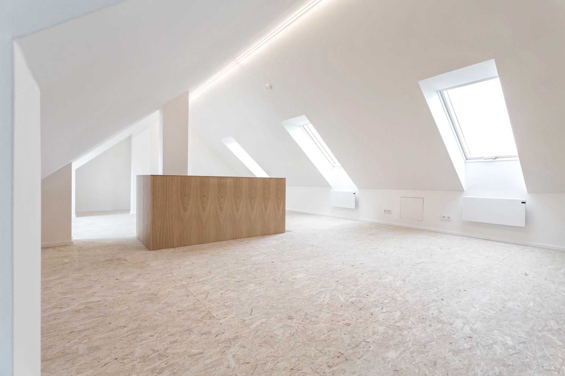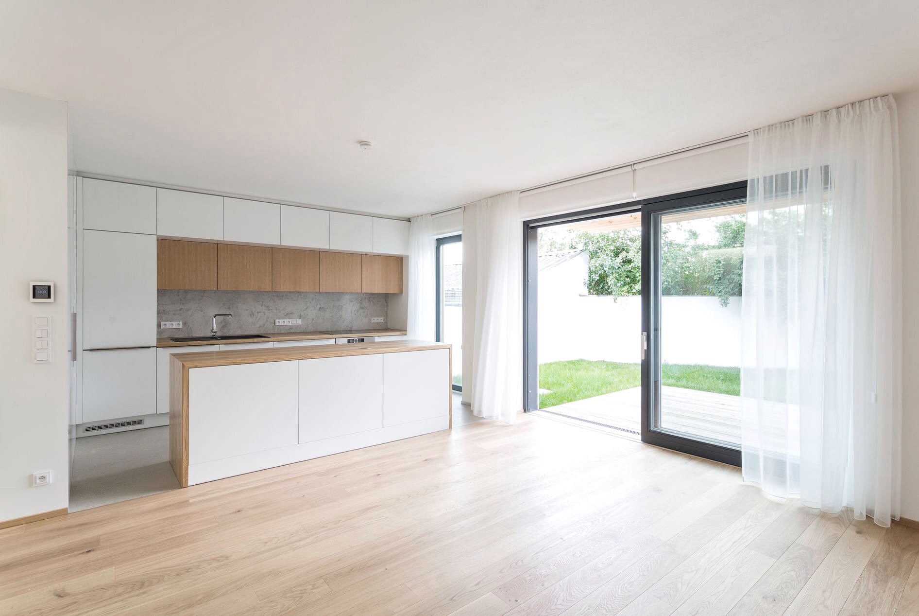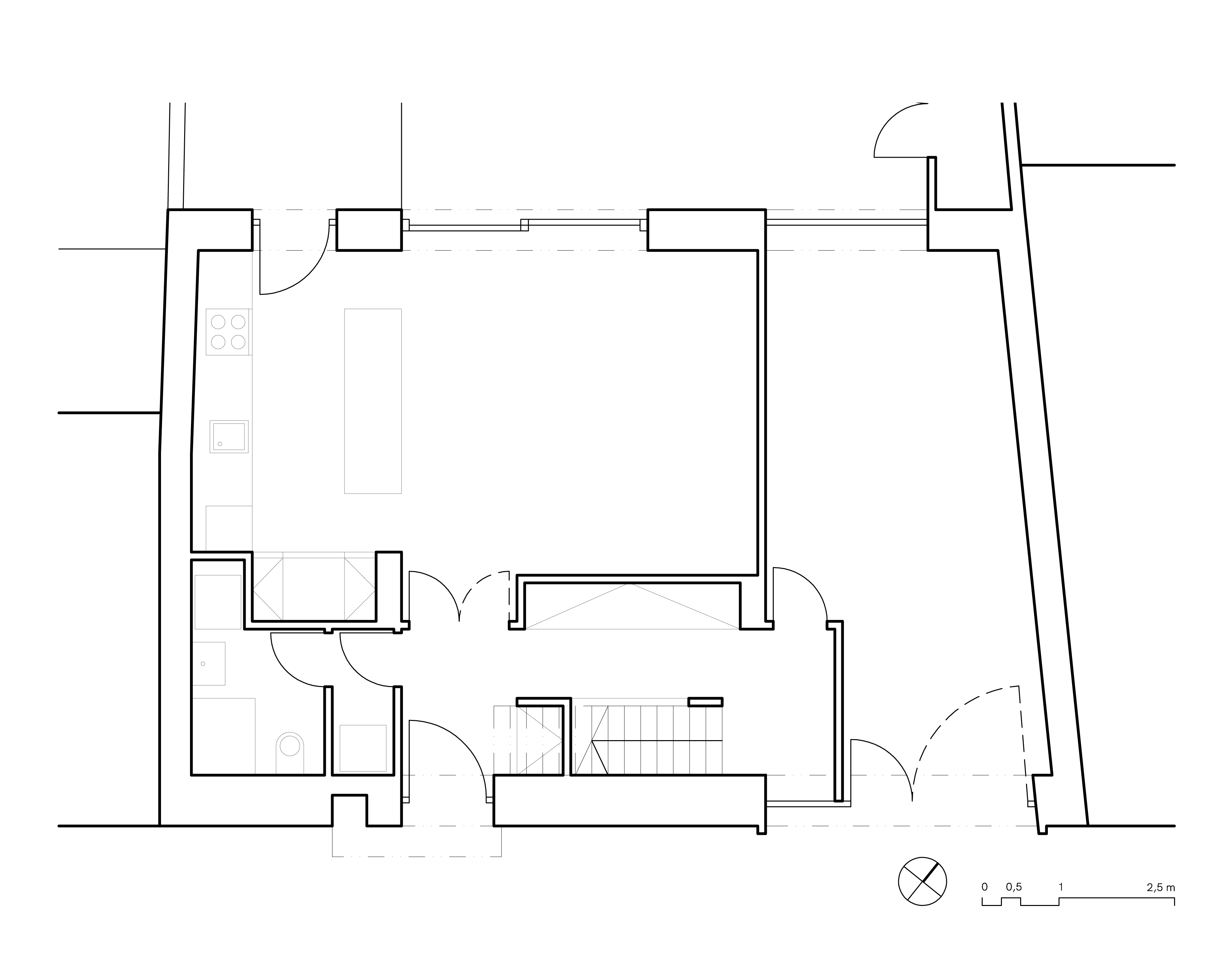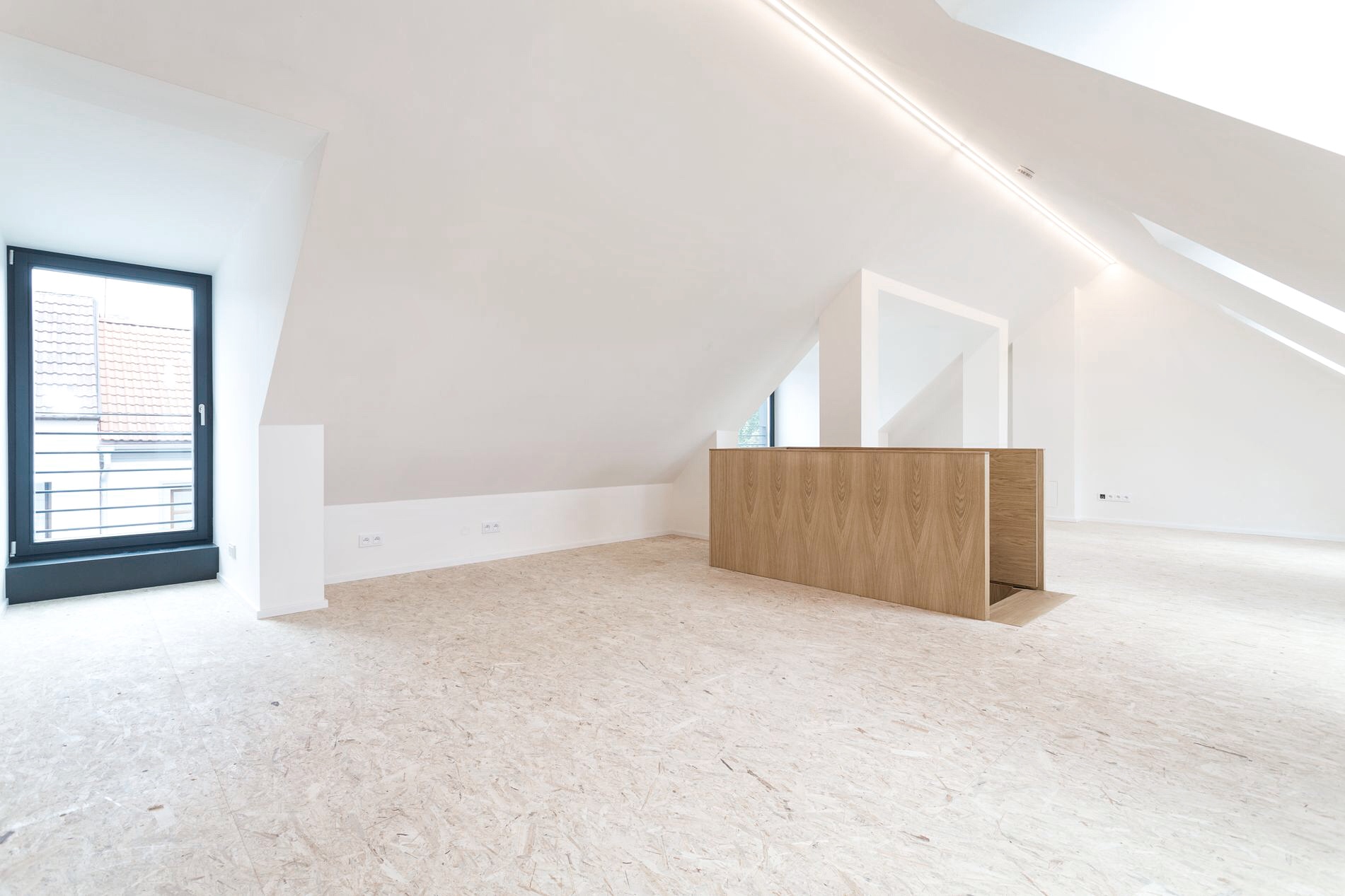 Rodinný dom je trojpodlažný. Prízemie sa prostredníctvom obytnej spoločenskej časti otvára severozápadným smerom do záhrady, technické zázemie tvorí časť od ulice. Na poschodí sú spálne a izby orientované na obe svetové strany a ponúkajú rôzne varianty výhľadov, denného osvetlenia či intimity. Podkrovie je poňaté ako jeden otvorený priestor s oddeleným šatníkom.