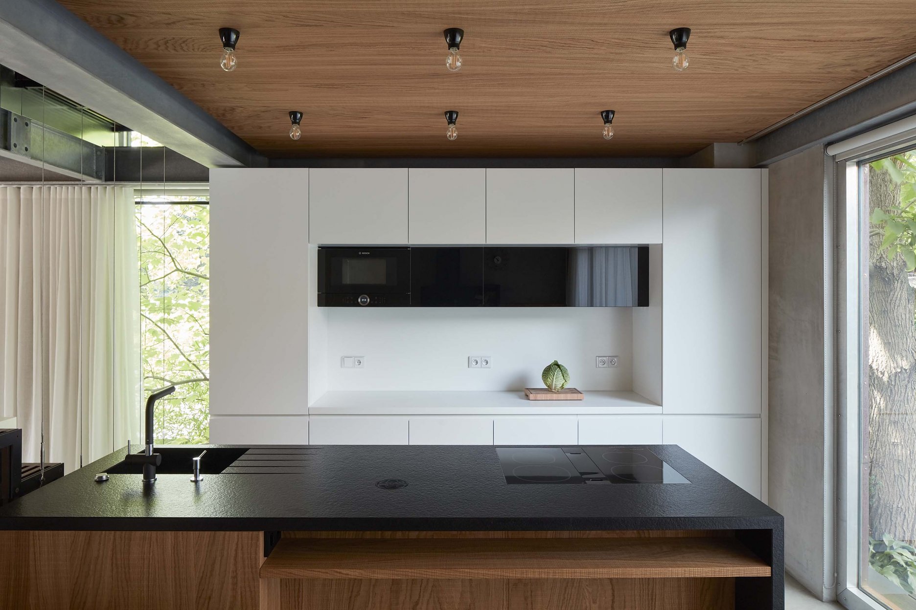 Majitelia sa po dvanástich rokoch rozhodli pre úpravu interiéru a "zjemnenie" pôvodnej "surovosti" hlavného obytného podlažia. Do interiéru pribudli ďalšie vrstvy, ktoré dopĺňajú nielen vizuálnu stránku, ale majú aj funkčné opodstatnenie. Základný parameter, ktorý bolo nutné vylepšiť, bola akustika interiéru. Všetky tvrdé a odrazové plochy v minimalistickom interiéri sa dočkali úprav. Akustika priestoru sa výrazne zlepšila vložením dubových obkladových konštrukcií stropov. Ich finálny povrch je upravený kefovaním, čo je v súlade so strohým riešením interiéru. Ďalšie úpravy boli skôr kozmetické. Nová kuchynská linka nahradila starší typ, pribudlo nové krbové teleso. Celé osvetlenie a riadenie domu prešlo výraznou úpravou, a to ako po stránke vizuálnej, tak aj energetickej.