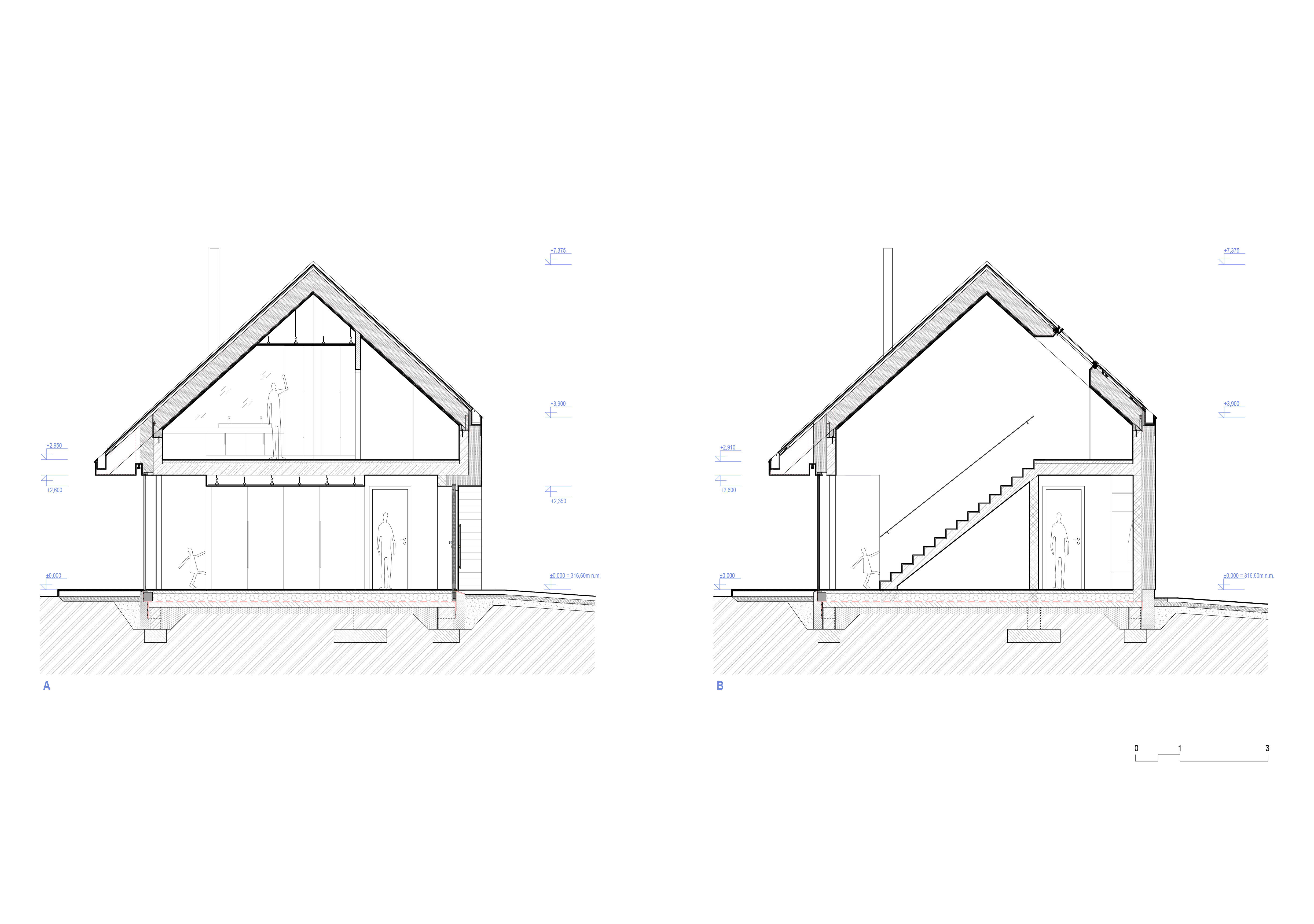 Novostavba nahradila prieluku v súvislej uličnej zástavbe. Na jej mieste predtým stál roky neobývaný dom. Návrh architekta Radka Pasterného zhmotňuje tvarový archetyp pôvodného domu v novej, abstrahovanej forme.