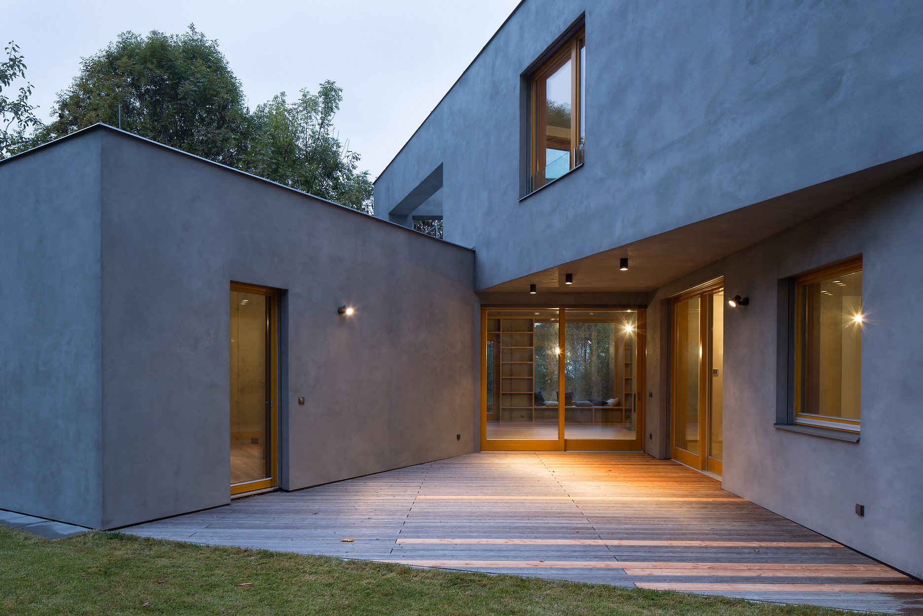 Dom vo vilovej zástavbe na rozhraní pražských štvrtí Ruzyně a Liboc. Pôdorys v tvare písmena “U” obklopuje vonkajšiu terasu, pobytový priestor s vysokou mierou súkromia. Z obývacej izby je cez výrez ohraničený krídlami domu komponovaný výhľad k neďalekému pamiatkovo chránenému lesoparku Obora Hvězda.