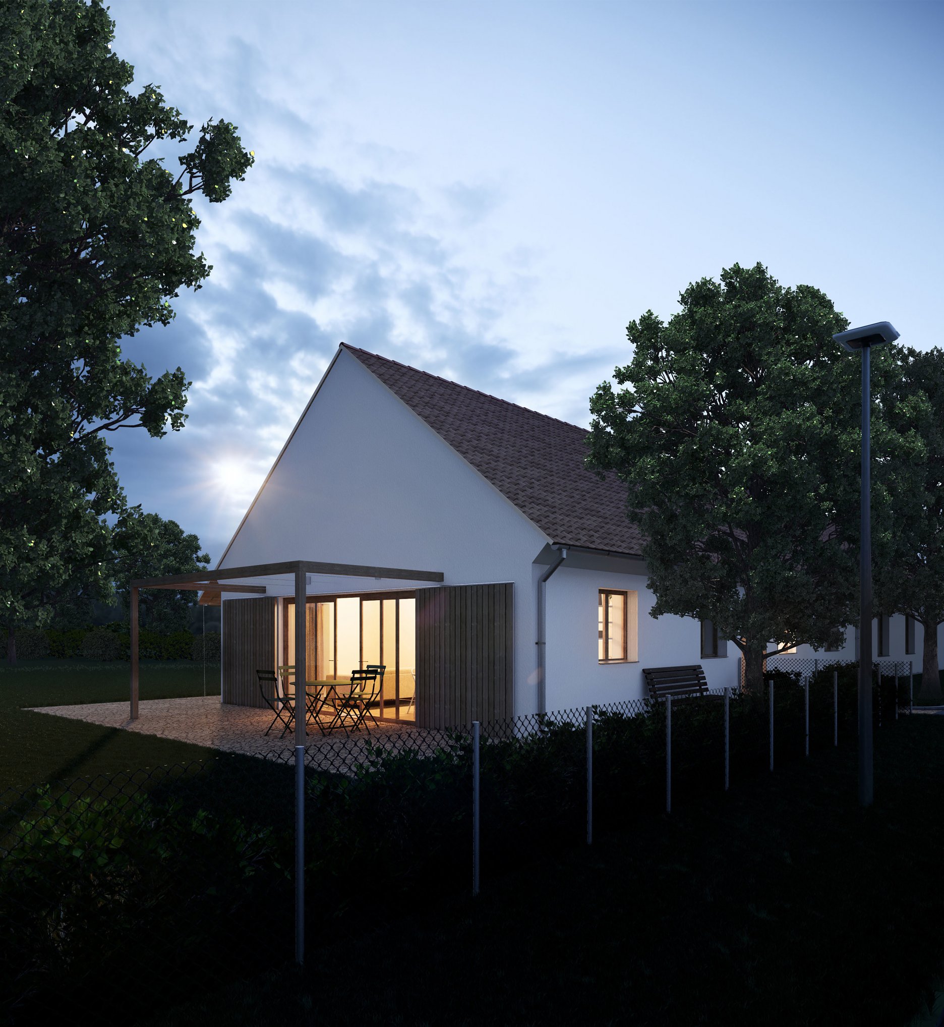 S pomocou neváhal ani ateliér NOMA, v ktorom pracujú českí a slovenskí architekti. Prostredníctvom projektu Architekti Pro Bono ich oslovila pani Husáková. “Tornádo zničilo jej mamičke dom v Hruškách a hľadala architektov pre návrh nového,” vysvetľuje architektka Eva Prcinová a pokračuje: “Našim spoločným cieľom bolo navrhnúť skromný dom pre ženu v zrelom veku a príležitostné návštevy rodiny, predovšetkým vnúčat.”