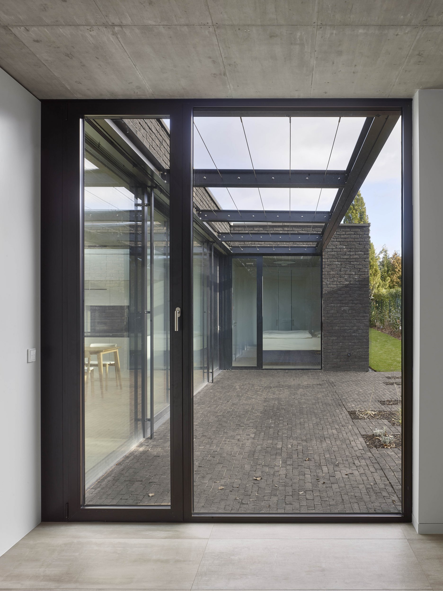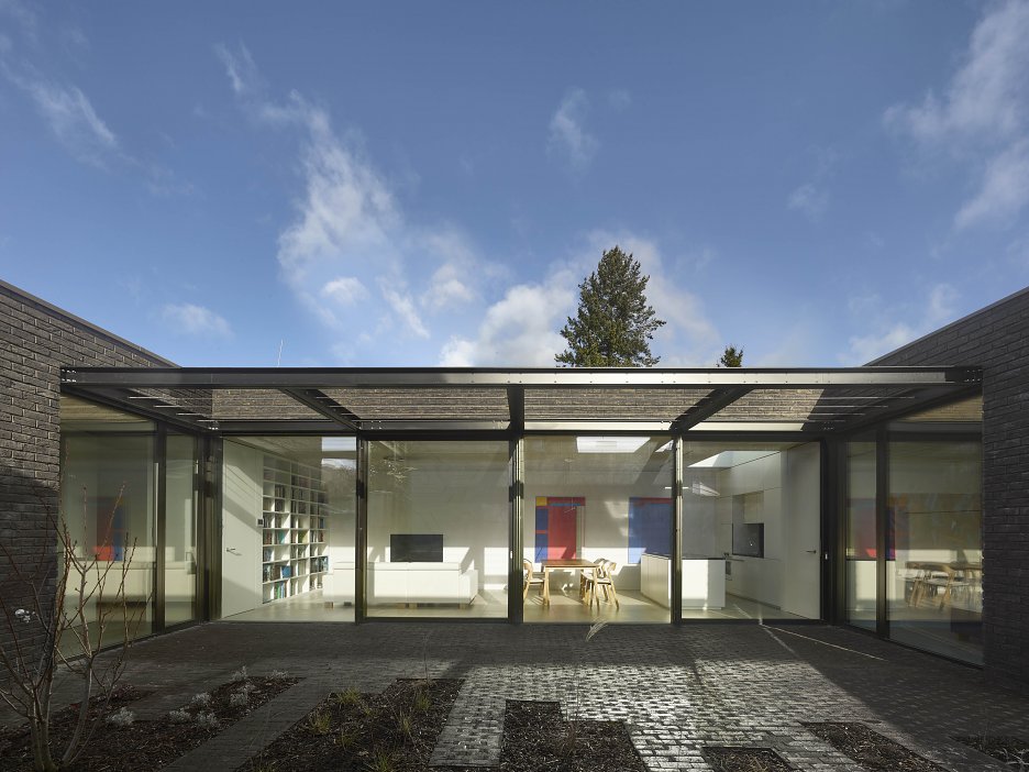 Aktuálna realizácia autorského kolektívu Stempel & Tesar architekti. Kompaktný dom s efektívne vyriešenou dispozíciou sa rozsiahlym presklením otvára do zapusteného "poloátria". Zvolené architektonické riešenie zachováva súkromie majiteľov a zároveň bezbariérovo prepája bývanie so záhradou.