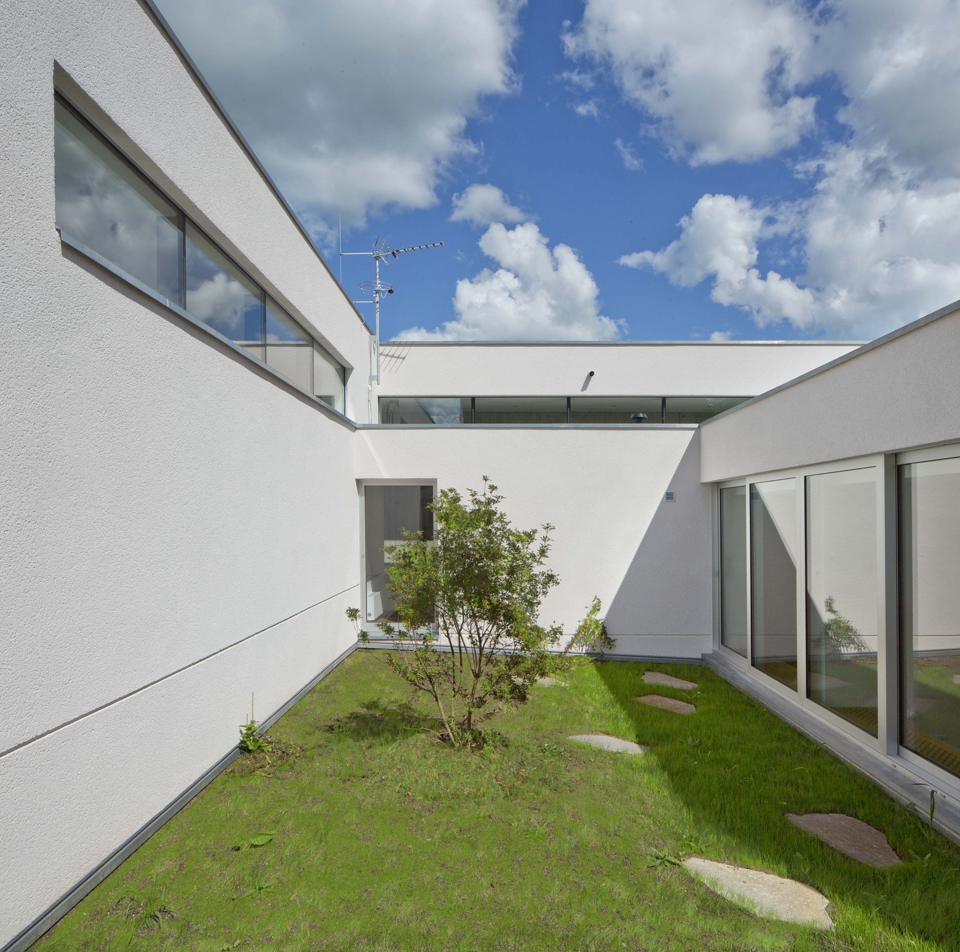 Práve klesajúci terén a neusporiadaná urbanistická štruktúra znamenali zaujímavé východisko pre architektonickú tvorbu. Obytná plocha domu je rozčlenená na tri výškové úrovne, ktoré sú navzájom prepojené chodbou prebiehajúcou pozdĺž východnej steny domu. Súčasťou rozsiahlej záhrady je samostatný bazén so záhradným domčekom.