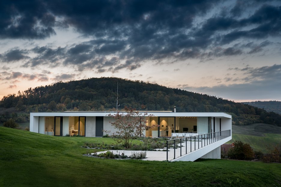 “Dům je výsledkem téměř ideální souhry klienta a architekta. Na základě předchozí spolupráce jsem dostal už od počátku velkou důvěru, kterou bylo zavazující nezklamat. Celý proces, od společné formulace zadání, přes výběr pozemku, projektování i vlastní realizaci, byl řešen s náležitou pečlivostí všech zúčastněných stran, bez zbytečného spěchu, s důrazem na promyšlenost každého kroku. Jedině tak bylo možné jít v mnoha ohledech až na hranici možného,” vysvetľuje architekt Martin Klimecký a pokračuje: “Zadání bylo docela prosté - kvalitní rodinné bydlení, kde propojení s přírodou a daleké výhledy do krajiny jsou všudypřítomné, tvoří hlavní dekoraci domu a určují jeho atmosféru. To zásadně ovlivnilo jak výběr pozemku, tak celkový přístup k řešení domu. Pro každou místnost je proto komponován jedinečný výhled, který architektura pouze rámuje. Nikdy nekončící, dynamická proměna přírody dům naplňuje.”