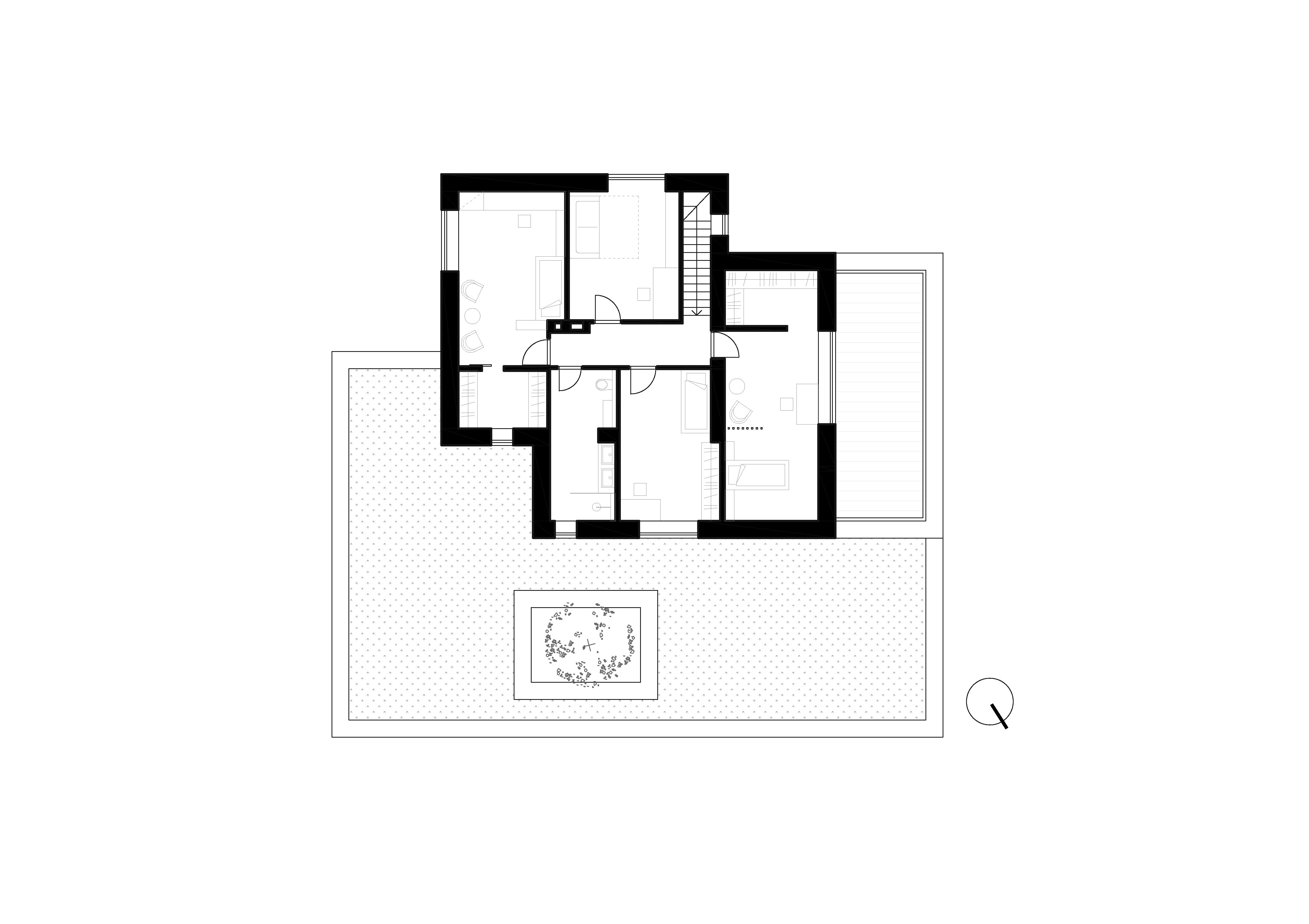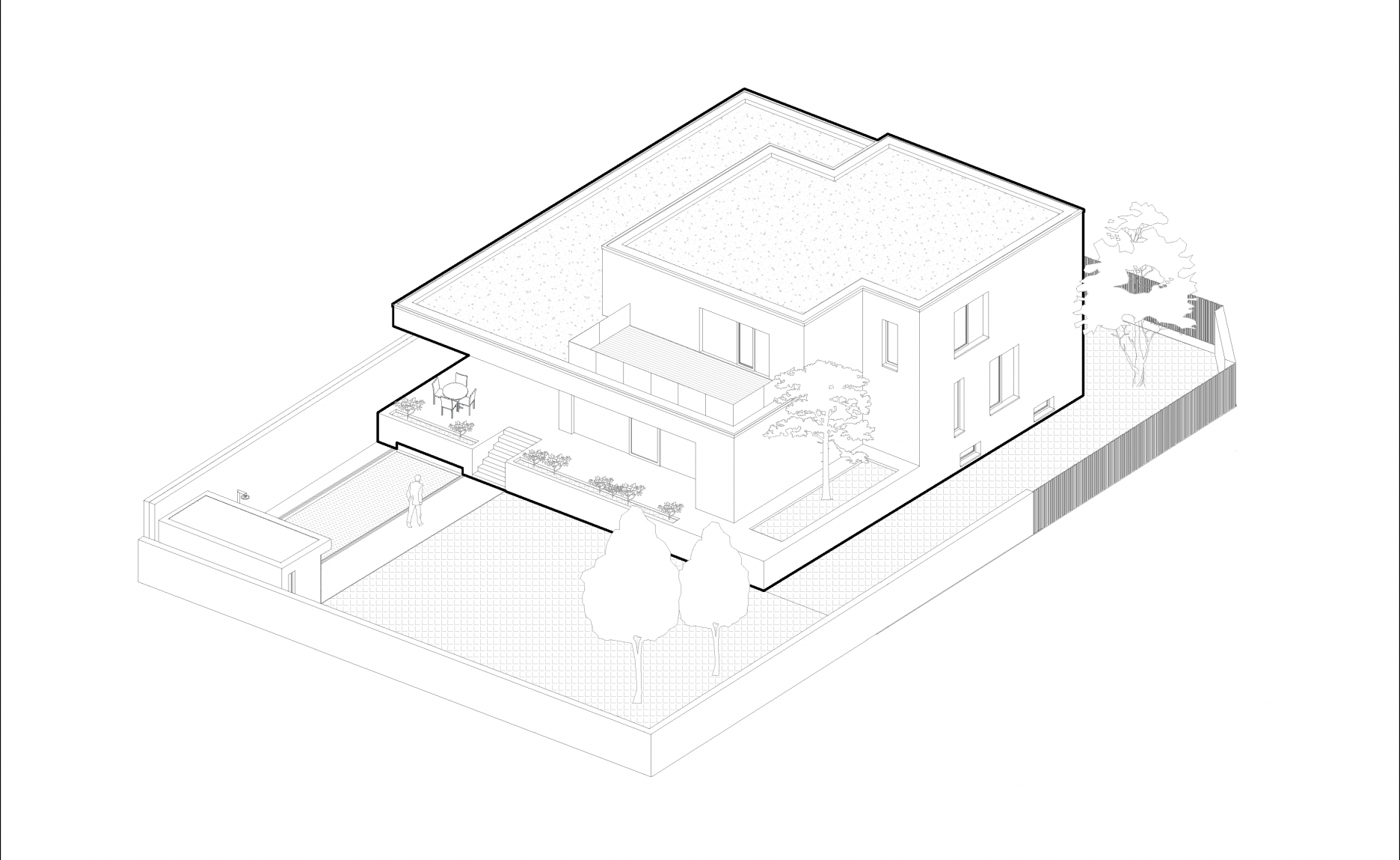Rodinný dom je koncipovaný ako rekonštrukcia pôvodného objektu z 80. rokov, pri ktorej bola zachovaná väčšia časť hmoty. Stavebnými úpravami, zamurovaním otvorov a prístavbou vznikli funkčné priestory, ktoré výrazne rozšírili komfort bývania.