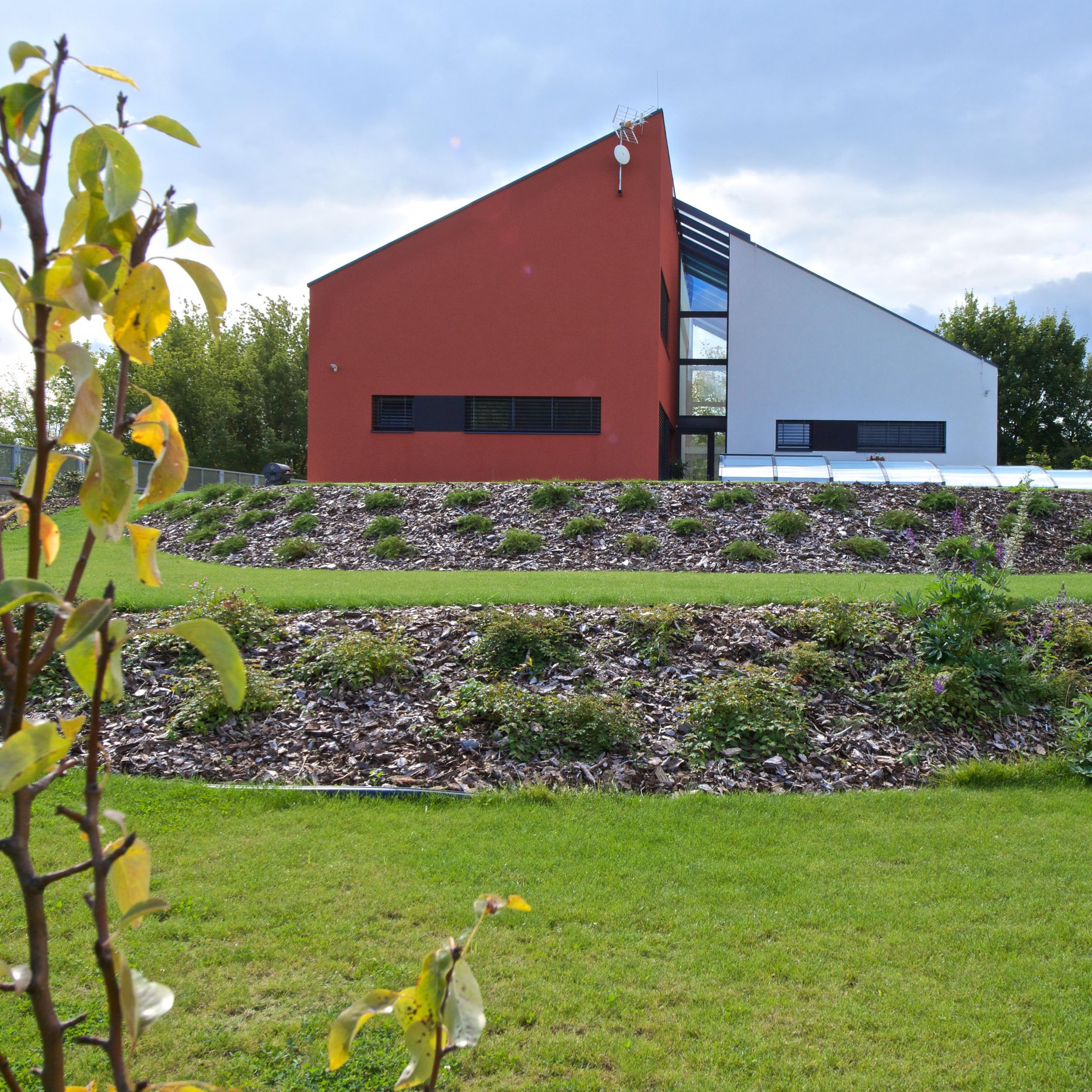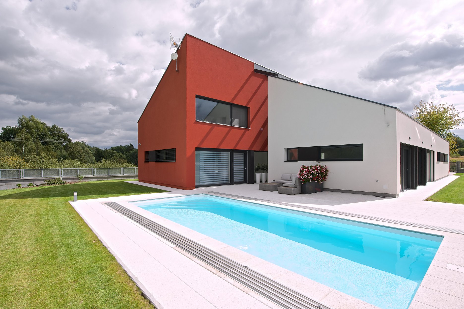 Klientka nás oslovila po přečtení článku v časopise v době, kdy již měla zpracovány dvě studie, podanou žádost o územní rozhodnutí, ale nebyla si kvalitou projektů jistá. Požadavek klienta byl umírněný dům pro manželé, oddělená část domu pro návštěvy dětí s rodinami, sauna a později byl přidán i venkovní bazén. Stavebním úřadem byla požadovaná maximální výška hřebene 8m a také byl dán povolený tvar střechy - sedlová případně pultová.