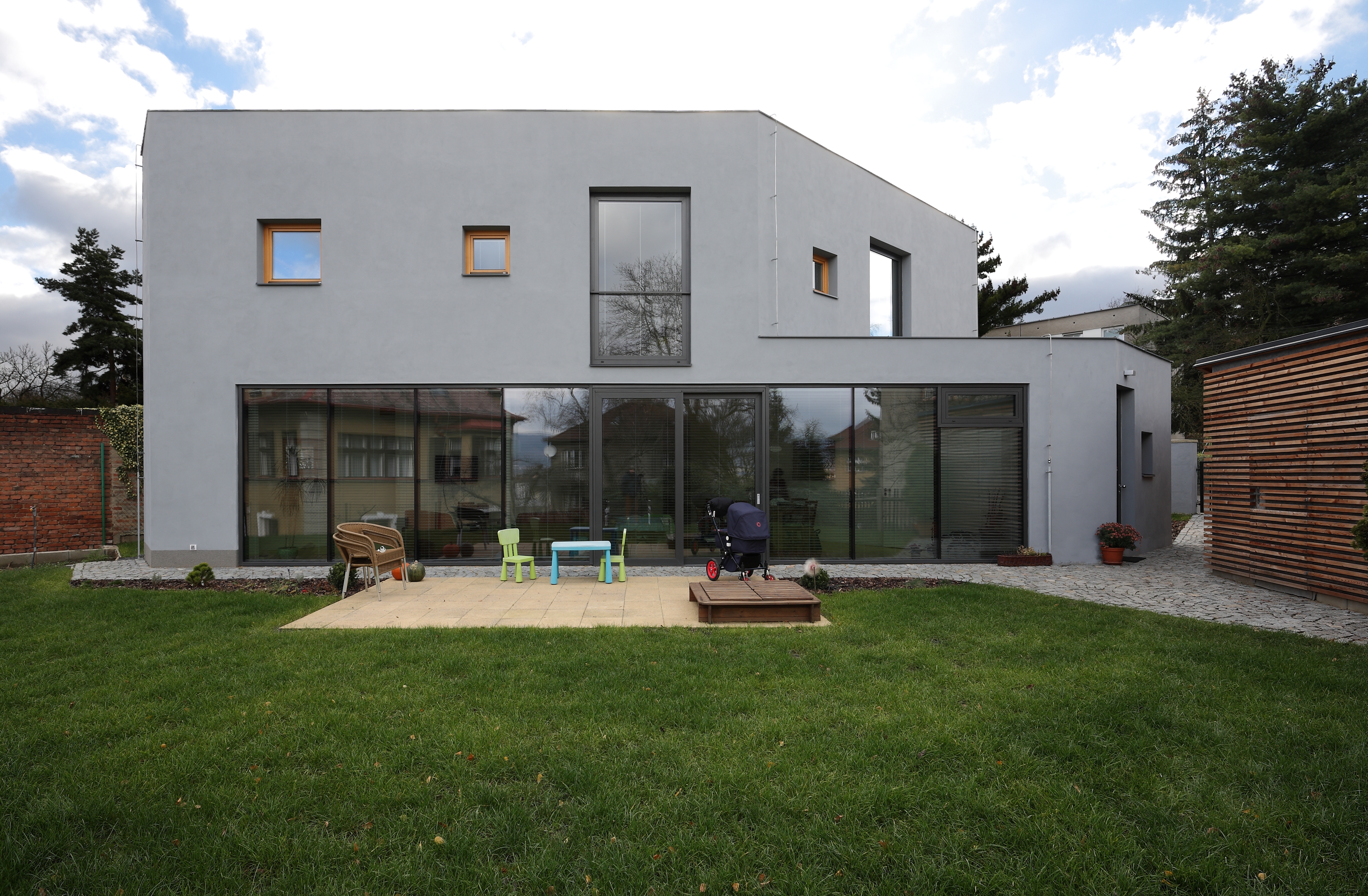 Novostavba reaguje na pestré prostredie a geometriu parcely. Najdlhšia strana trojuholníkového pôdorysu sa otvára do záhrady. "Chtěli jsme vytvořit dům odpovídající měřítkem a současným výrazem jeho sousedům," hovorí Pavel Plánička.