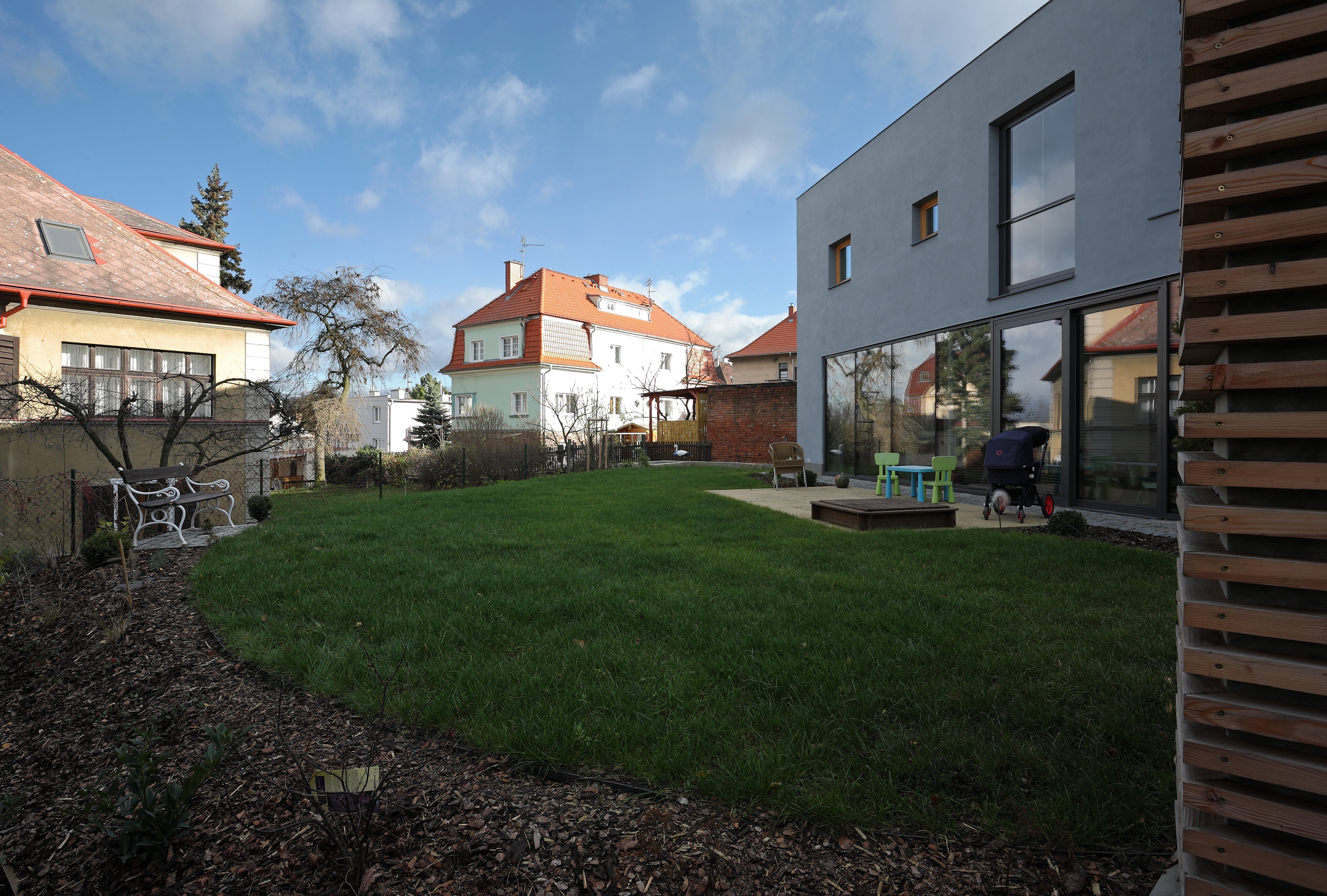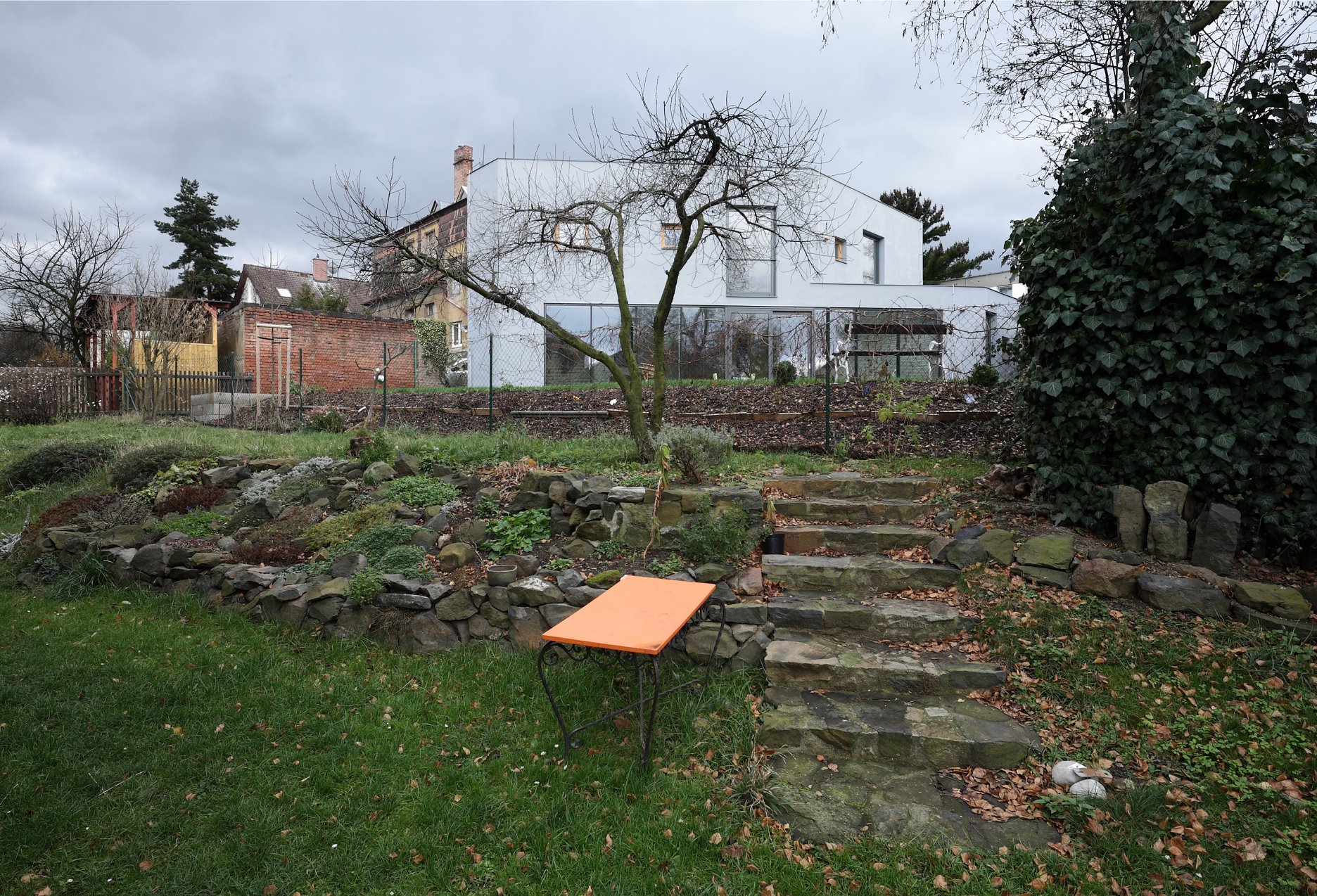 Zároveň bolo dôležité, ponechať na malom pozemku dostatočný priestor záhrade. Pre ňu sa ukázal ako ideálny severný roh pozemku, s charakteristickou atmosférou, kde sa stretávajú záhrady dvoch priľahlých domov. Mierka, proporcie a atmosféra miesta tvarujú hmotu domu. "Pokoušíme se nalézt optimální v minimálním," hodnotia architekti.