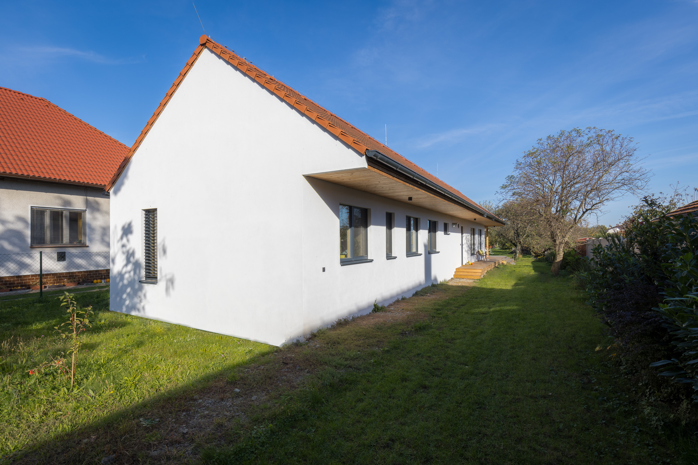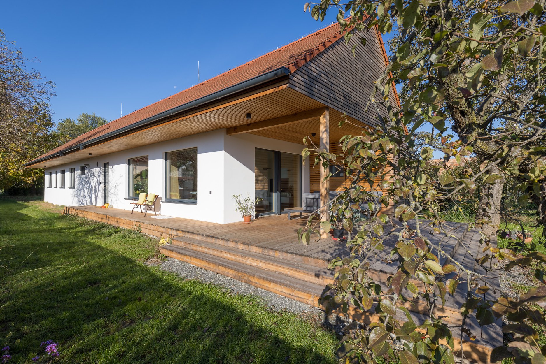 Dom je navrhnutý v súlade s charakterom pôvodnej uličnej zástavby, ktorú tvoria úzke, pozdĺžne domy so štítmi orientovanými do ulice. Svojou hmotou nadväzuje na tradičnú vidiecku architektúru, no materiálové riešenie, detail aj interiér interpretujú tieto východiská v súčasnom, modernom jazyku. Dlhá južná fasáda, orientovaná do záhrady, je členená okennými otvormi obytných miestností a tienená výrazným presahom strechy.