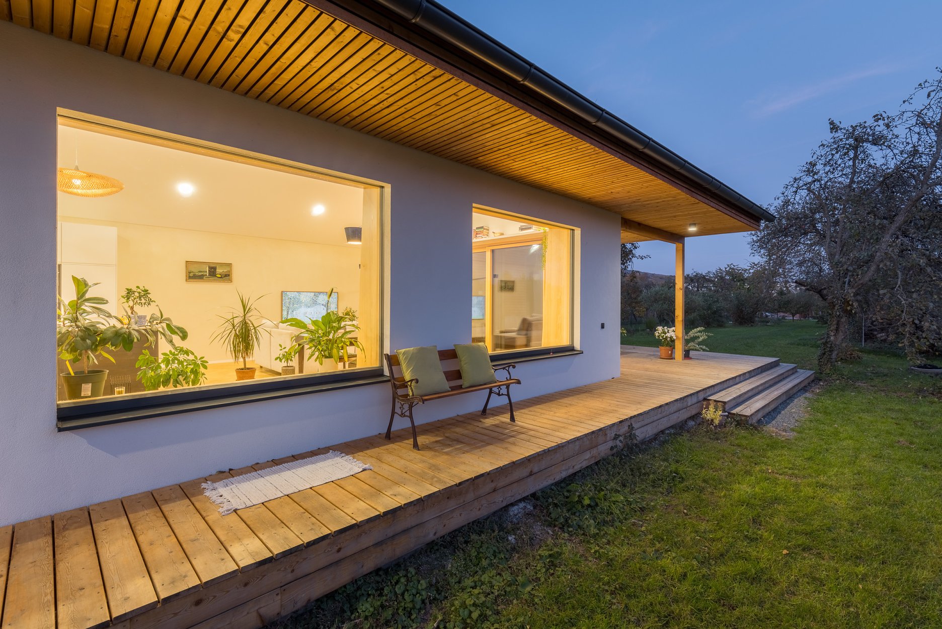 Vďaka prvkom pasívneho štandardu, schopnosti stavby tlmiť teplotné výkyvy a využitiu prírodných materiálov s uloženým uhlíkom je dom odolný voči dôsledkom klimatickej zmeny. Udržateľné riešenie spája komfort bývania, environmentálnu zodpovednosť a dôraz na dlhodobú hodnotu stavby.