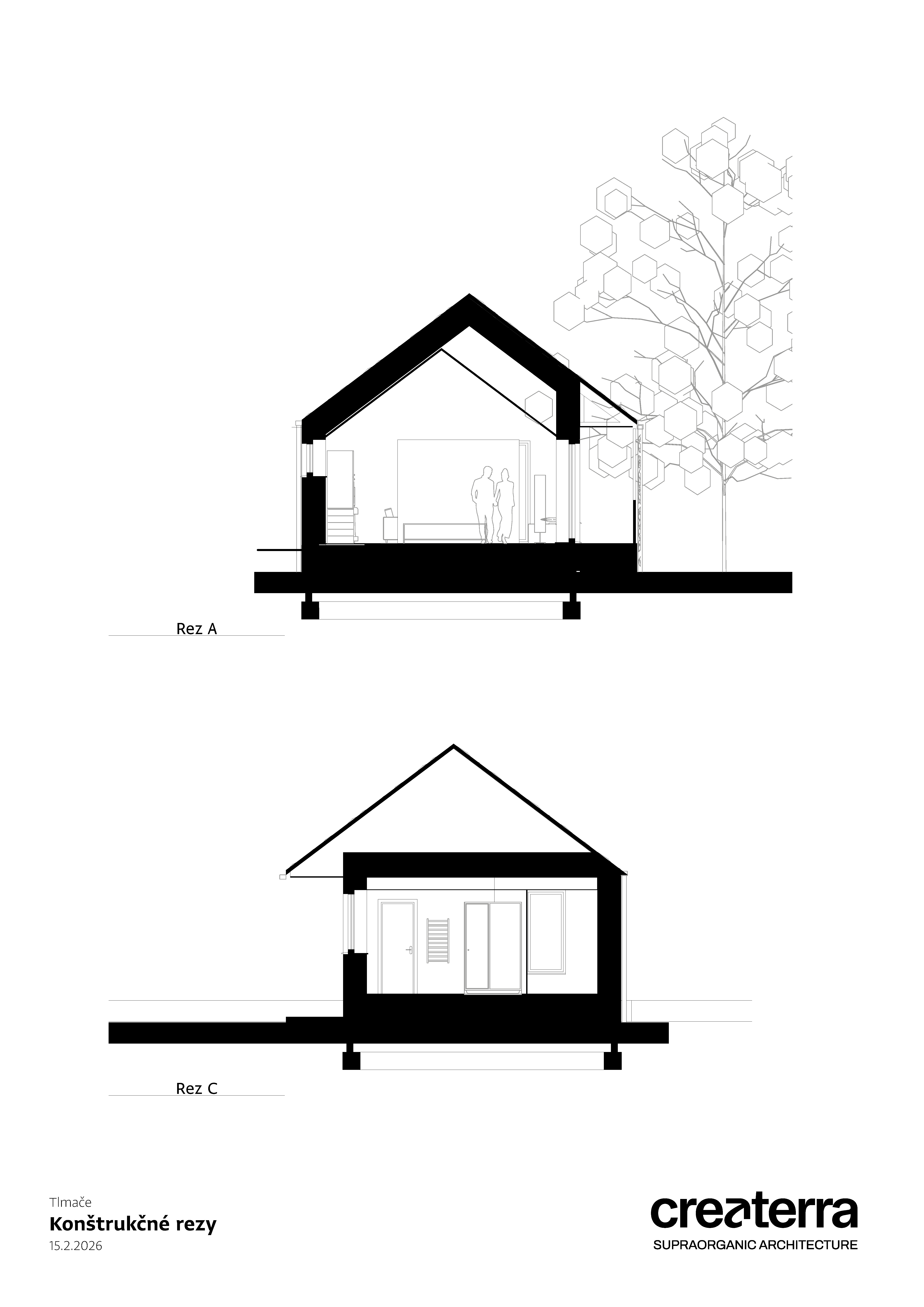 Rodinný dom v Tlmačoch z dielne ateliéru Createrra nadväzuje na usporiadanie okolitej obytnej štruktúry, pričom kladie dôraz na orientáciu dennej časti do záhrady a na prehľadnú, flexibilnú prevádzku.