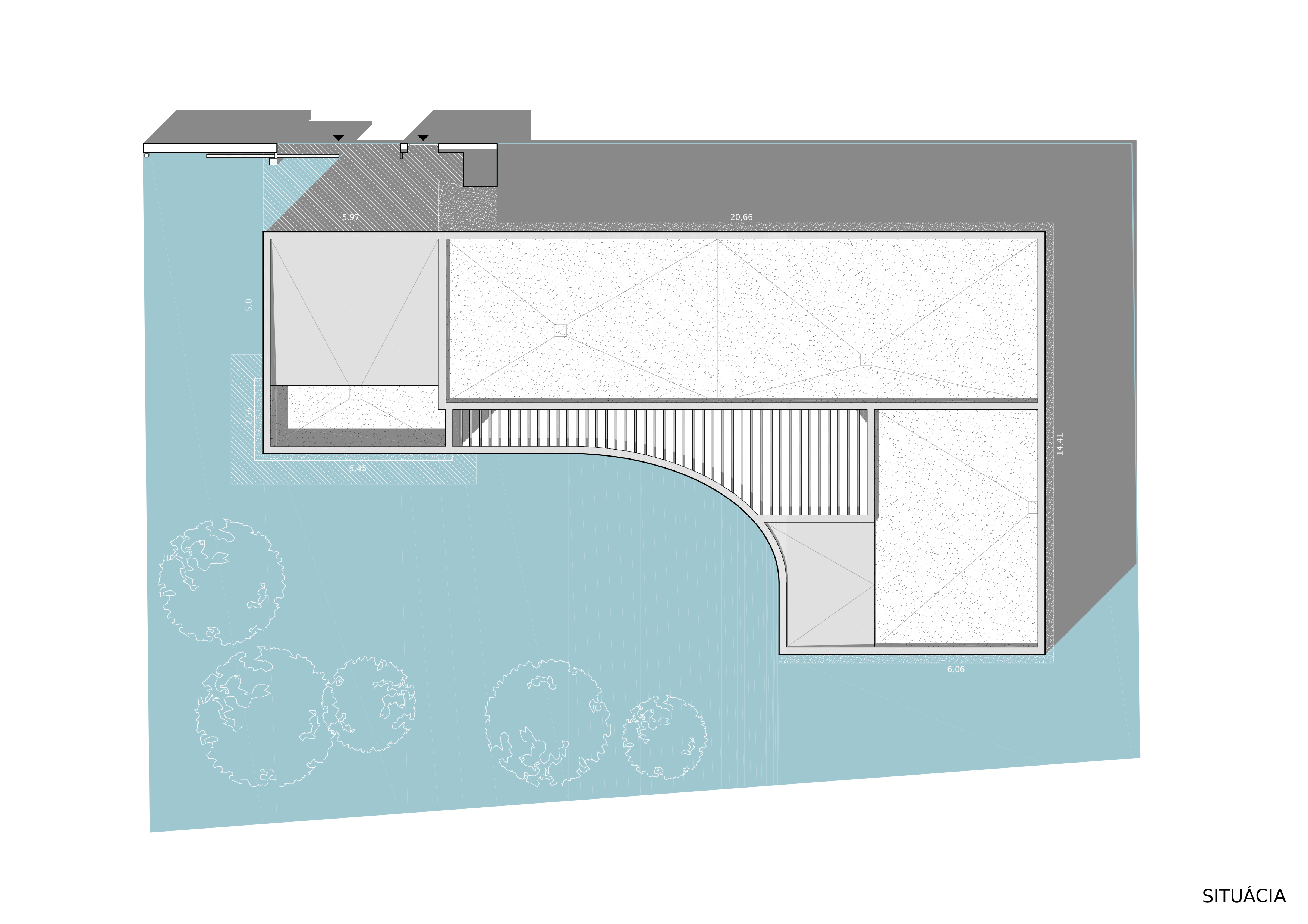 Stavba rodinného domu je riešená ako jednopodlažný nepodpivničený objekt s plochou strechou.