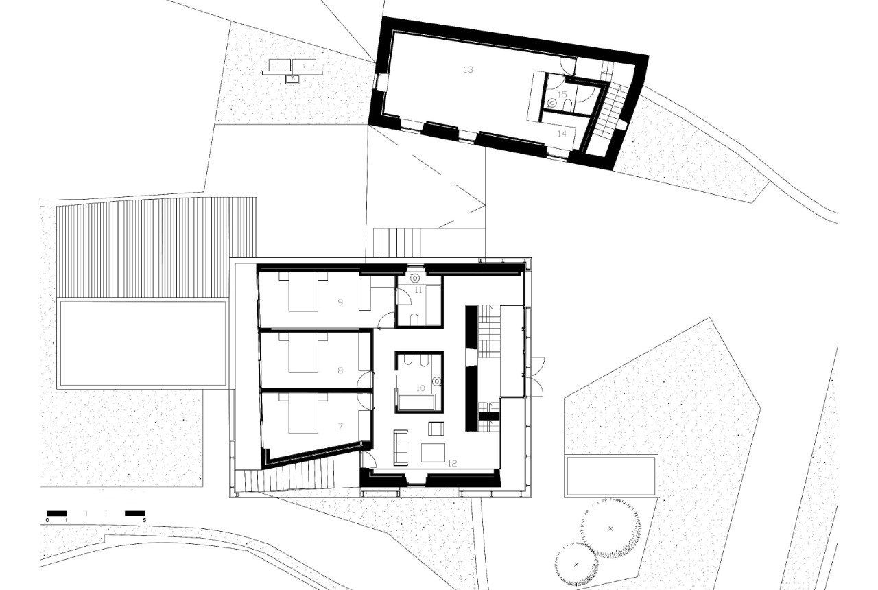 Po prestavbe je dom trojpodlažný. Dispozícia je delená na dennú a nočnú zónu, ktorá je členená po podlažiach.