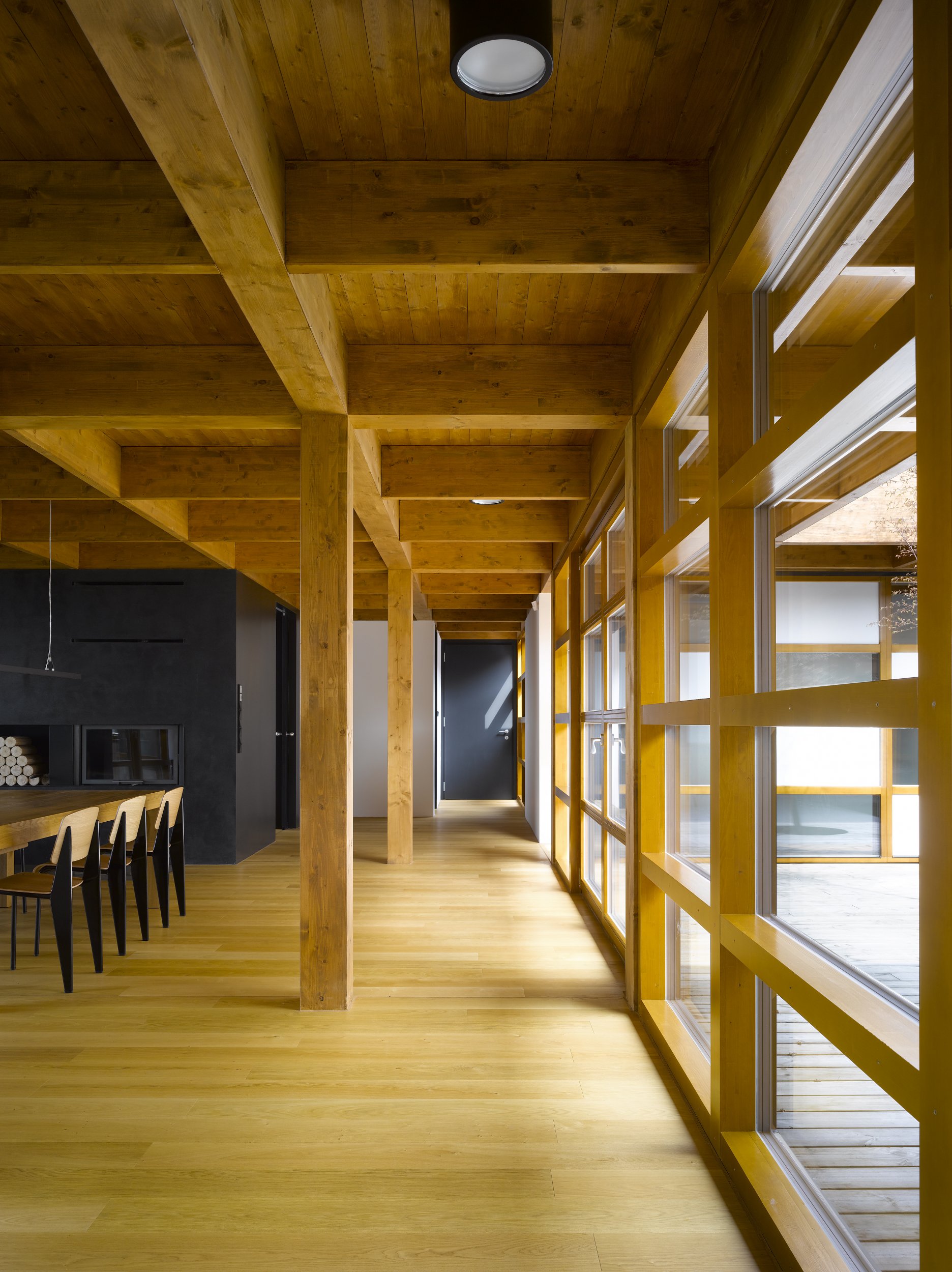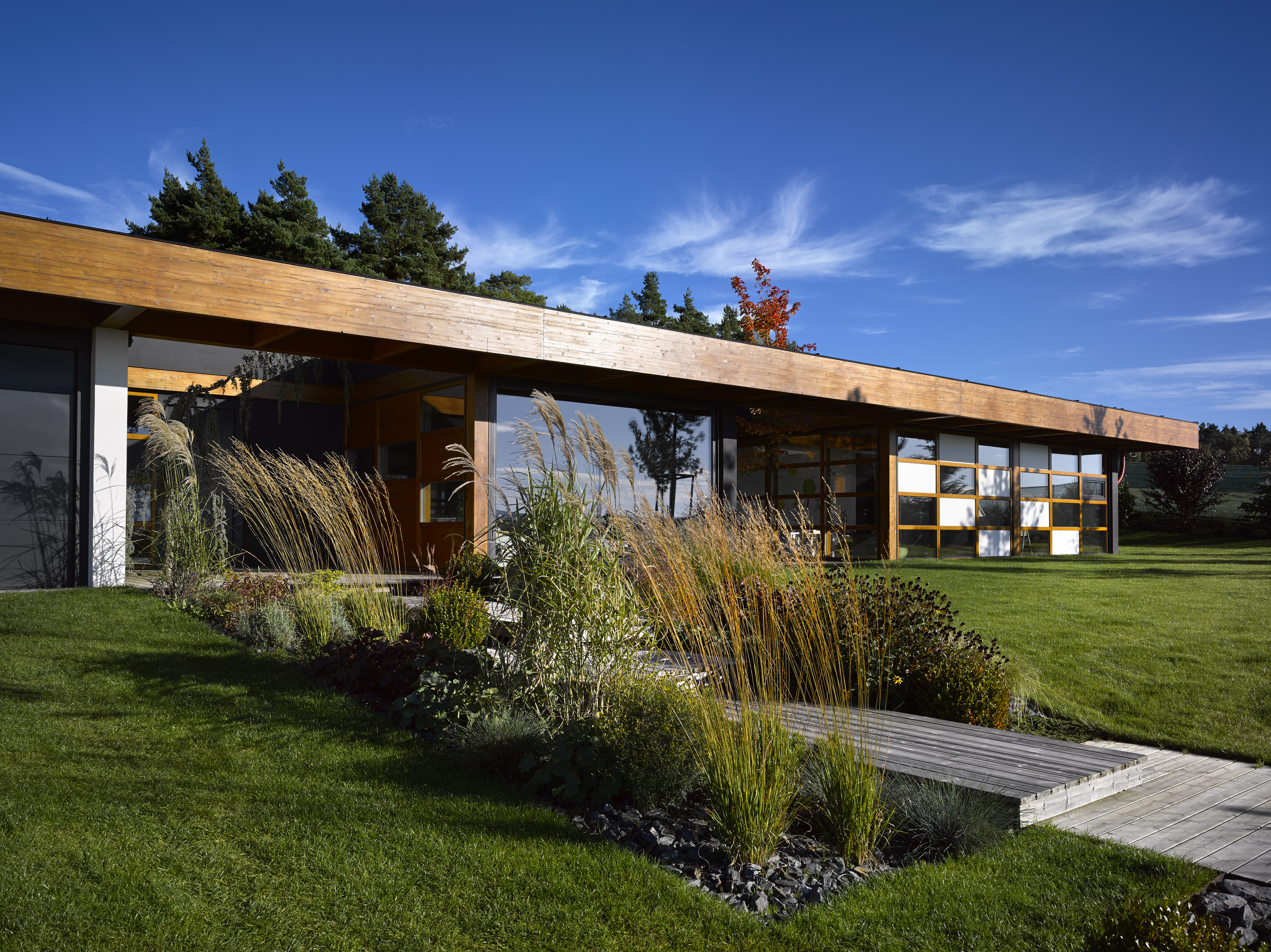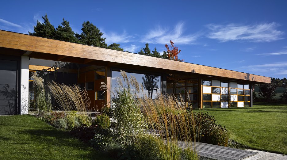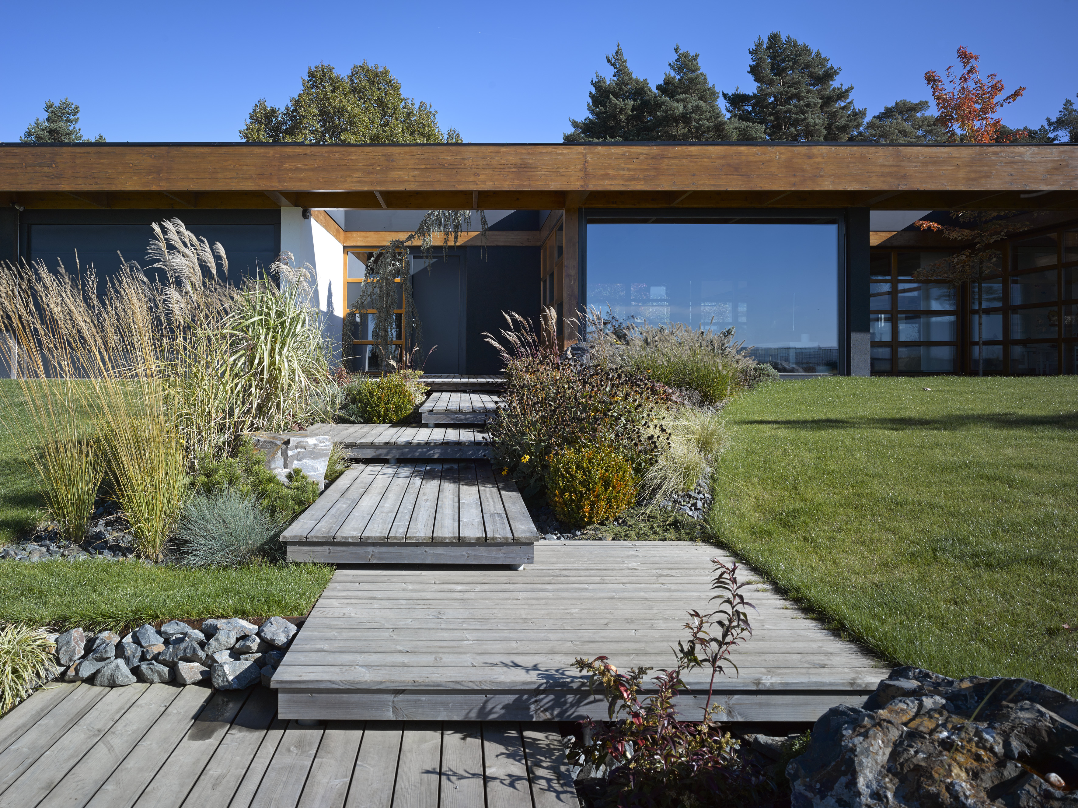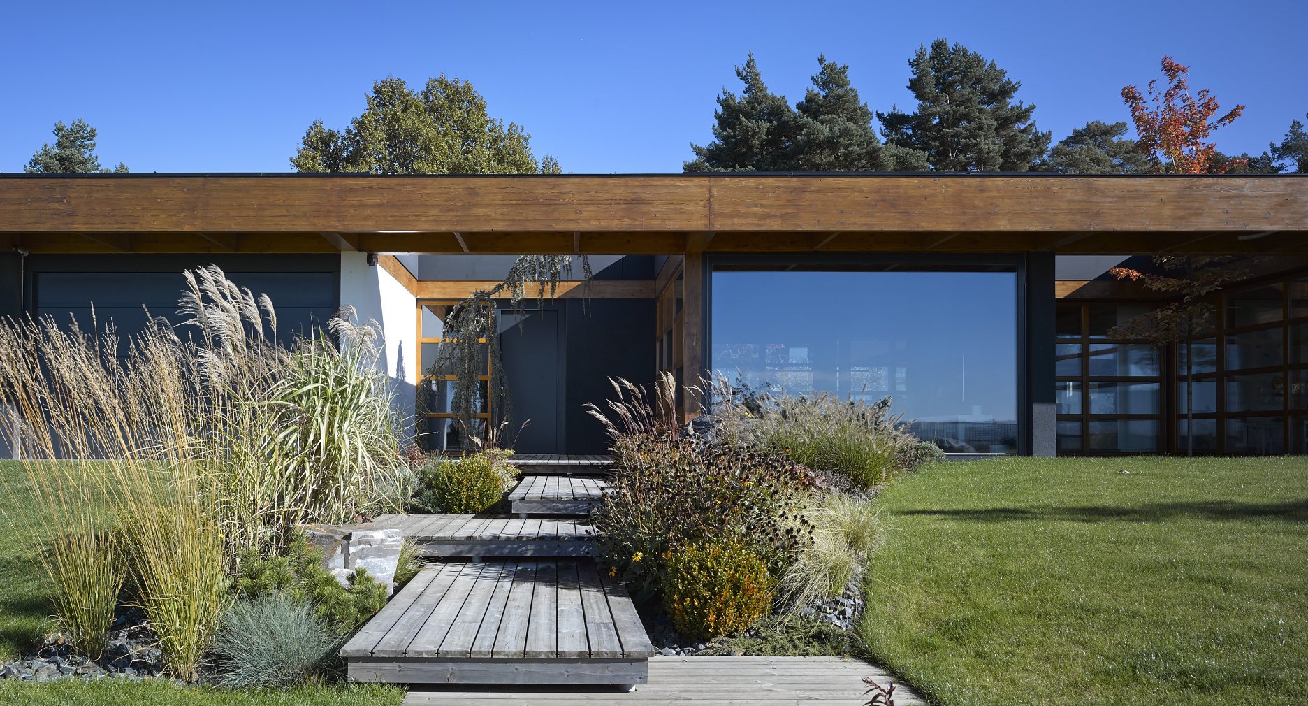 Možnosti pozemku architekty navíc nenutili dům táhnout v patrech do výšky, takže celá stavba má jen jednu pochozí úroveň. Je to výhoda, kterou člověk ocení zvlášť s příchodem stáří, kdy je každý schod o něco vyšší než dřív. Samotné dispoziční rozvržení a charakter konstrukce vyvolává jisté asociace tradiční japonskou architektury, což lze částečně připsat na účet vášni majitele pro tamní kulturu.