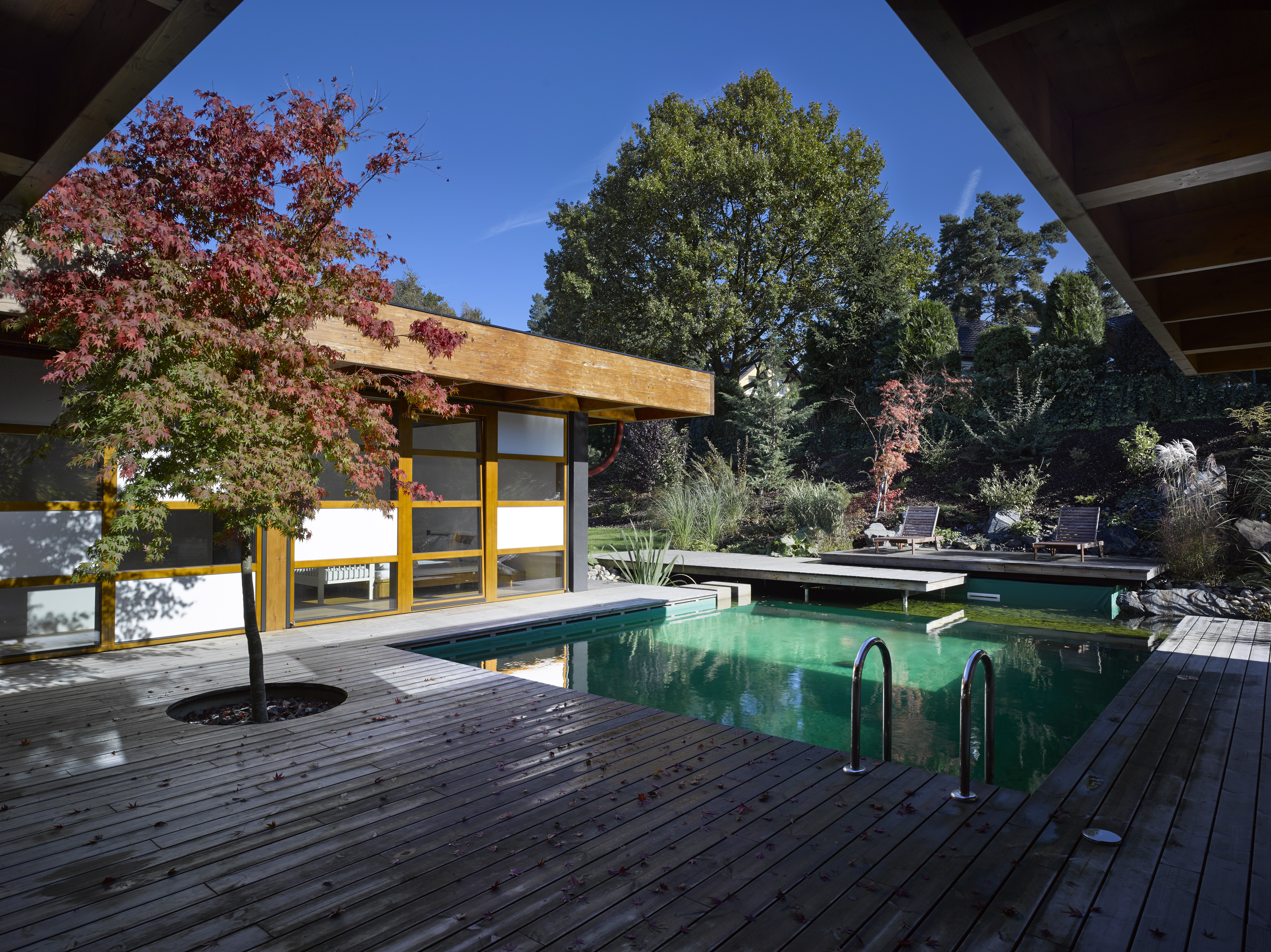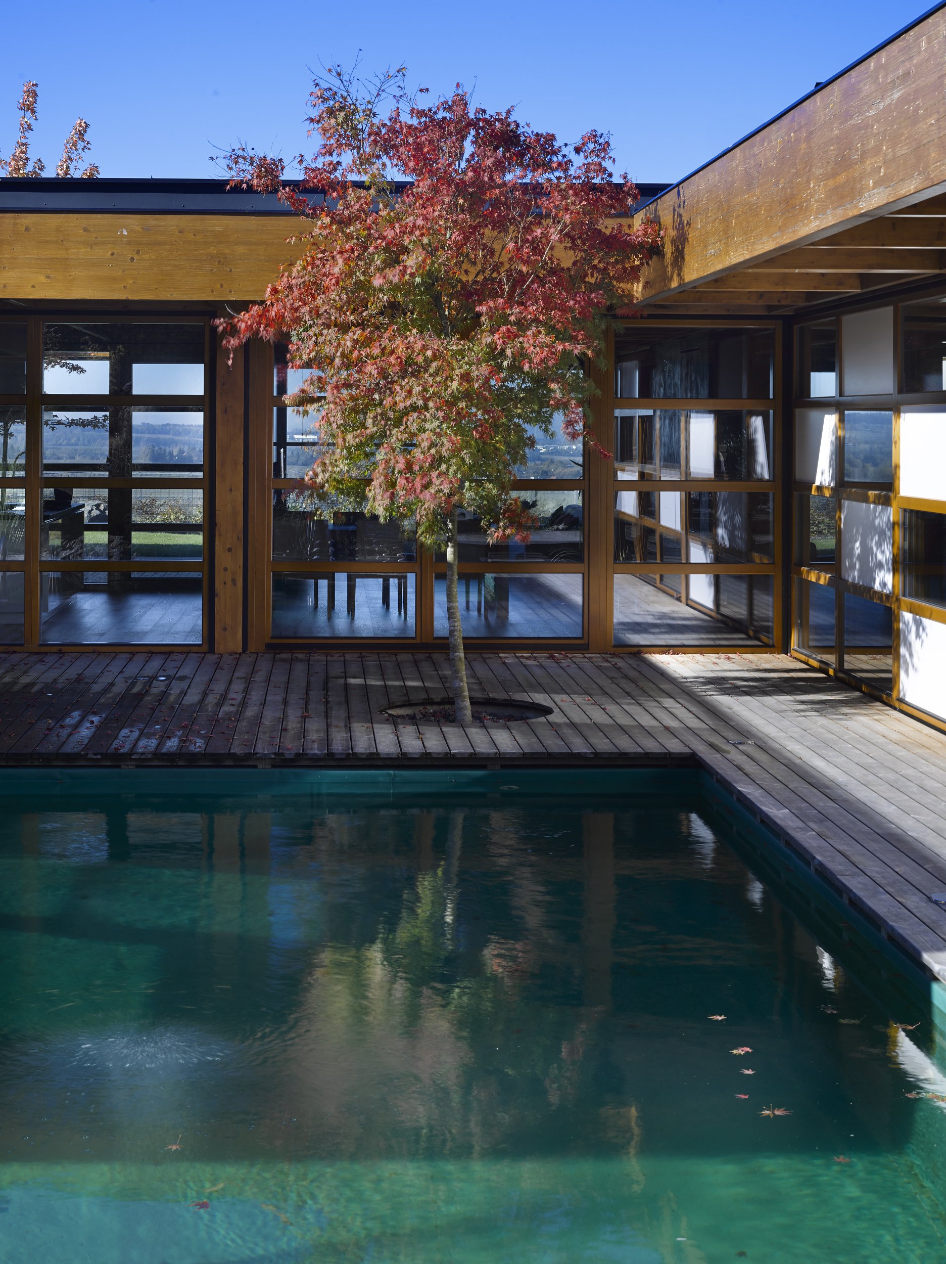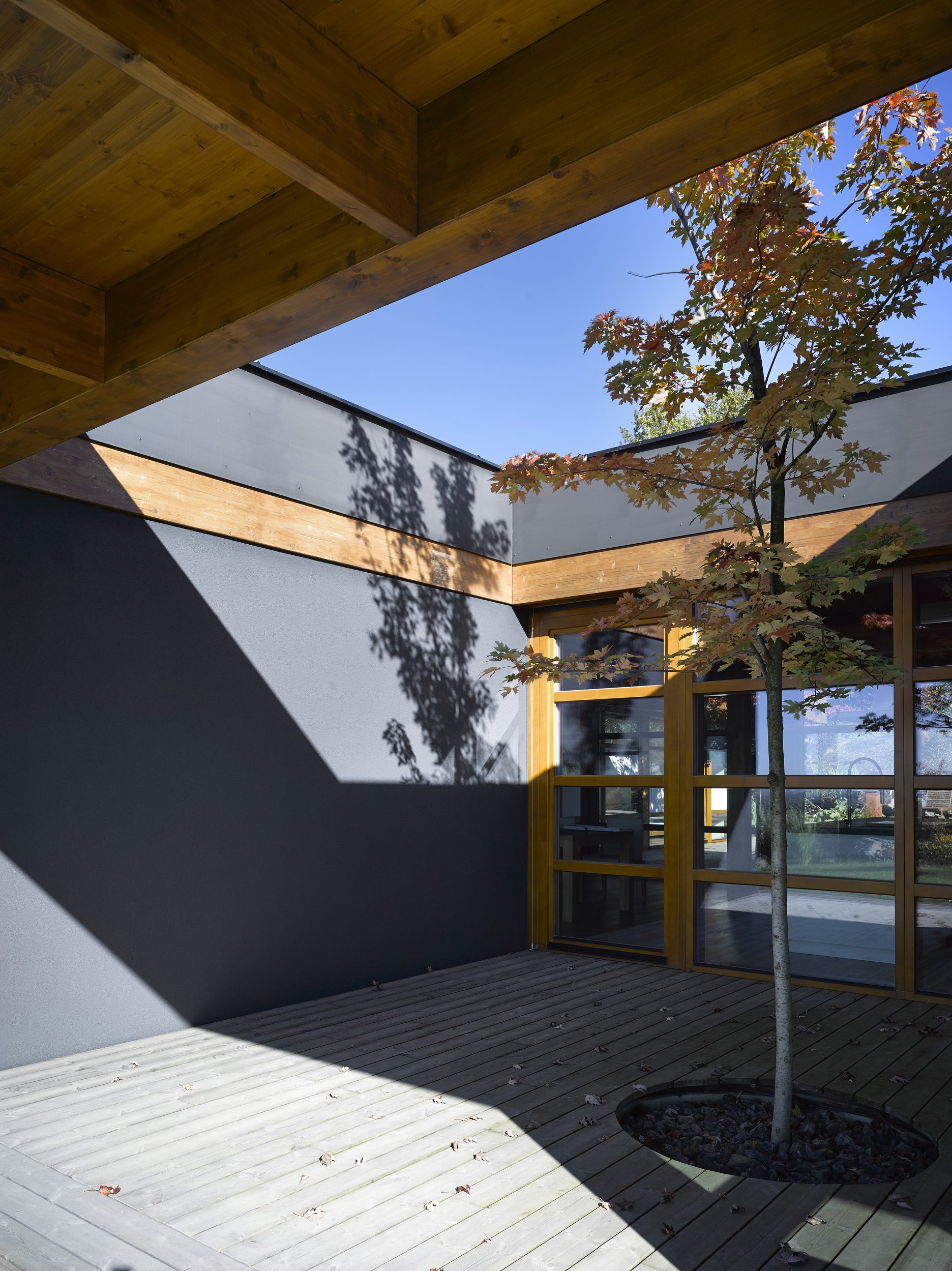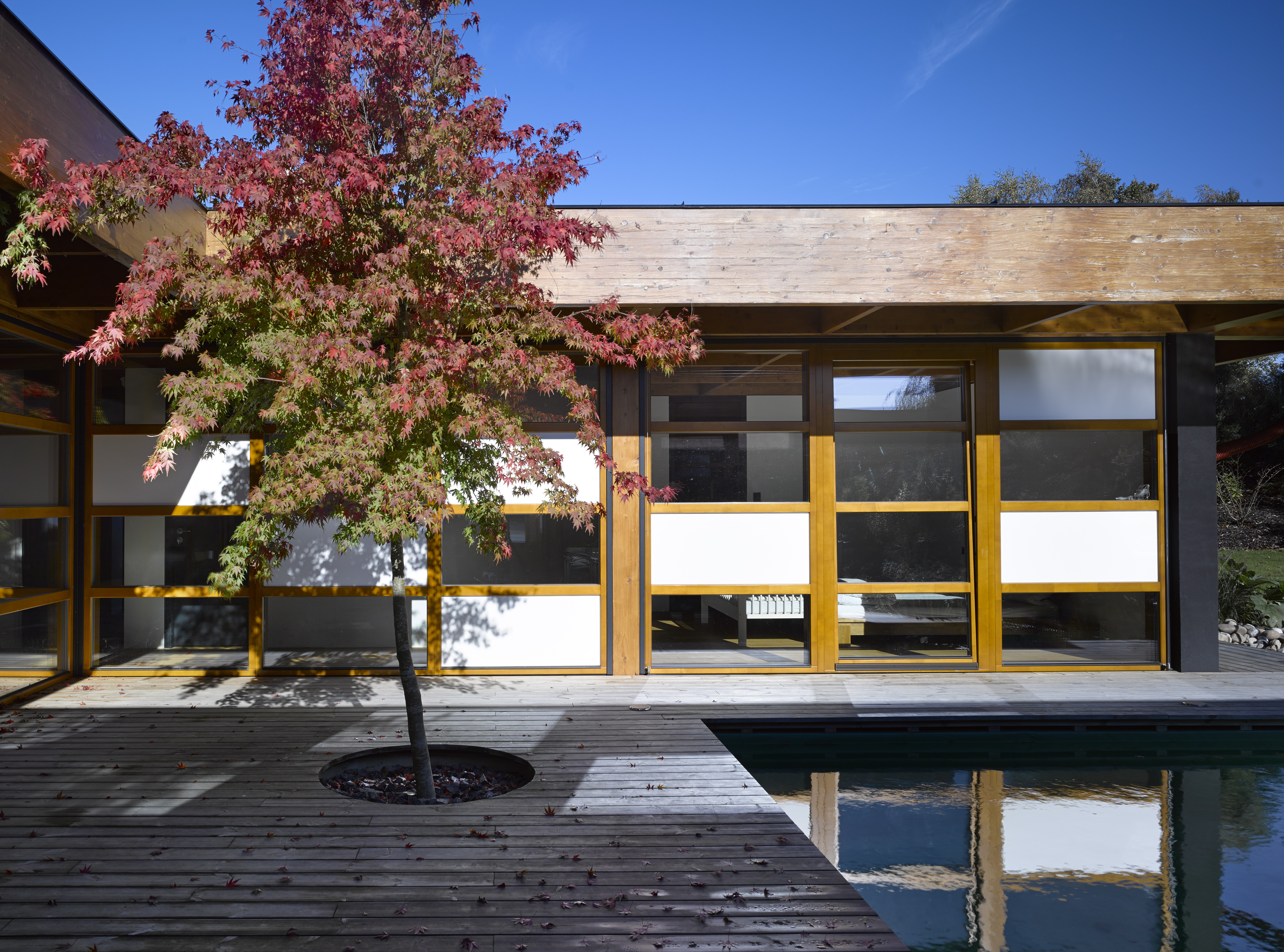 Možnosti pozemku architekty navíc nenutili dům táhnout v patrech do výšky, takže celá stavba má jen jednu pochozí úroveň. Je to výhoda, kterou člověk ocení zvlášť s příchodem stáří, kdy je každý schod o něco vyšší než dřív. Samotné dispoziční rozvržení a charakter konstrukce vyvolává jisté asociace tradiční japonskou architektury, což lze částečně připsat na účet vášni majitele pro tamní kulturu.